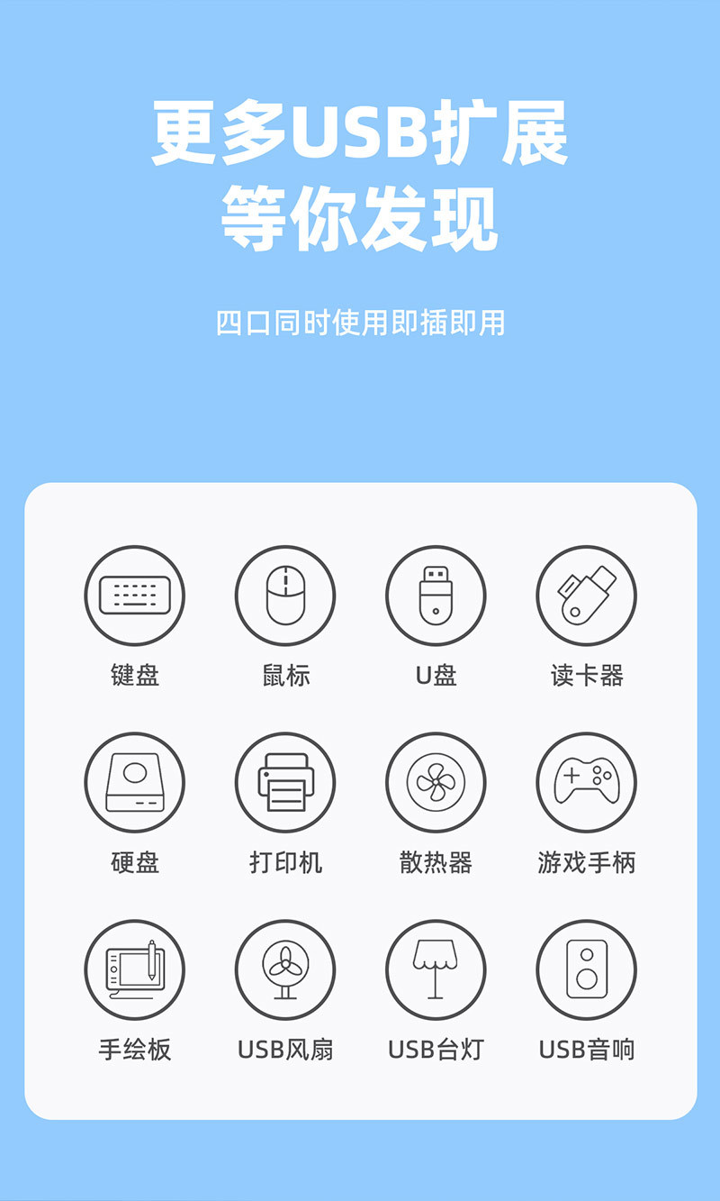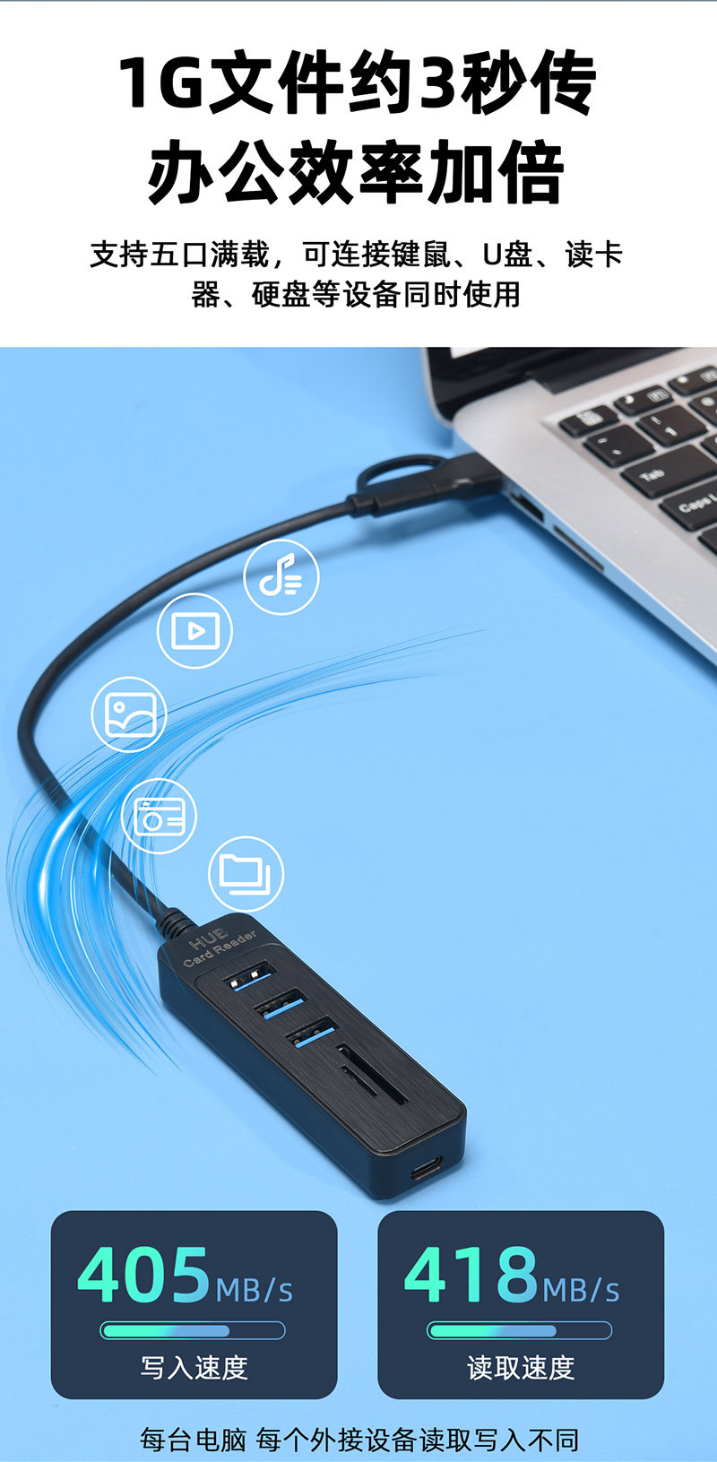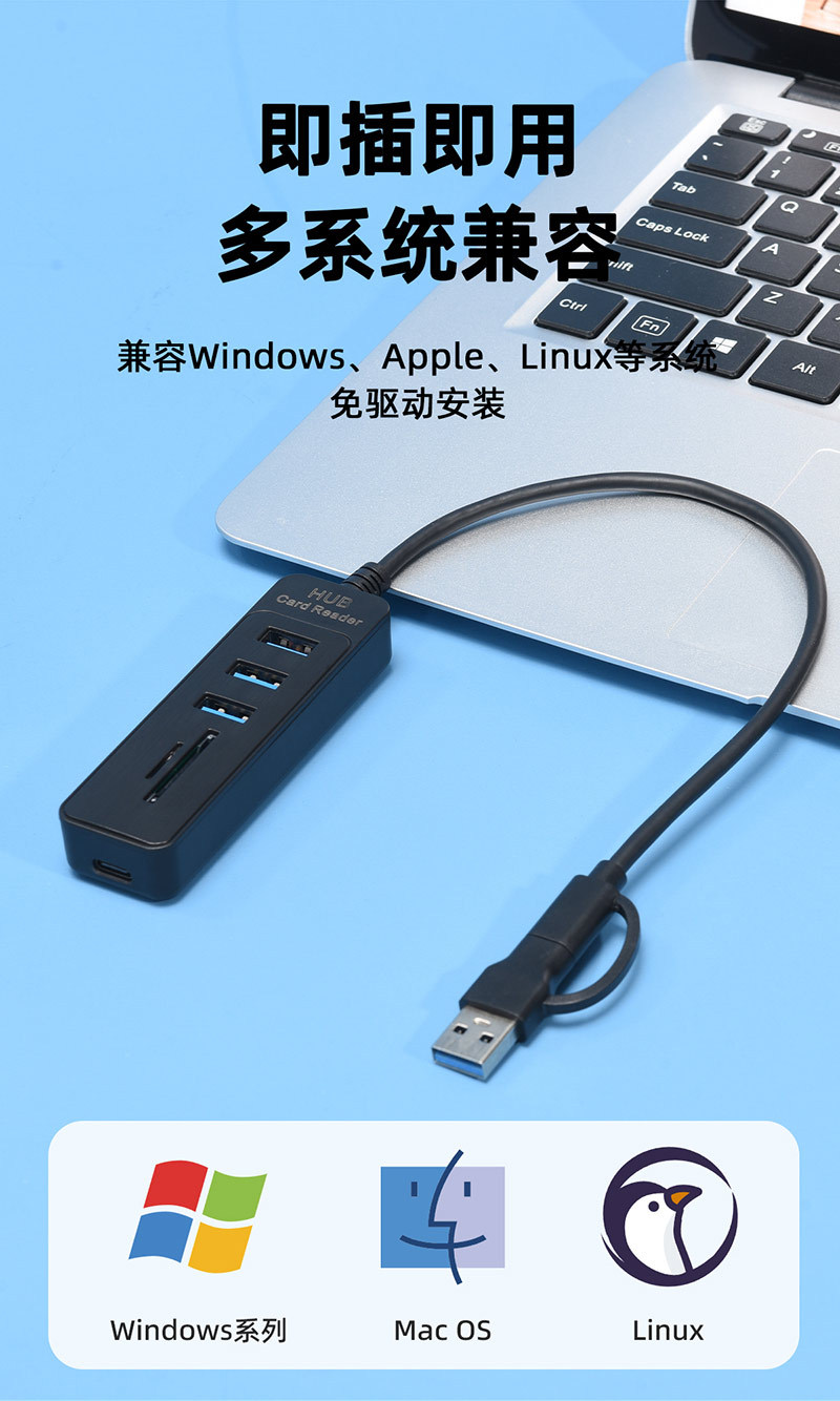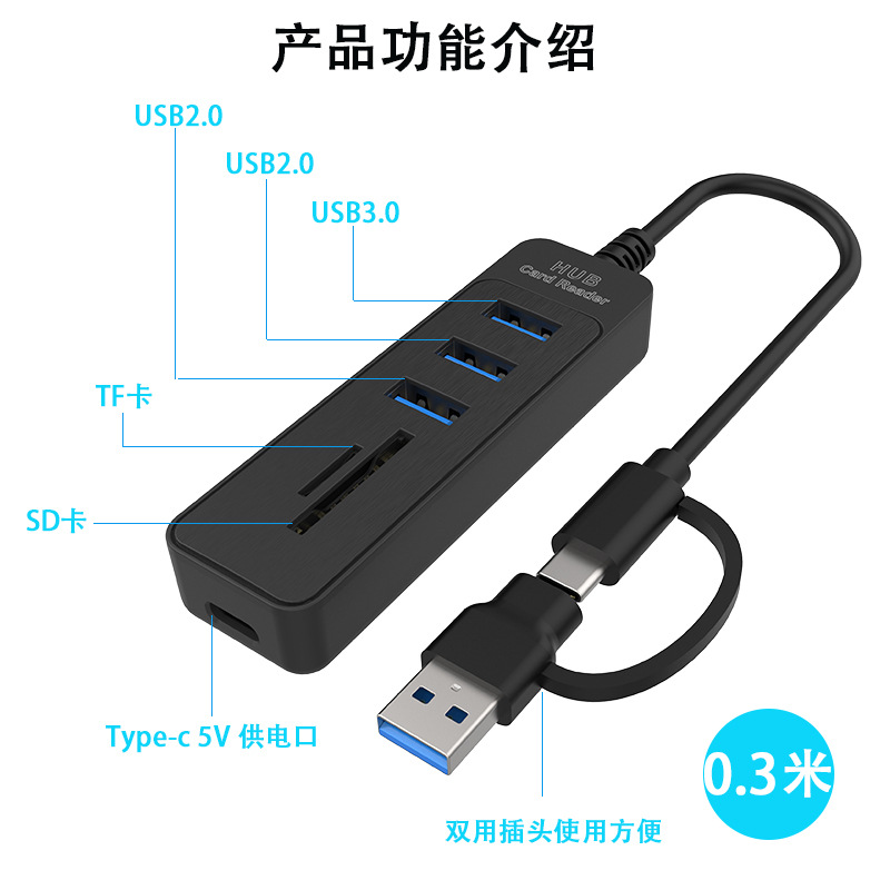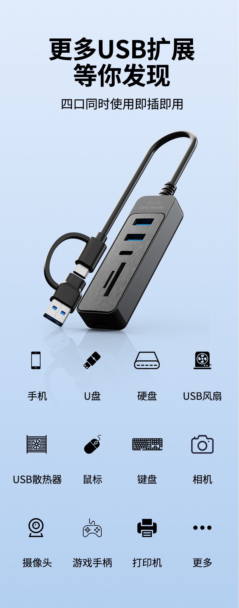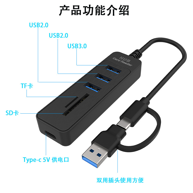 • 이중 용도 5-in-1 1 포트 3.0+2 포트 2.0+SD/TF