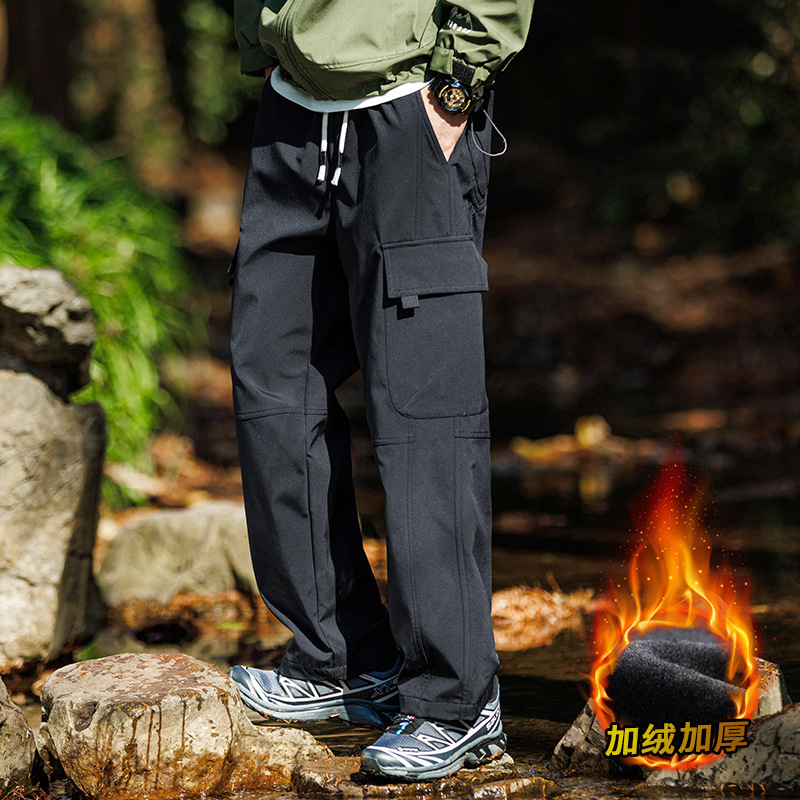 아메리칸 스타일 트렌디 브랜드 툴링 바지 남성용 루즈 스트레이트 가을과 겨울 낙하산 바지 두꺼운 스포츠 방수 캐주얼 바지 충전 바지스토어 가기