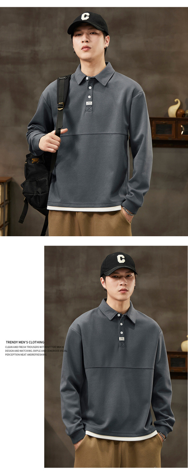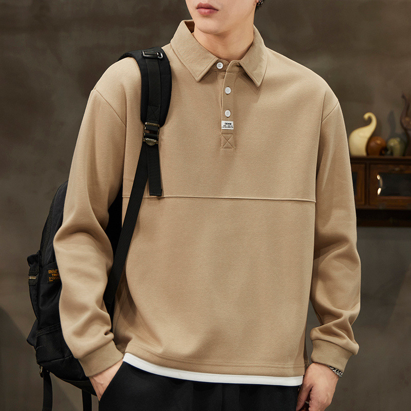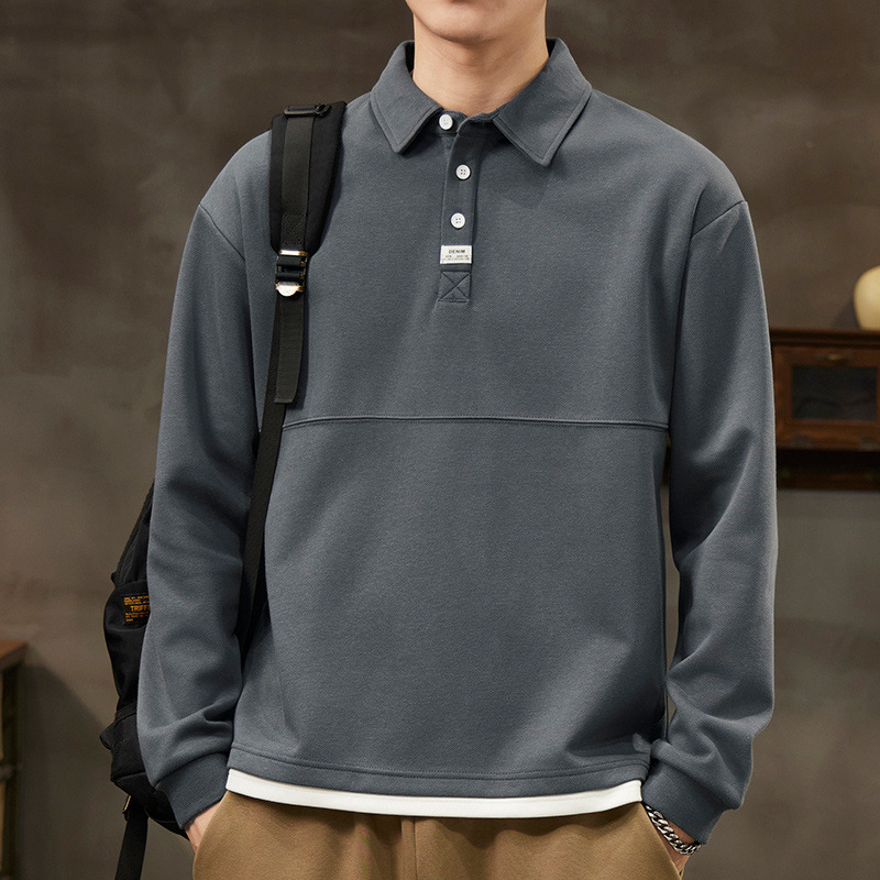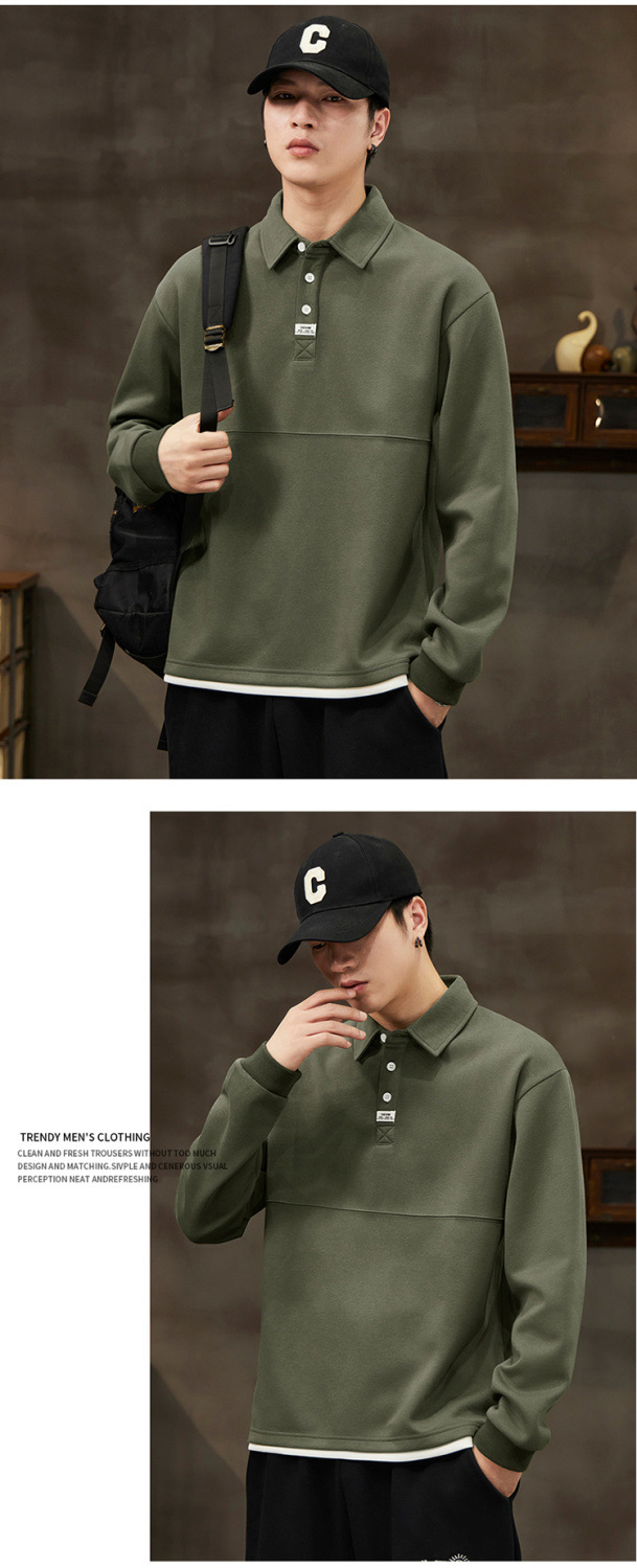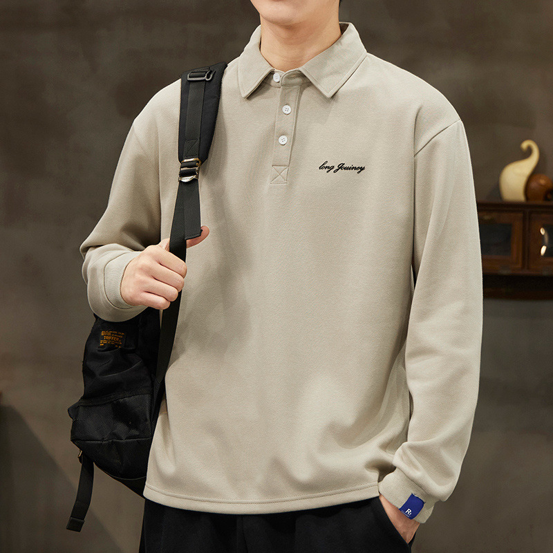 옷깃 폴로 셔츠 2023 봄과 가을 새로운 남자 긴팔 스웨터 유행 올 매치 편안한 유행 브랜드 남자 탑
