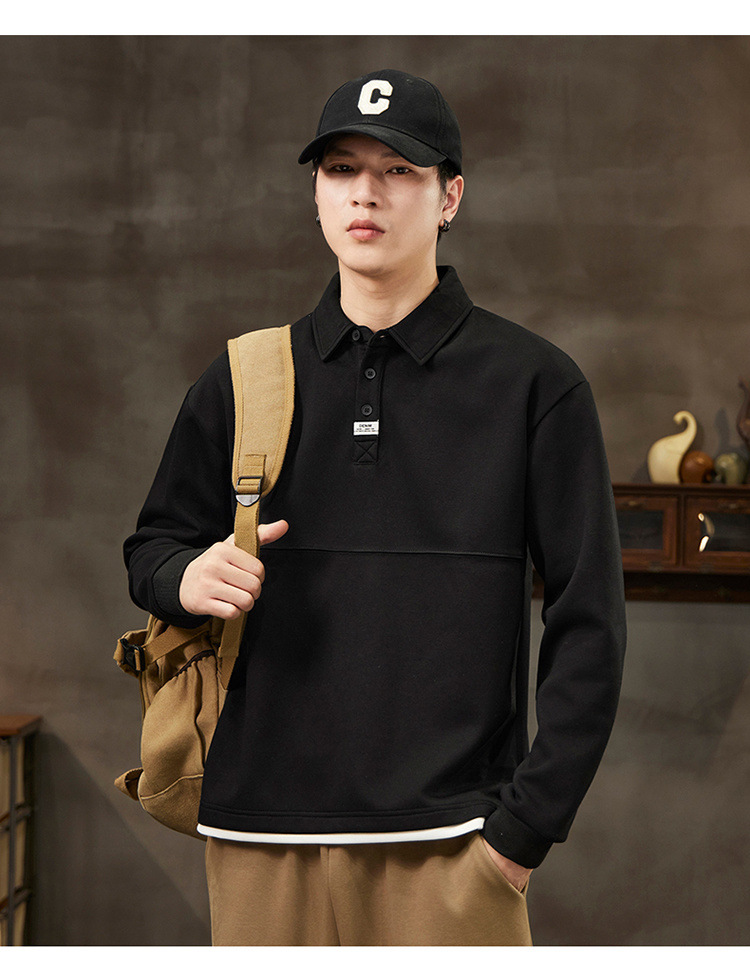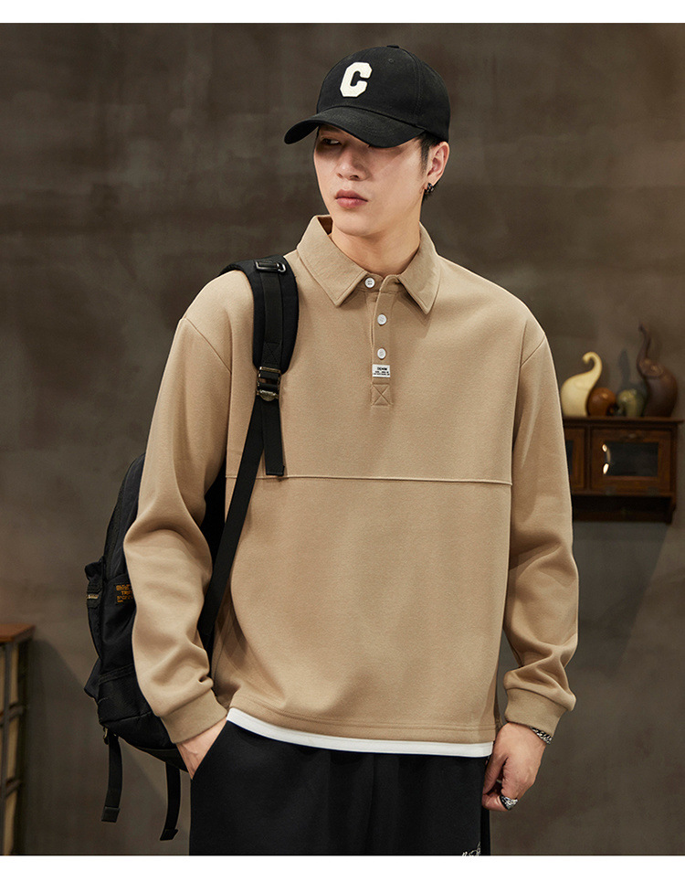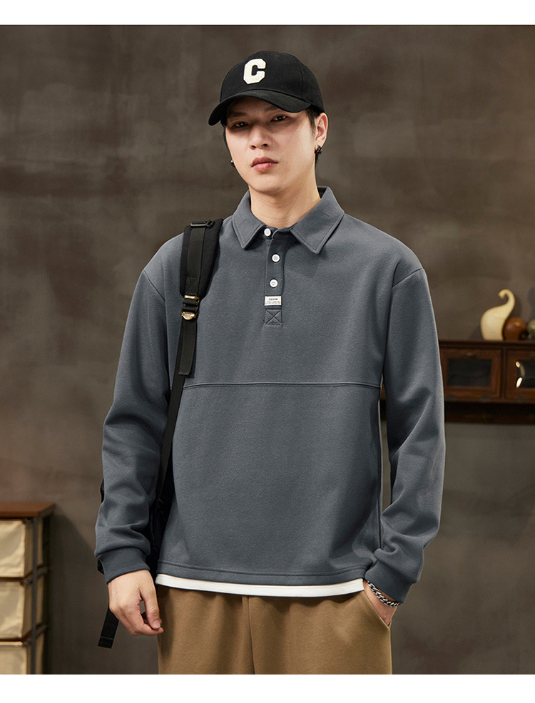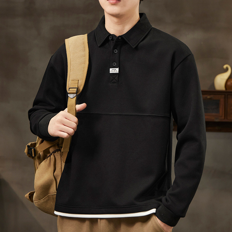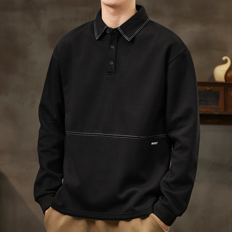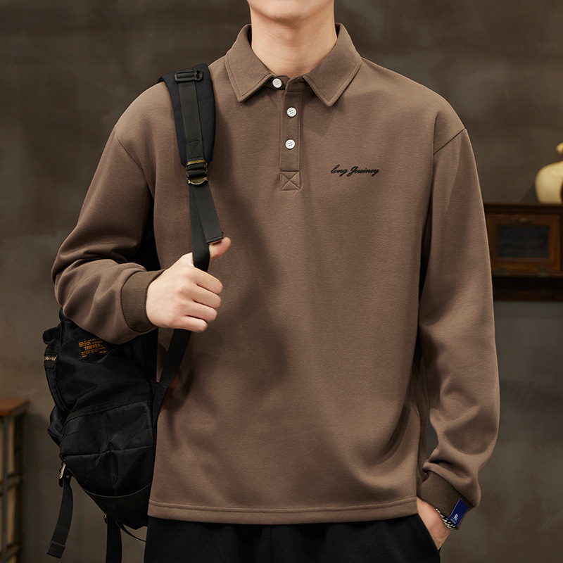 옷깃 폴로 셔츠 2023 봄과 가을 새로운 남자 긴팔 스웨터 유행 올 매치 편안한 유행 브랜드 남자 탑