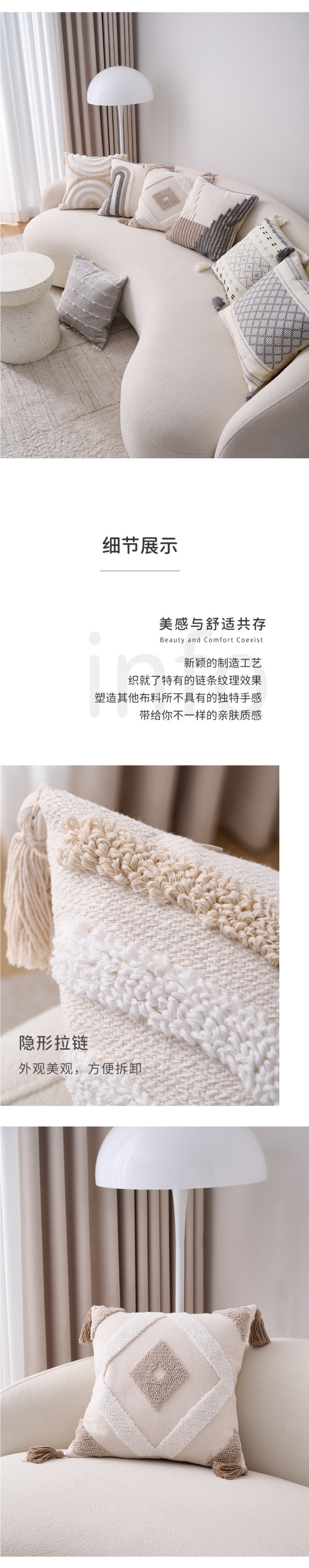 노르딕 인 스타일 베개 소파 거실 다시 베개 보헤미안 침대 사이드 백레스트 베이 창 쿠션 커버 코어없이