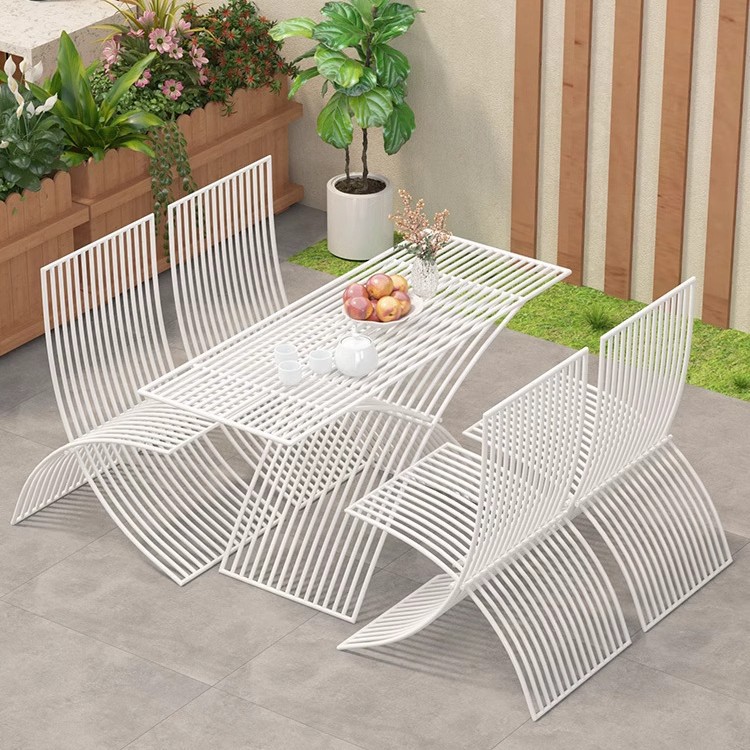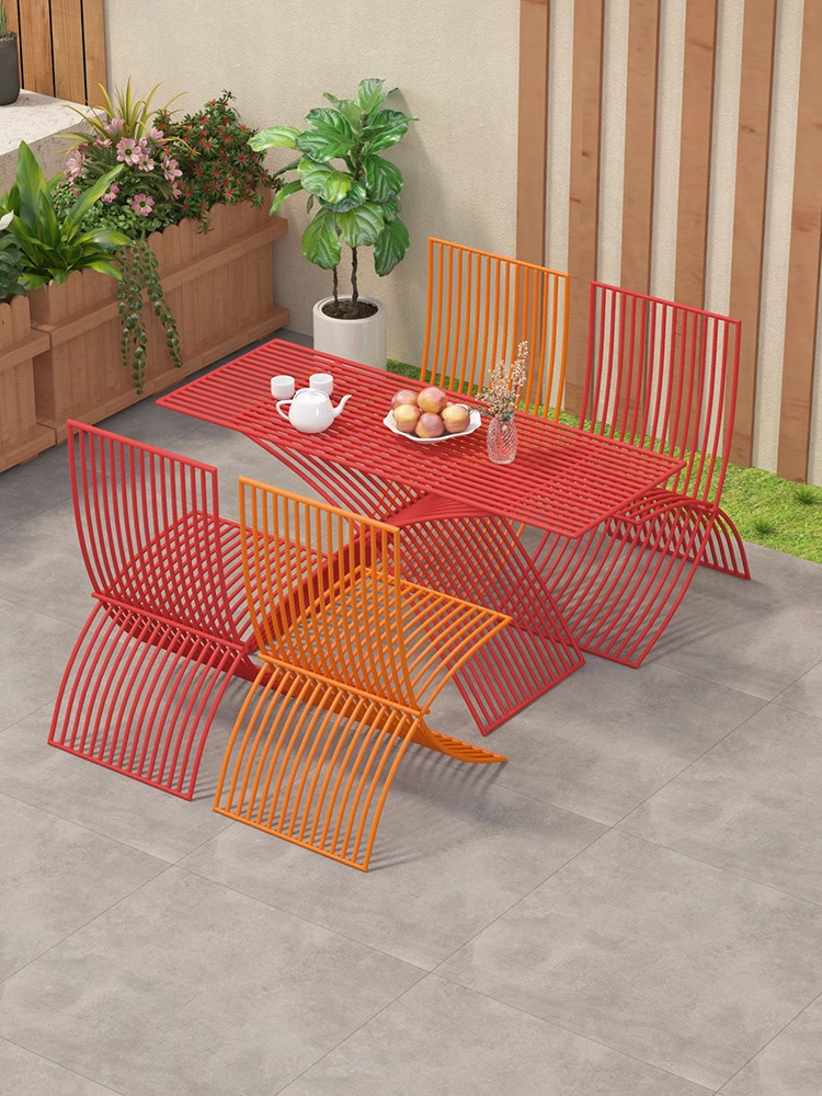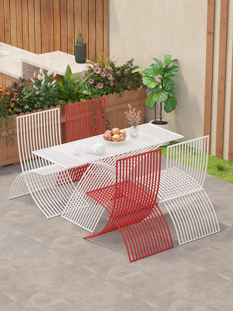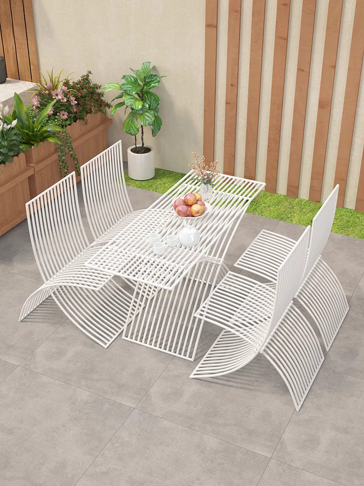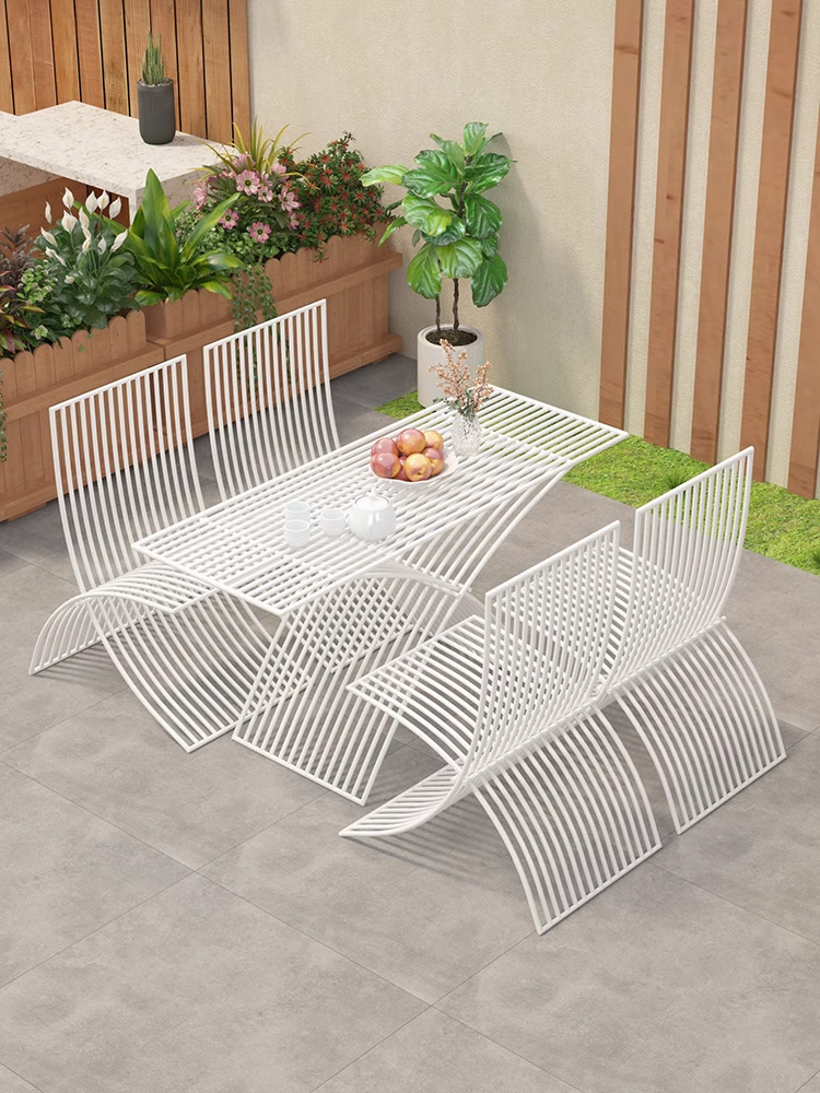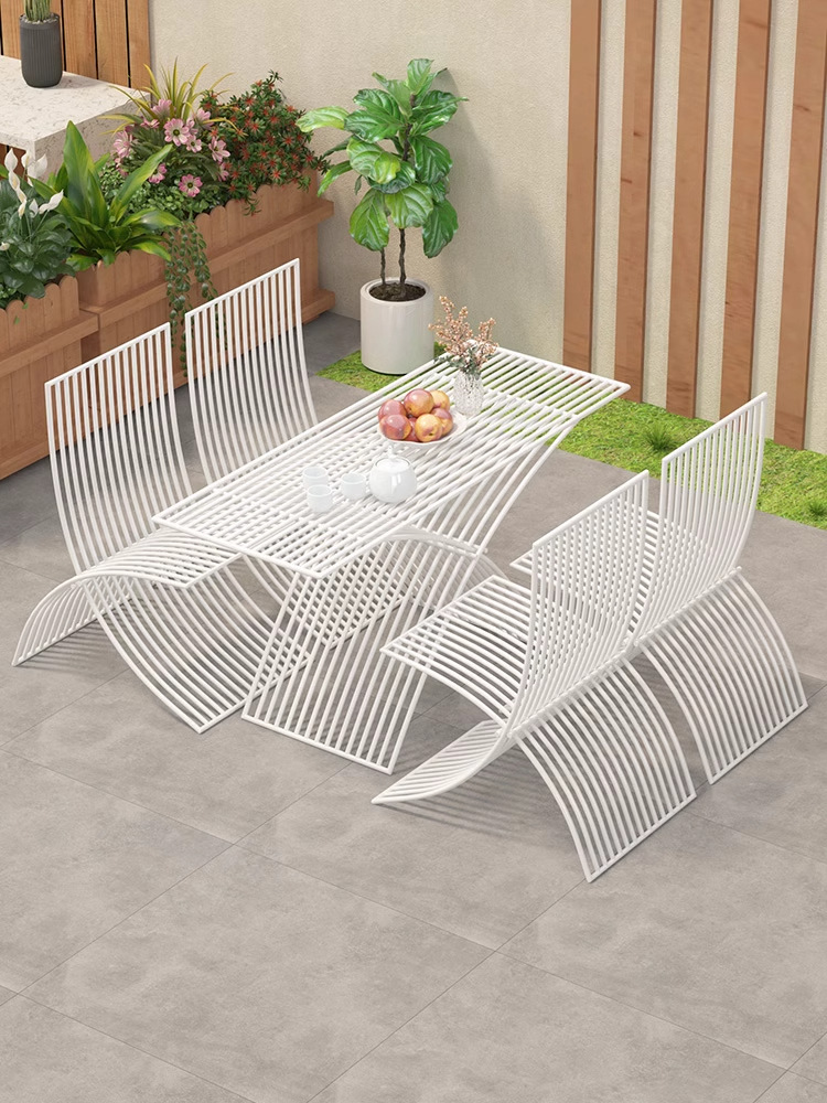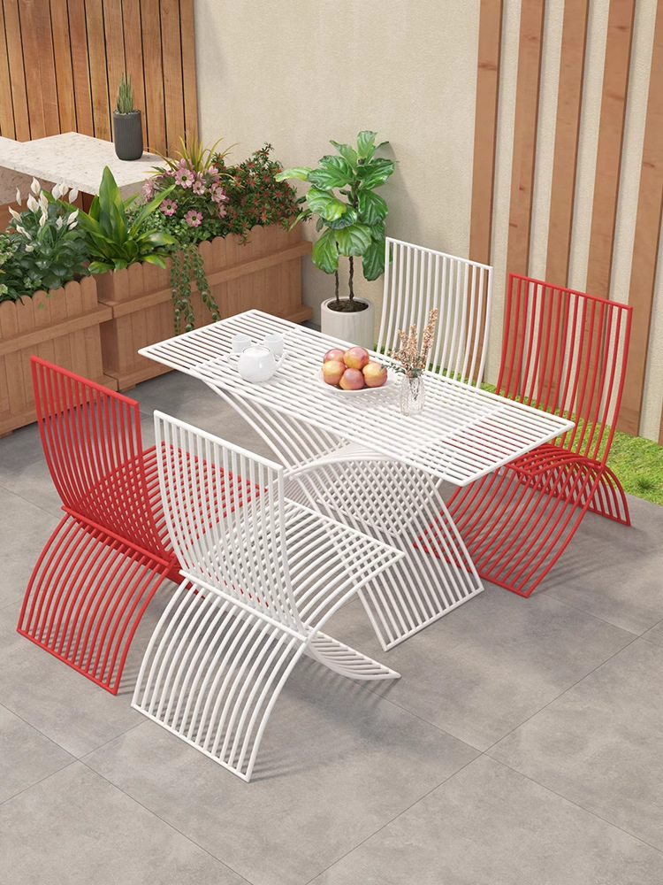 북유럽 창조적 인 야외 테이블과 의자 조합 방수 선 스크린 미식가 야외 식사 테이블 우유 차 커피 숍 테이블 외부