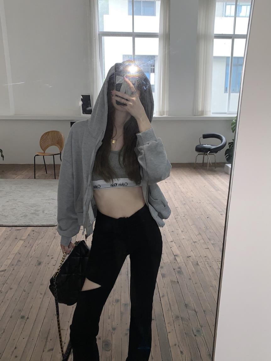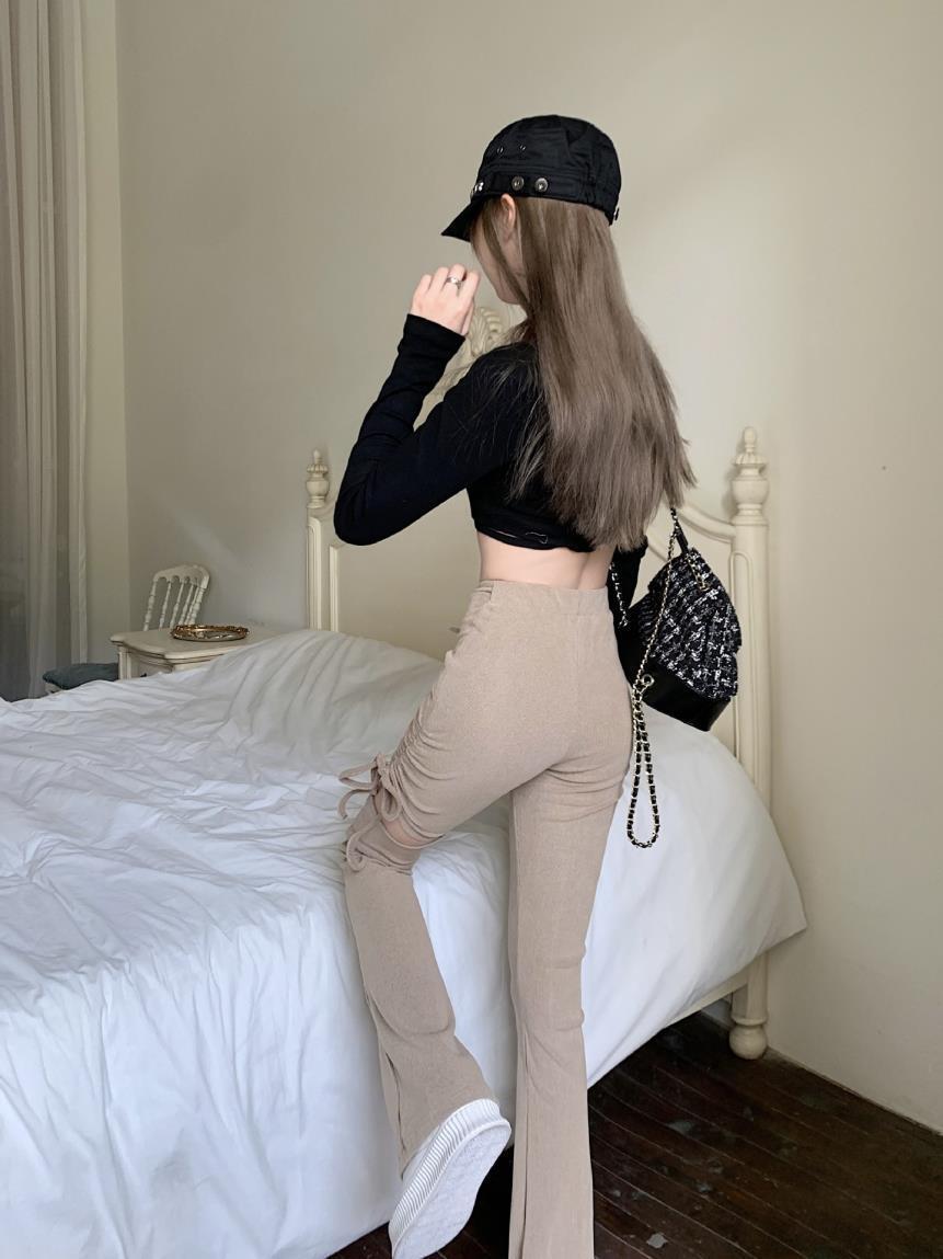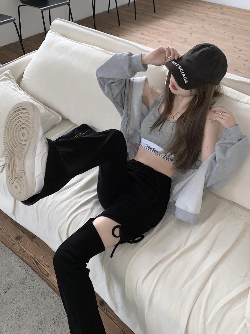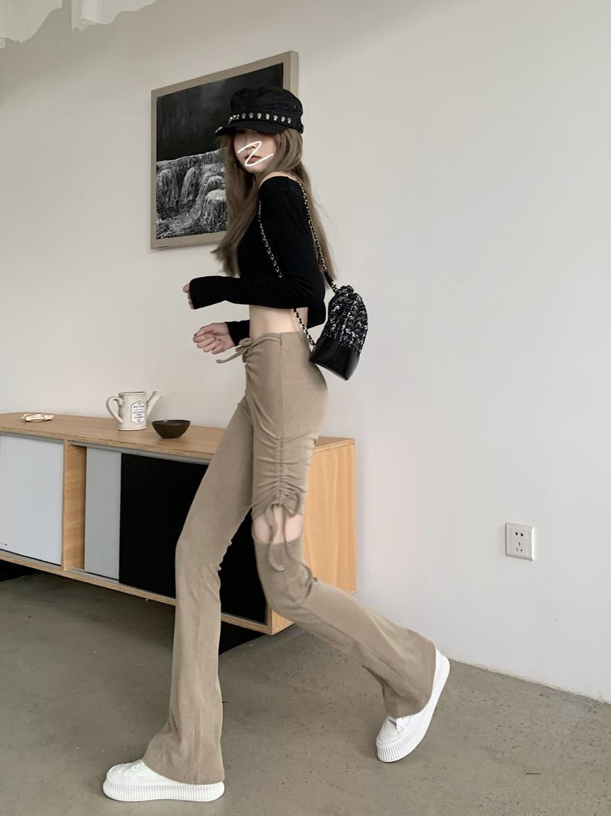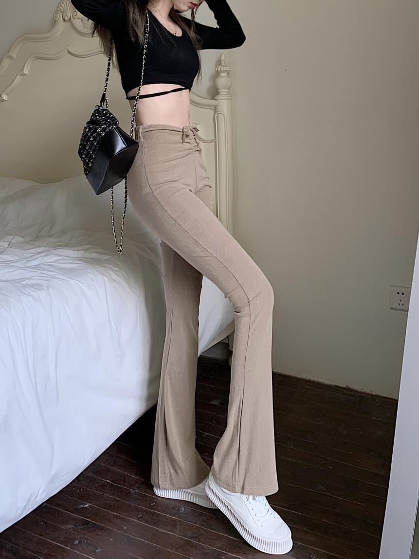 블랙 드로우 스트링 중공 캐주얼 바지 여성용 봄 높은 허리 디자인 센스 작은 발 마이크로 혼 바지스토어 가기
