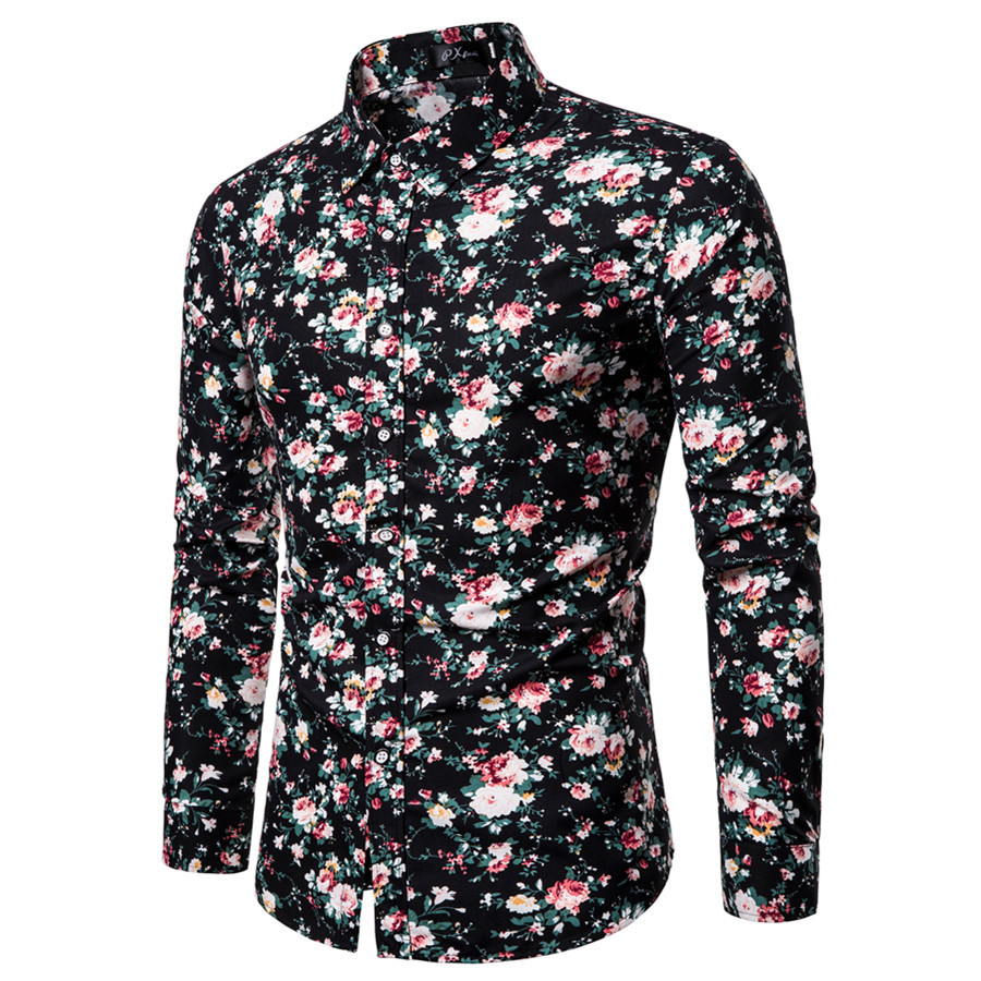 대외 무역 국경 2024 봄 새로운 남성 민족 스타일 꽃 셔츠 남성 캐주얼 긴 소매 셔츠 다년생 상품