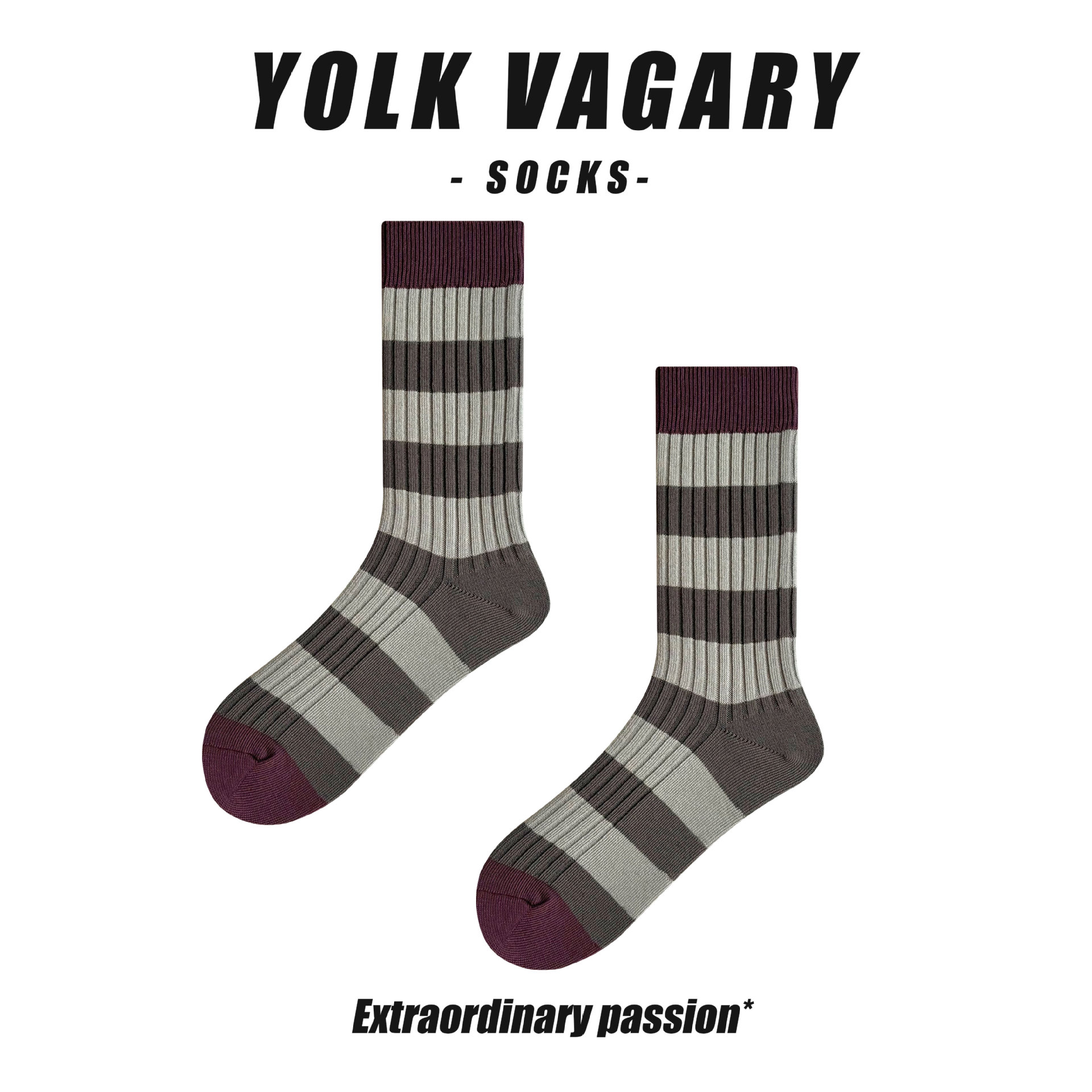 Yolkvagary 한국식 회색 디자이너 하이 엔드 가을과 겨울 중간 길이 양말 어린이 줄무늬 스타킹 유행스토어 가기