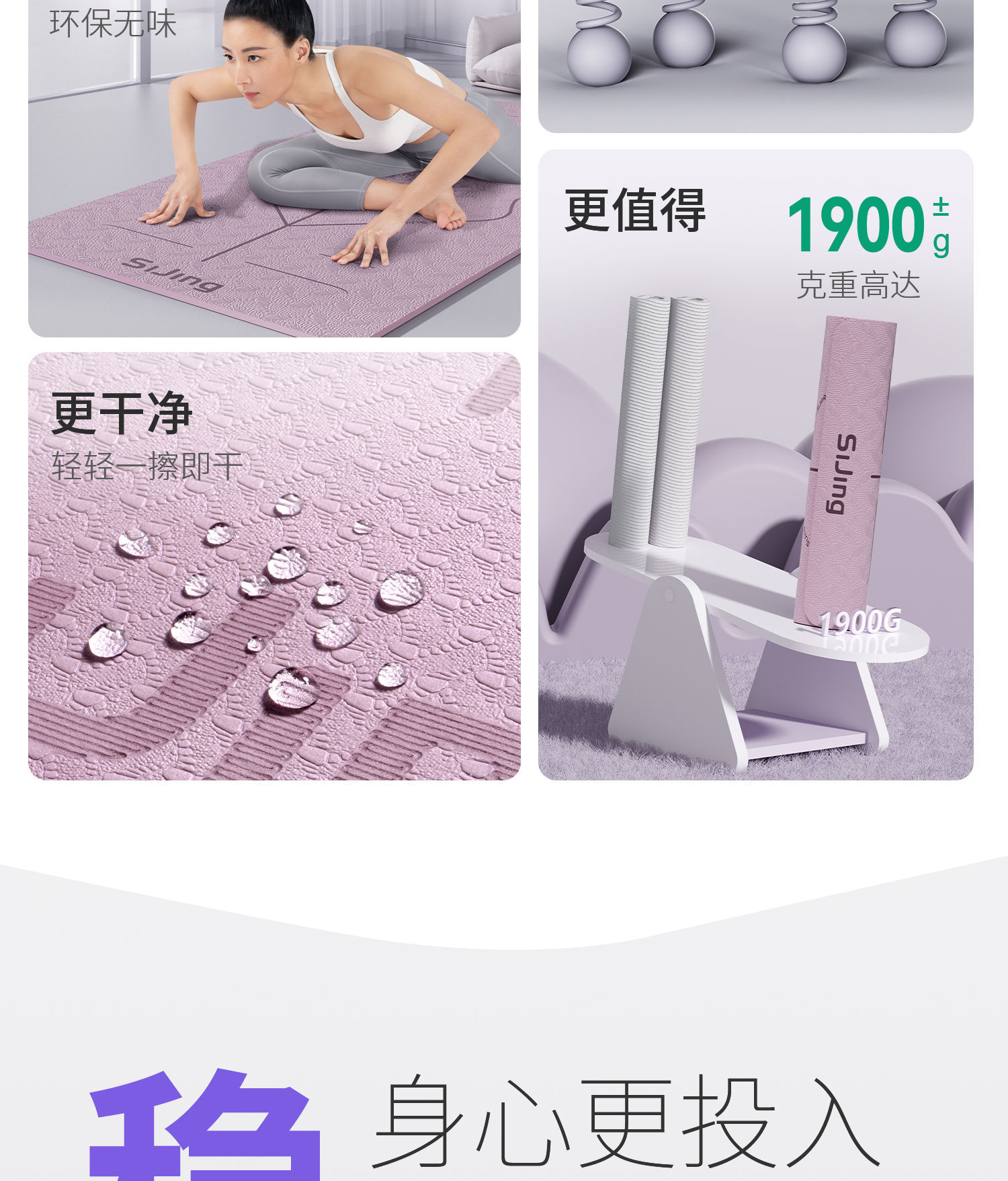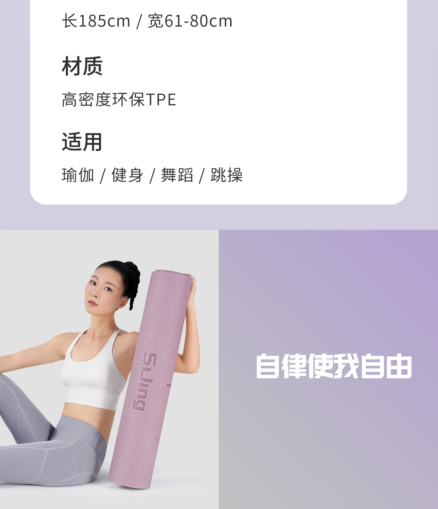 • 히아신스 퍼플 185*80cm 퓨어버전 투피스세트 [요가매트+스트랩]