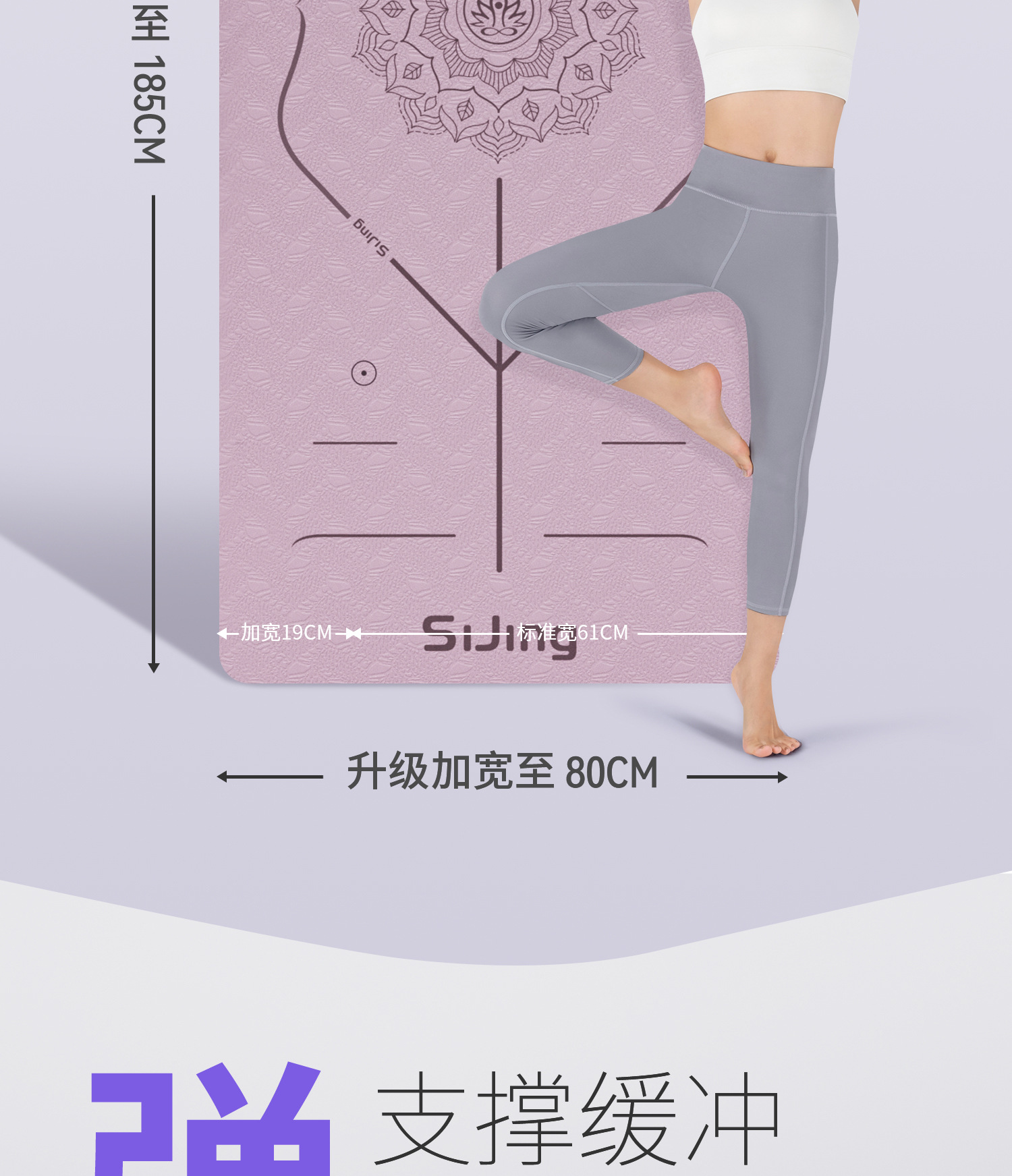• 히아신스 퍼플 185*61cm 자세라인 투피스 세트 [요가매트+스트랩]