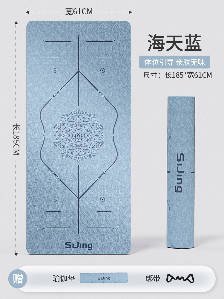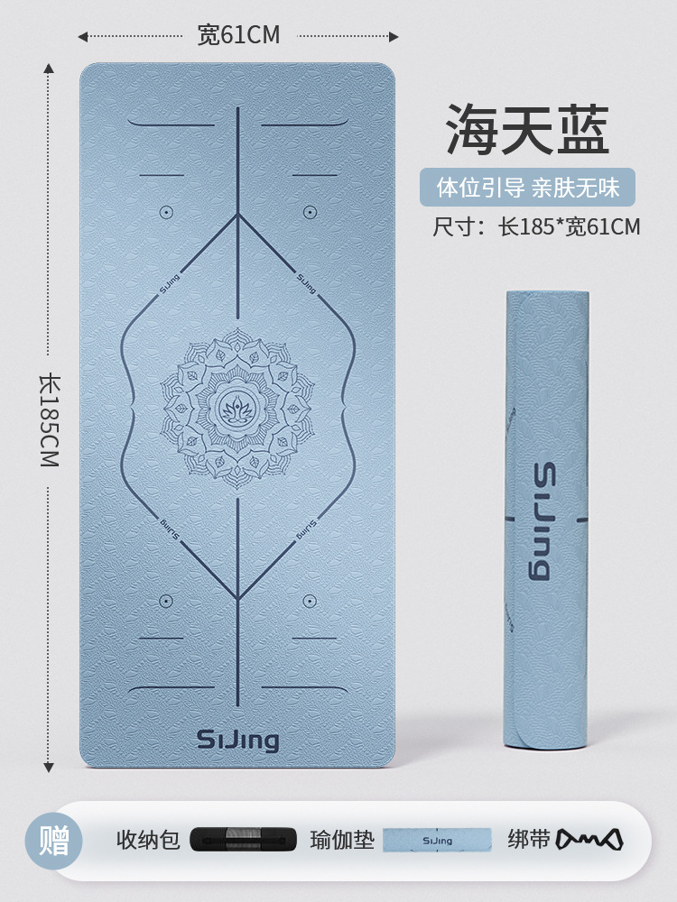 • 씨와 하늘색 185*61cm 자세라인 3종세트 [요가매트+수납가방+스트랩]