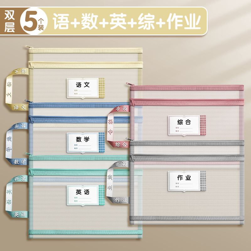 델리 PP116 학생 문서 가방 주제 이중 레이어 분류 가방 115 투명 메쉬 a4 테스트 종이 저장 가방스토어 가기