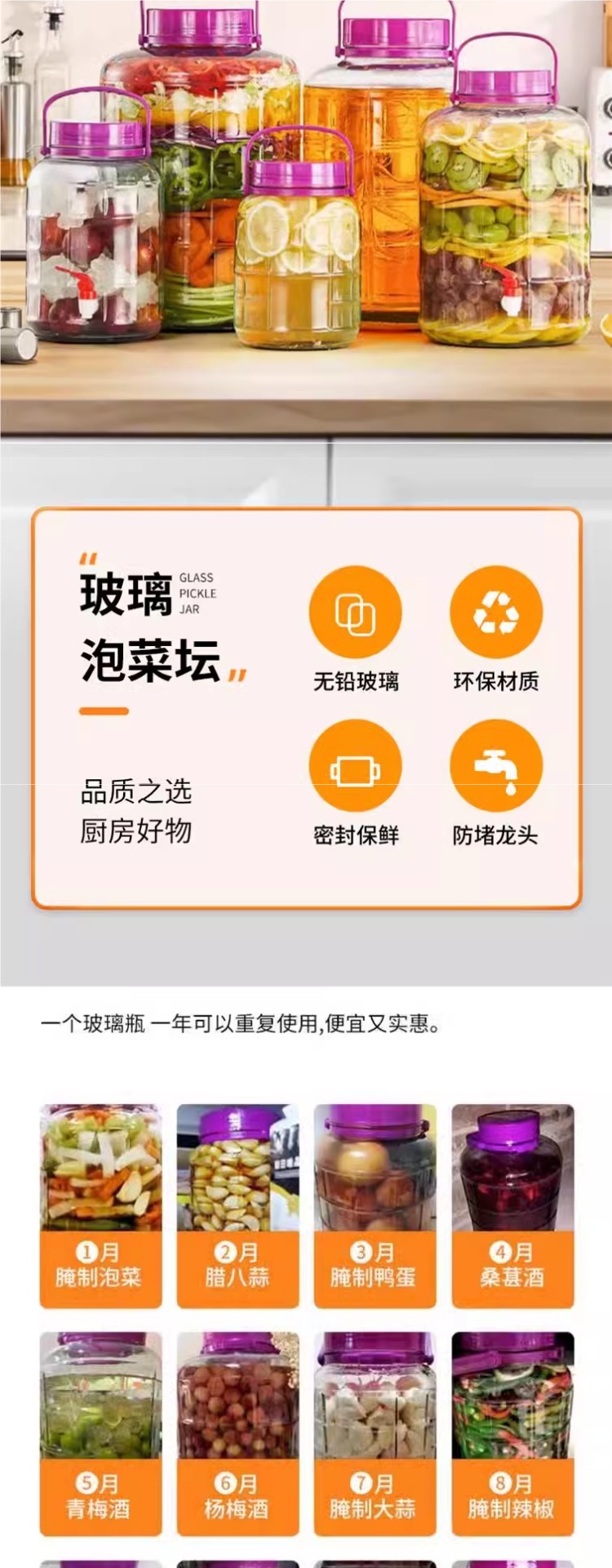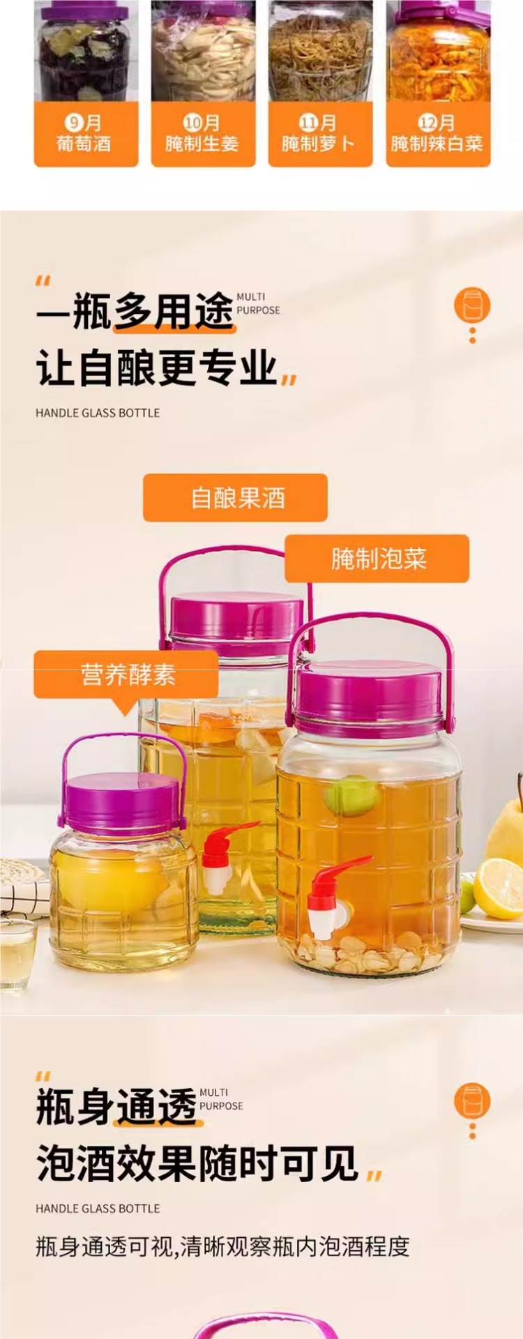 스파클링 와인 유리 병 와인 병 용기 수도꼭지 가정용 봉인 된 항아리 절임 야채 피클 항아리 빈 병으로 두껍게