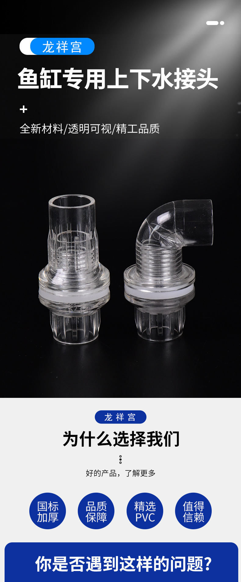 어항 상부 및 하부 물 커넥터 PVC 투명 입구 및 출구 파이프 클램프 유리 천공 오버플로 배수 설비 천공스토어 가기