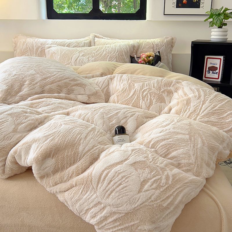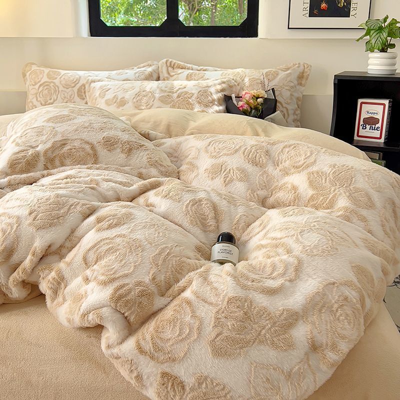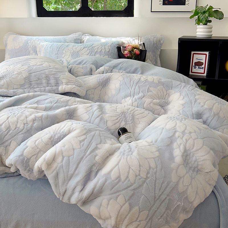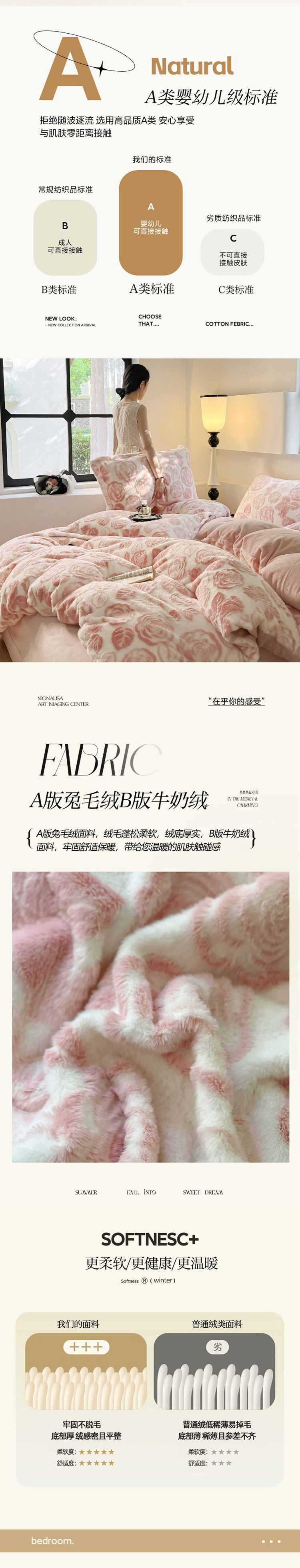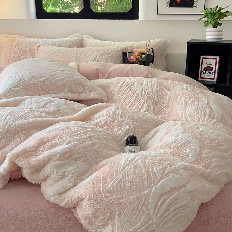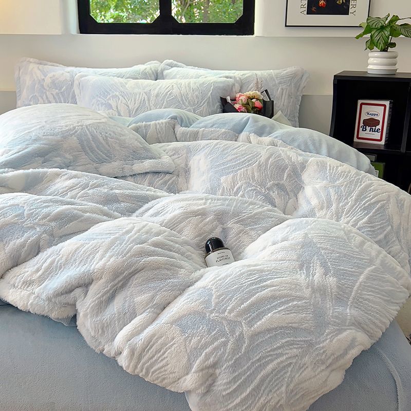 클래스 A 조각 토끼 머리 우유 벨벳 침대 4 조각 세트 겨울 두꺼운 플란넬 침대 시트 이불 커버 양면 산호 벨벳