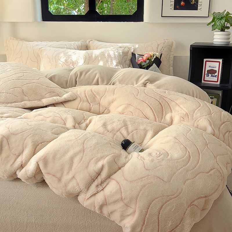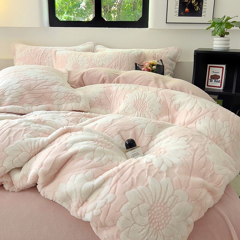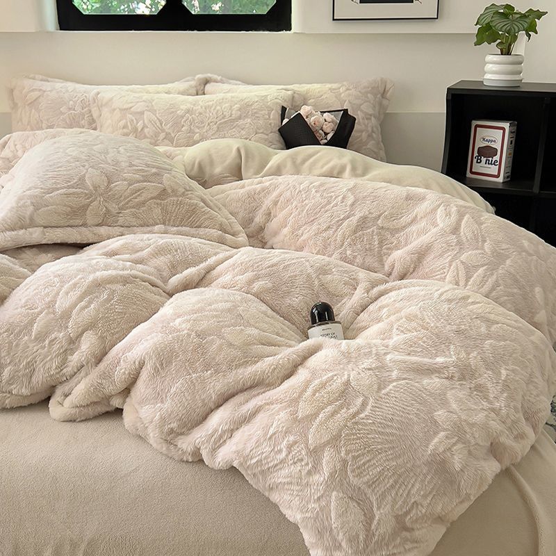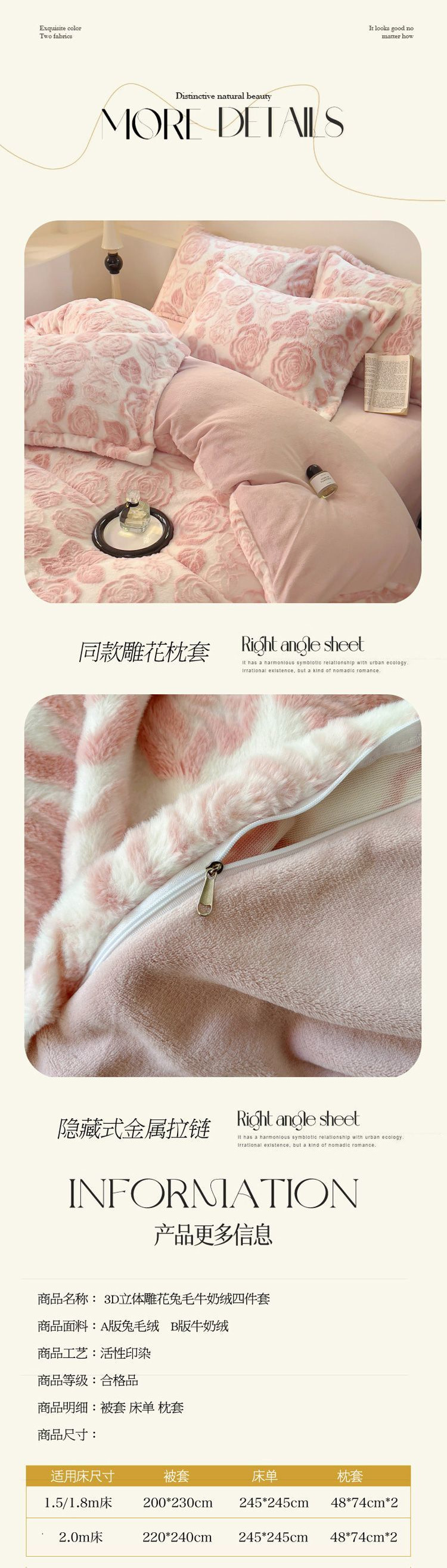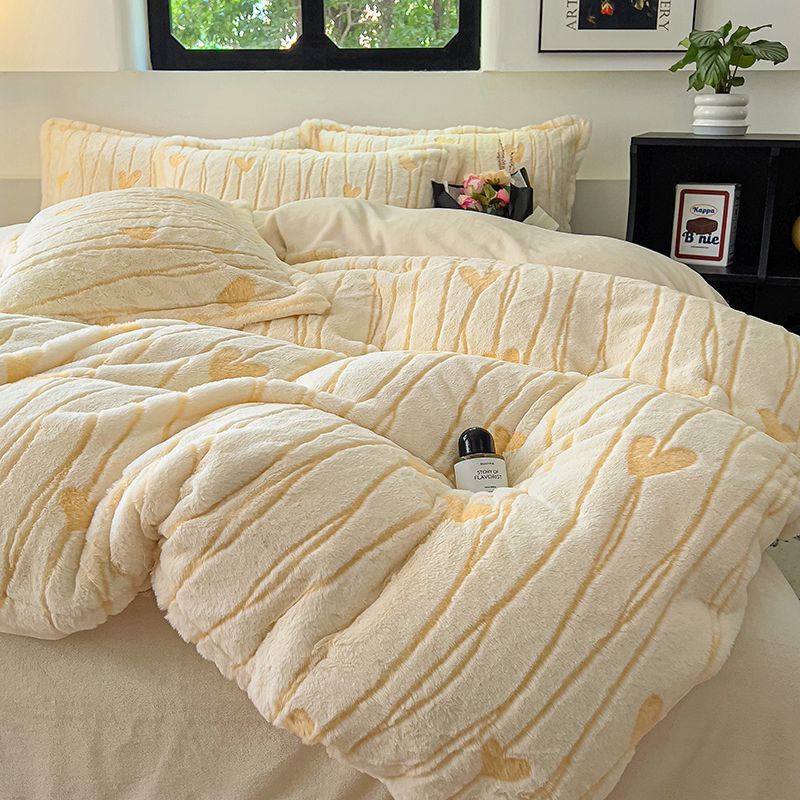 클래스 A 조각 토끼 머리 우유 벨벳 침대 4 조각 세트 겨울 두꺼운 플란넬 침대 시트 이불 커버 양면 산호 벨벳