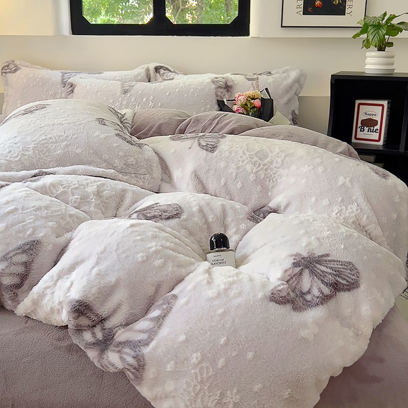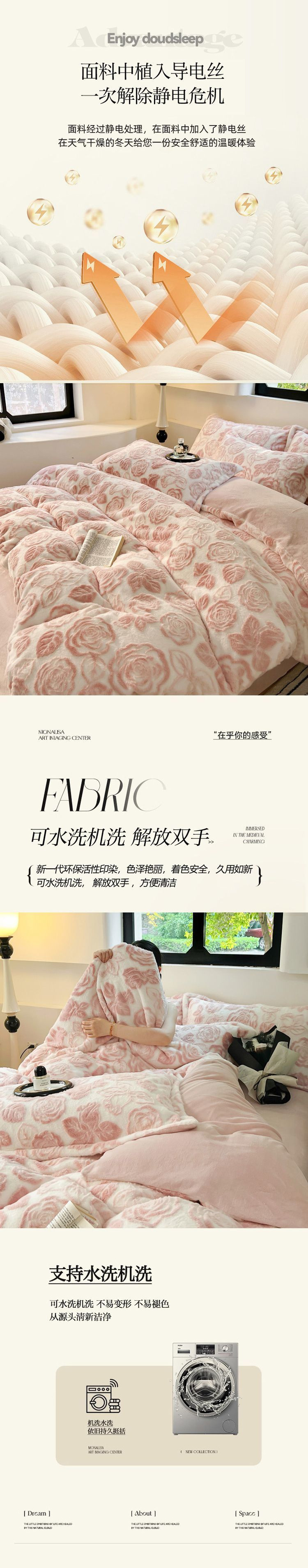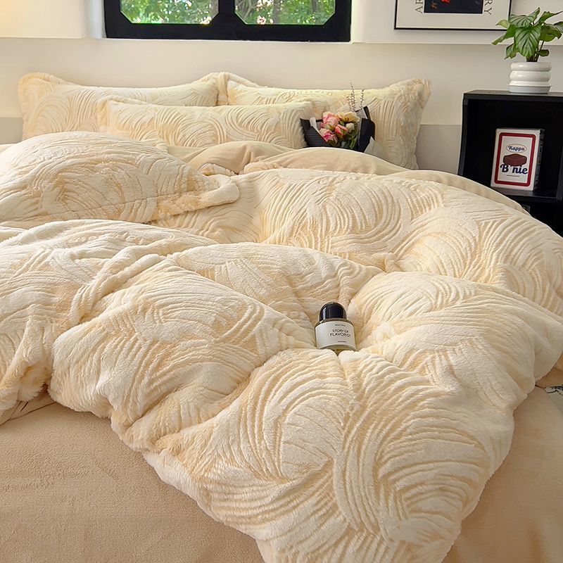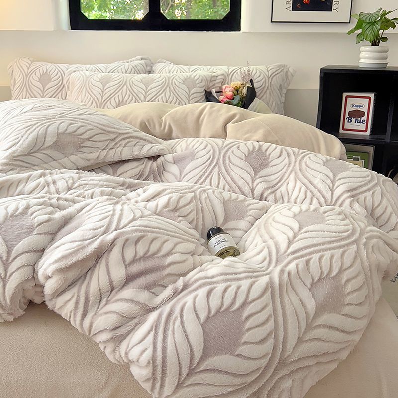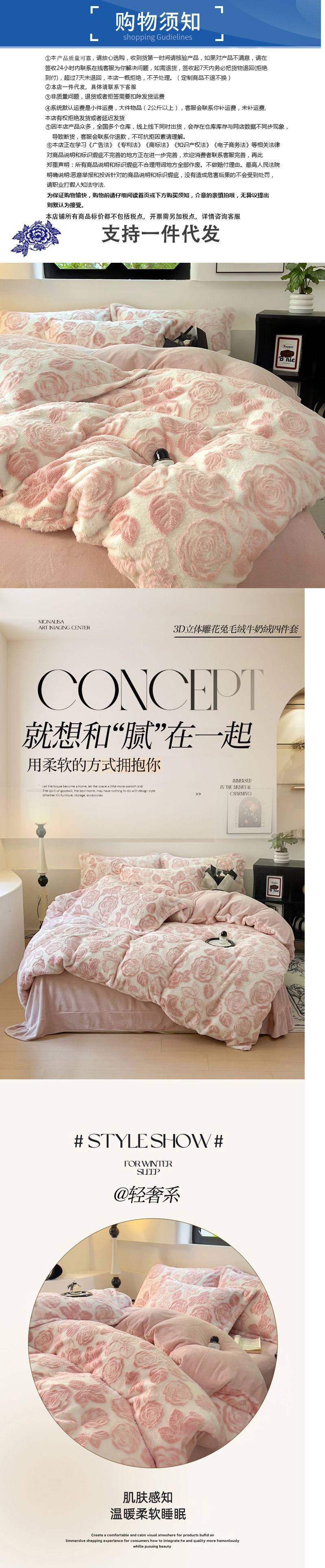 클래스 A 조각 토끼 머리 우유 벨벳 침대 4 조각 세트 겨울 두꺼운 플란넬 침대 시트 이불 커버 양면 산호 벨벳