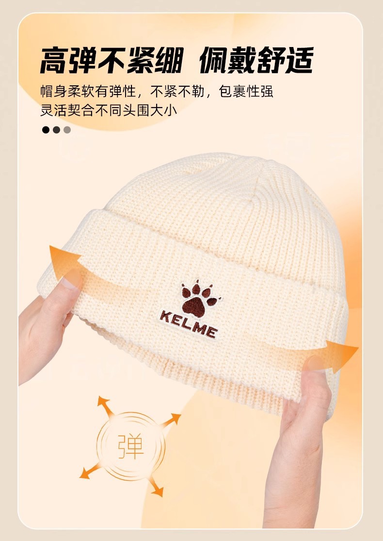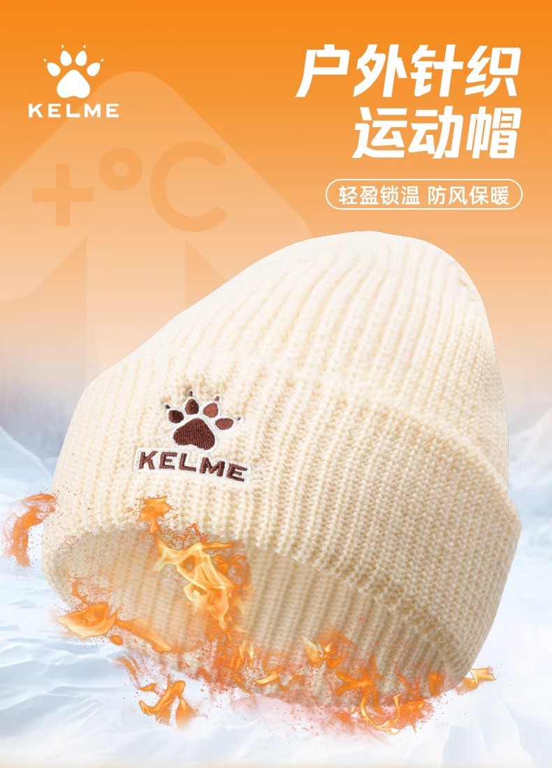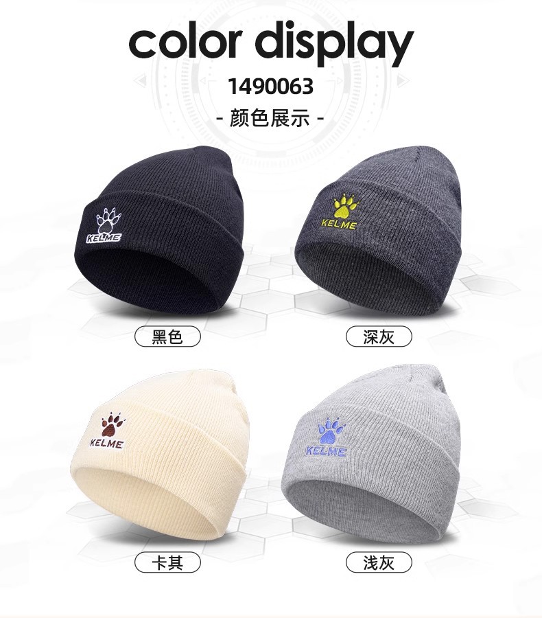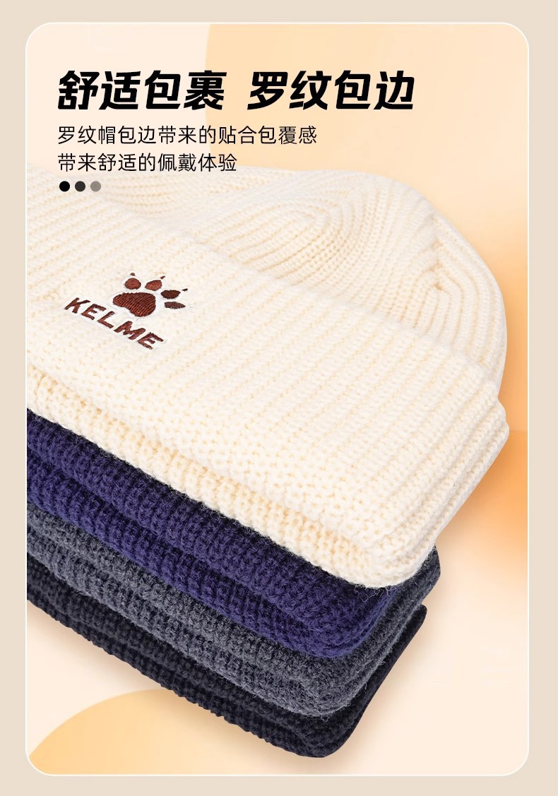 KELME Calme Hat 남자 겨울 새 축구 승마 방한 따뜻한 니트 모자 큰 머리 울 모자스토어 가기