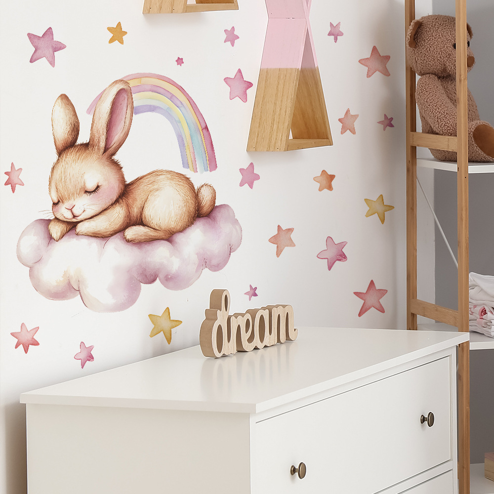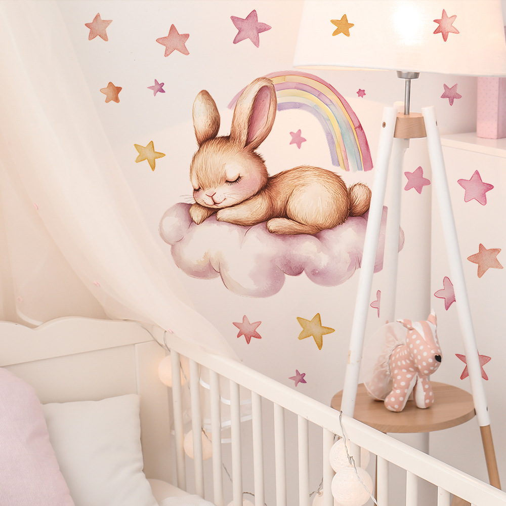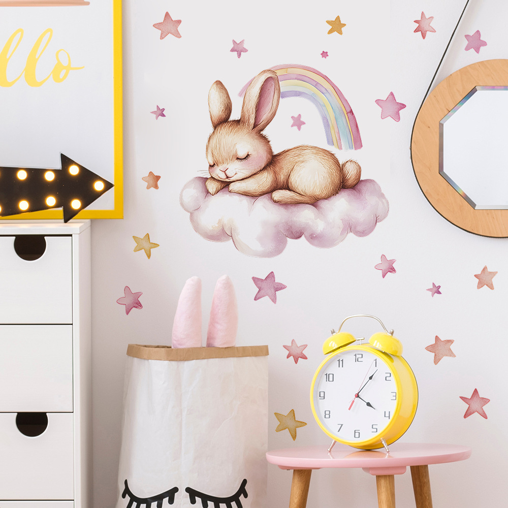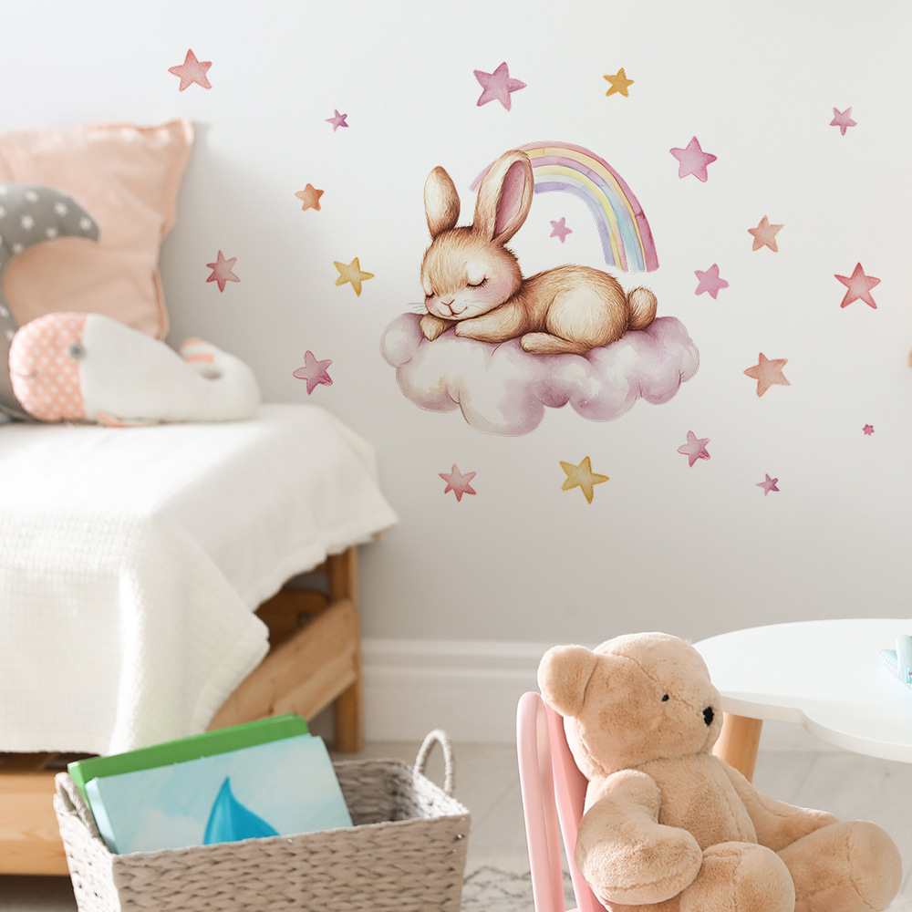 Fun-e206 만화 좋은 밤 토끼 별 무지개 침실 거실 현관 집 배경 미화 벽 스티커