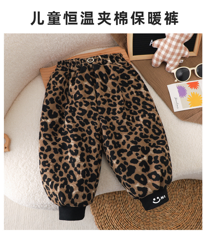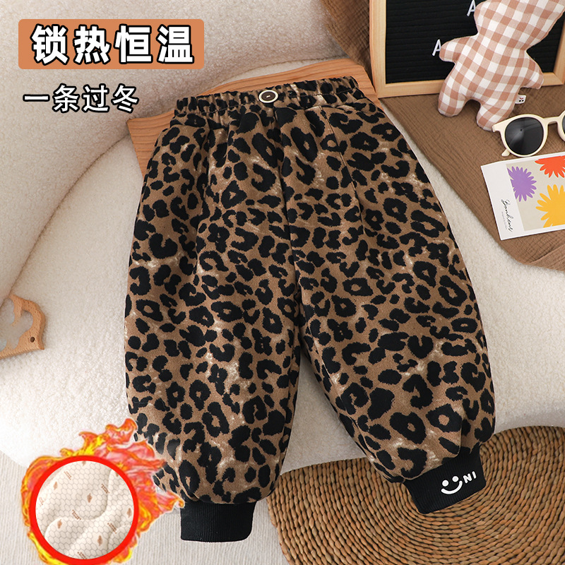 따뜻한 재고 바지 겨울 3 층 면 두꺼운 레오파드 무늬 바지 서양식 느슨한 어린이 올 매치 스웨트 팬츠 면 바지스토어 가기
