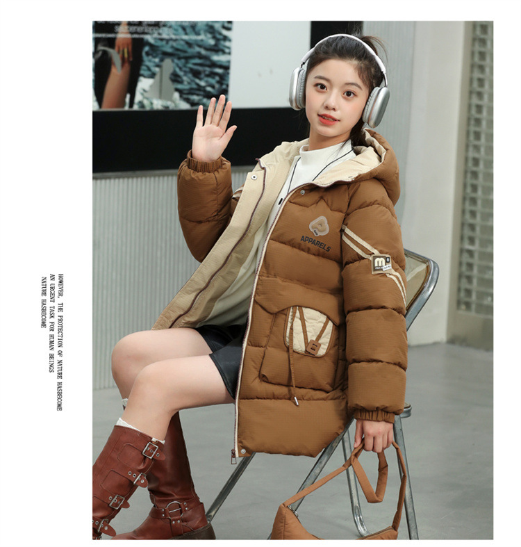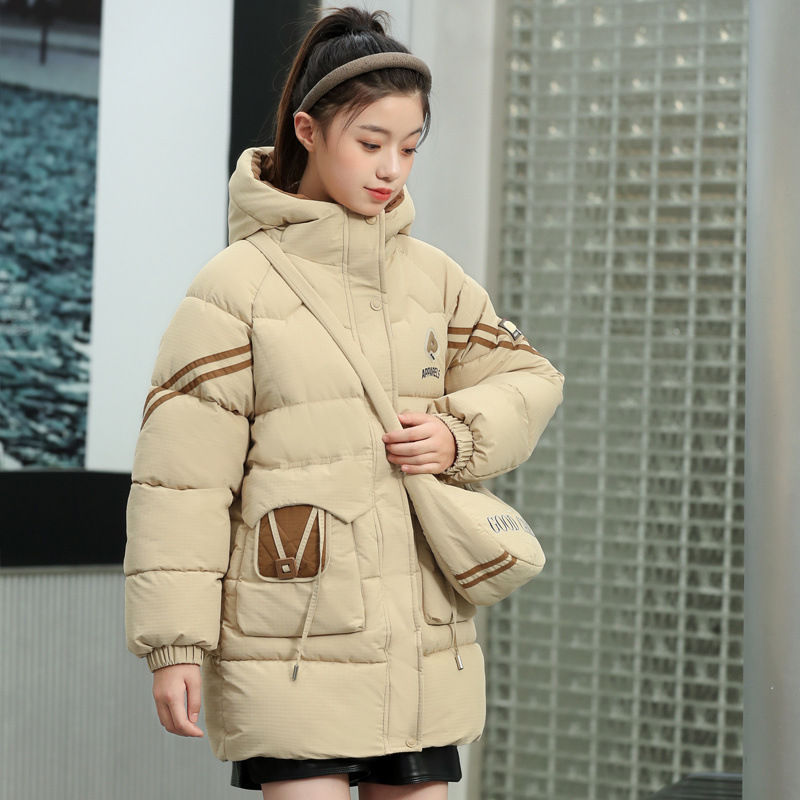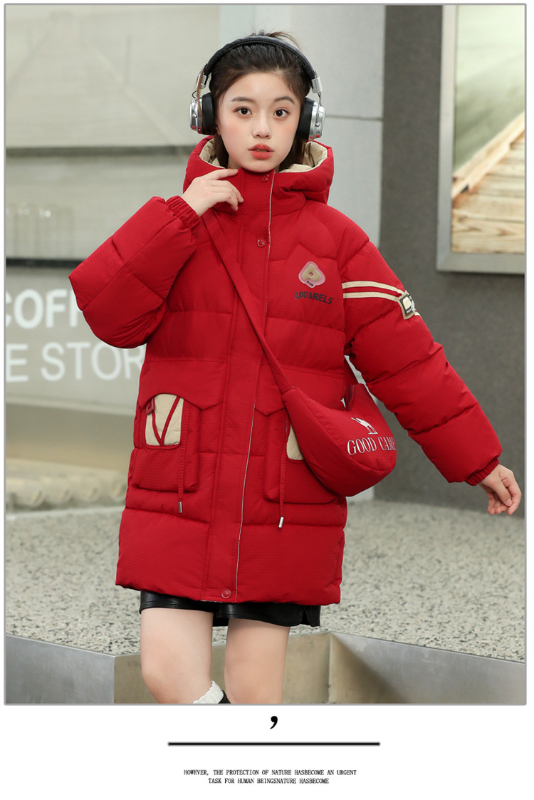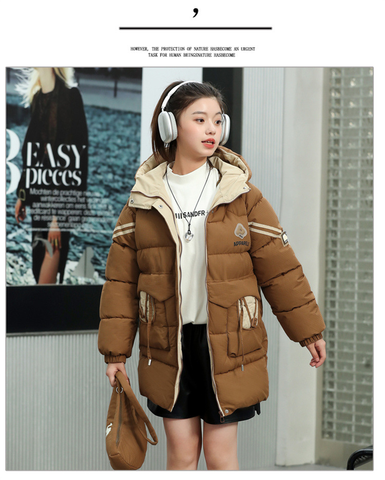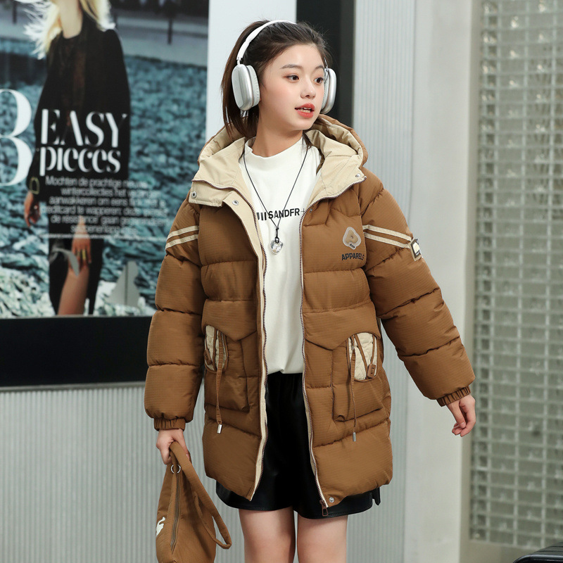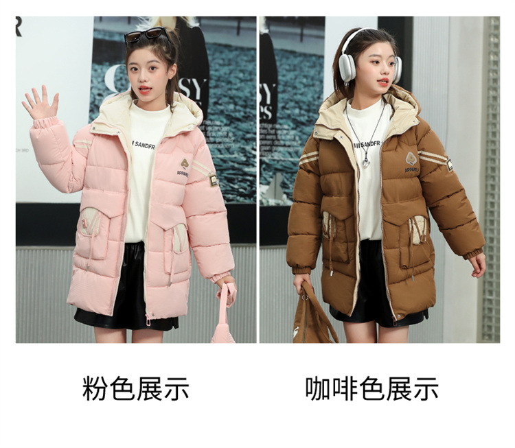 여자 겨울 기모 면 패딩 재킷 2024 새로운 큰 어린이 긴면 패딩 코트 여자 겨울 패딩 코트스토어 가기