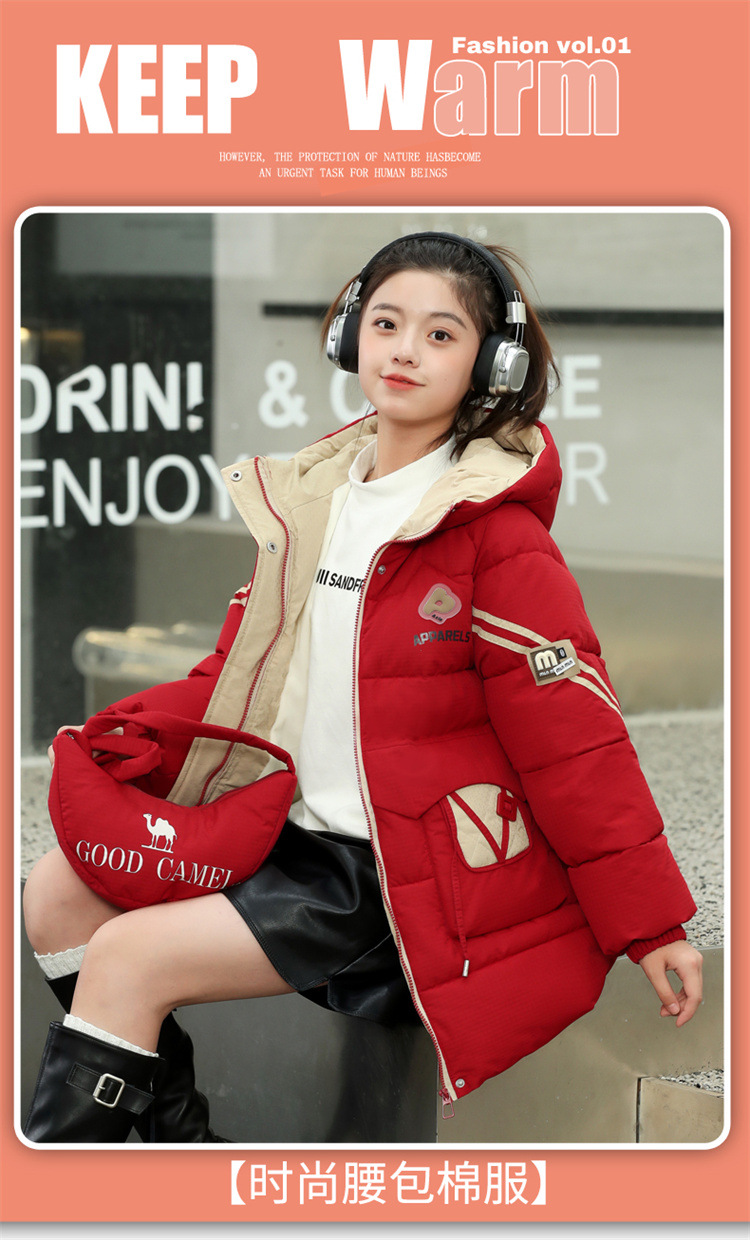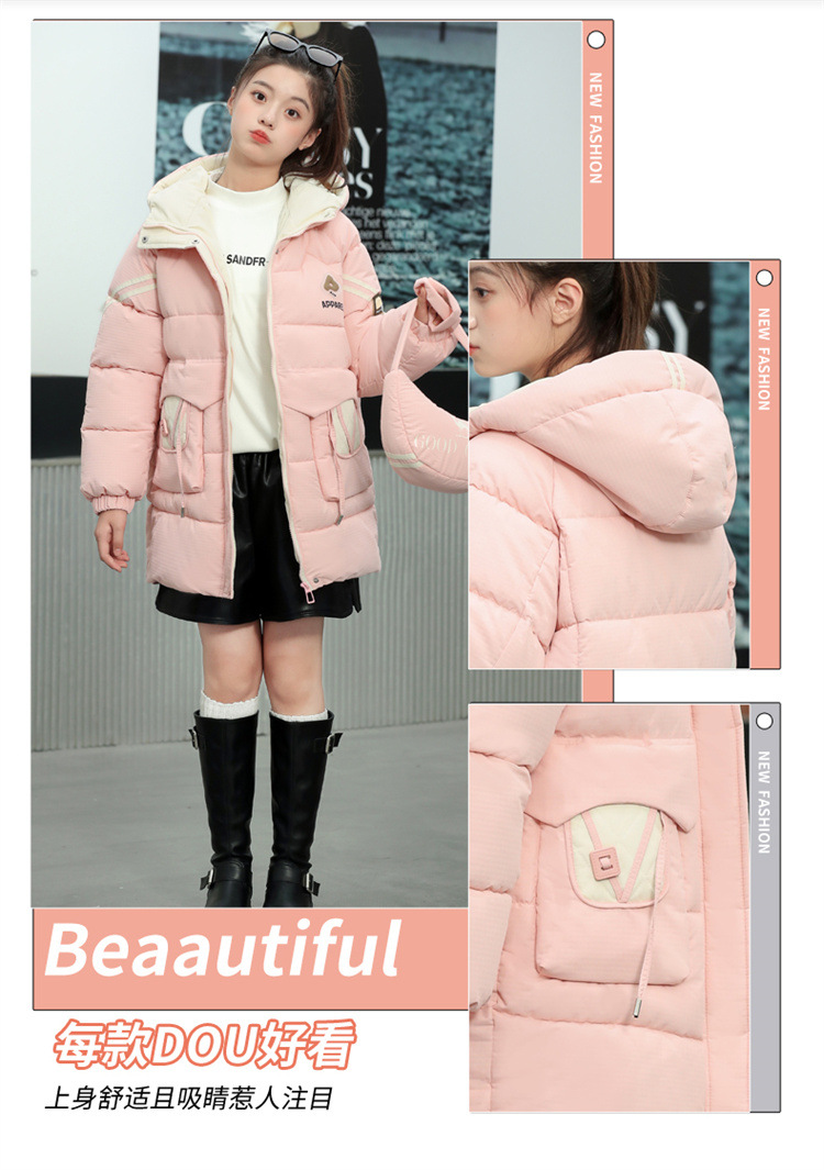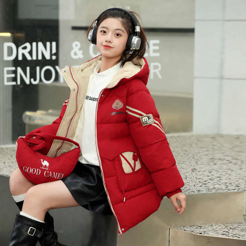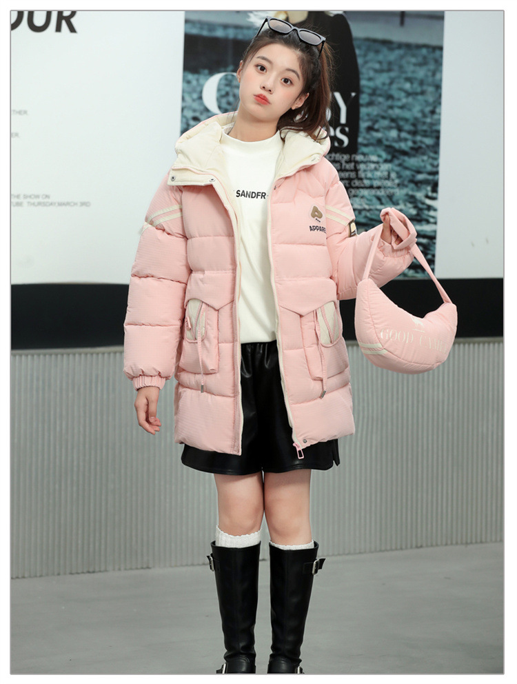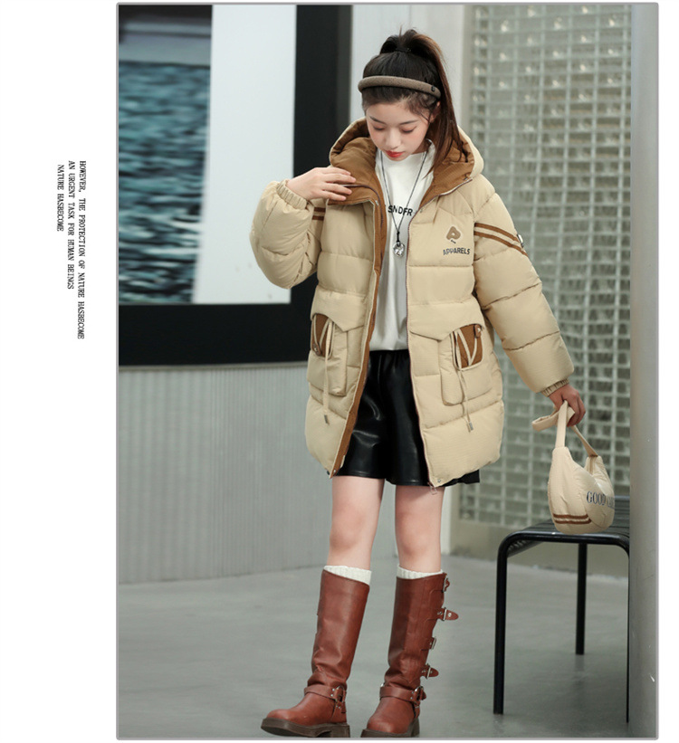 여자 겨울 기모 면 패딩 재킷 2024 새로운 큰 어린이 긴면 패딩 코트 여자 겨울 패딩 코트스토어 가기
