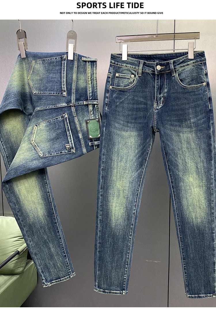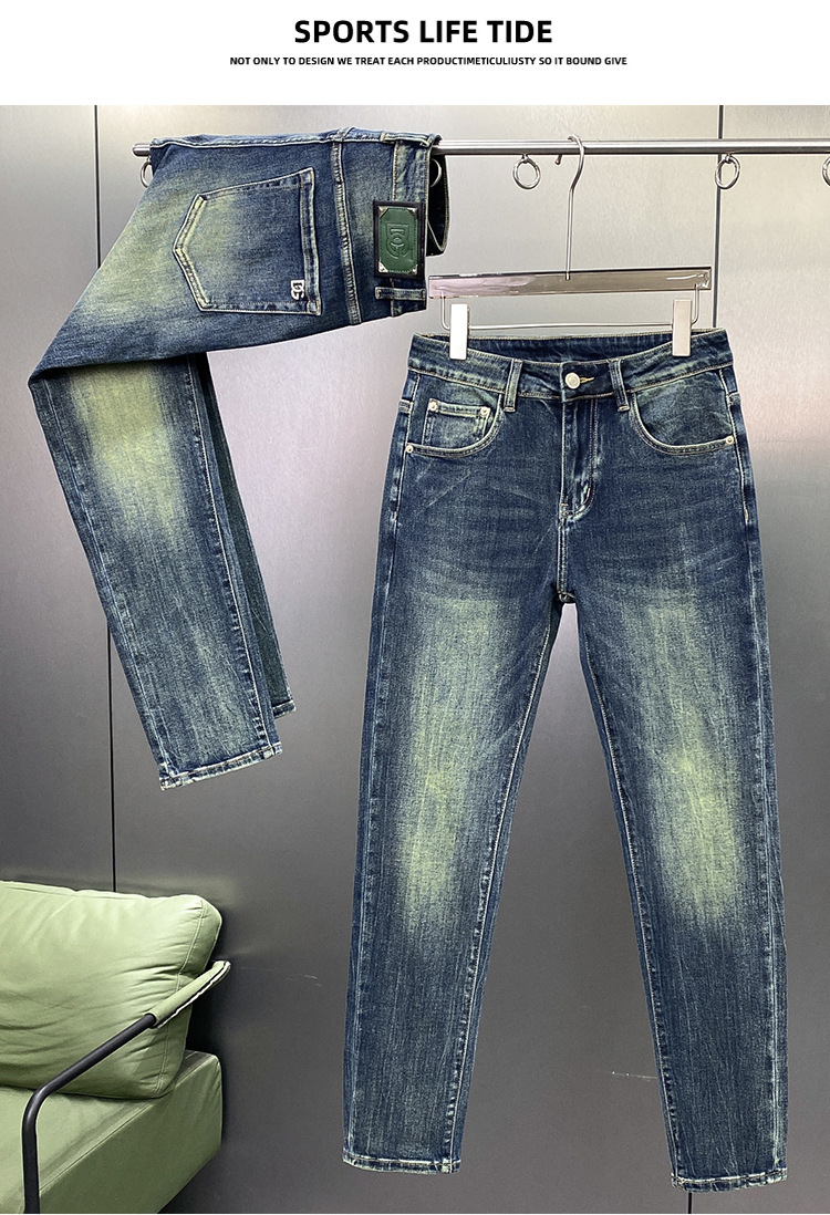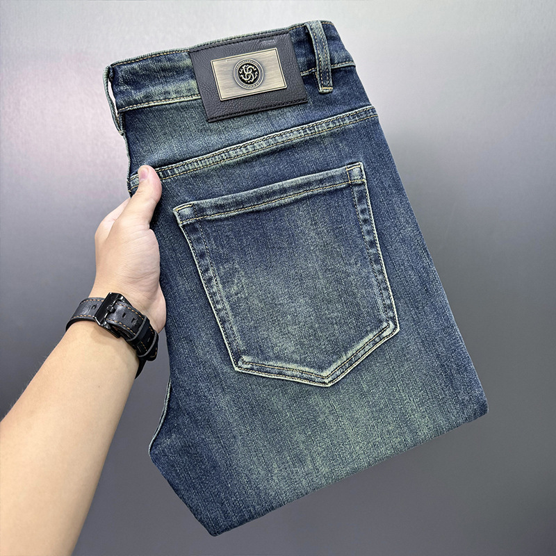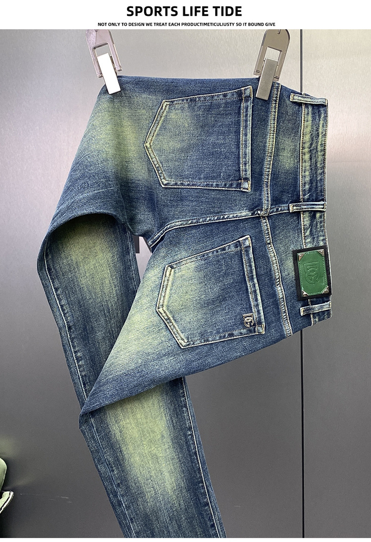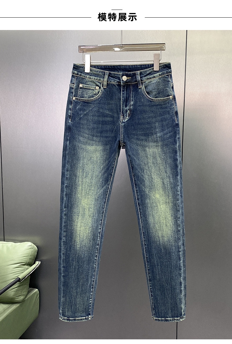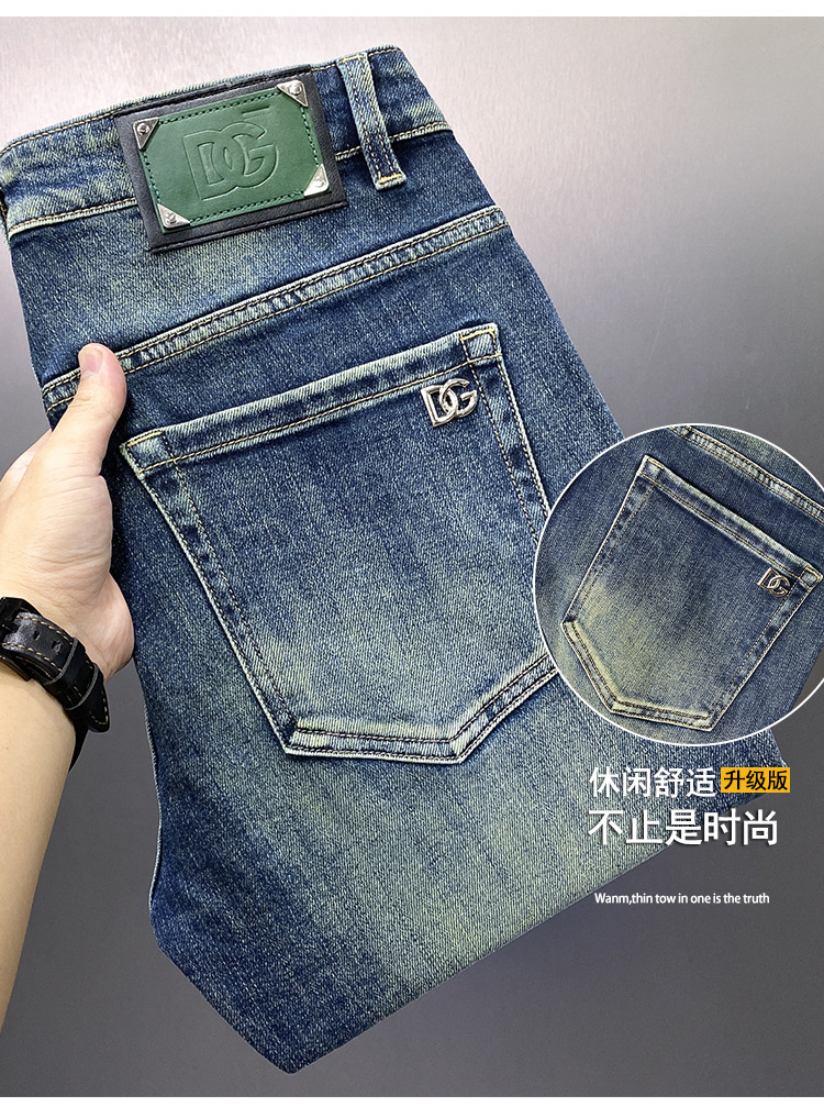 고급 캐주얼 가을과 겨울 두꺼운 레트로 블루 하이 엔드 청바지 남성용 트렌디 루즈 스트레이트 바지 가을 하렘 바지스토어 가기