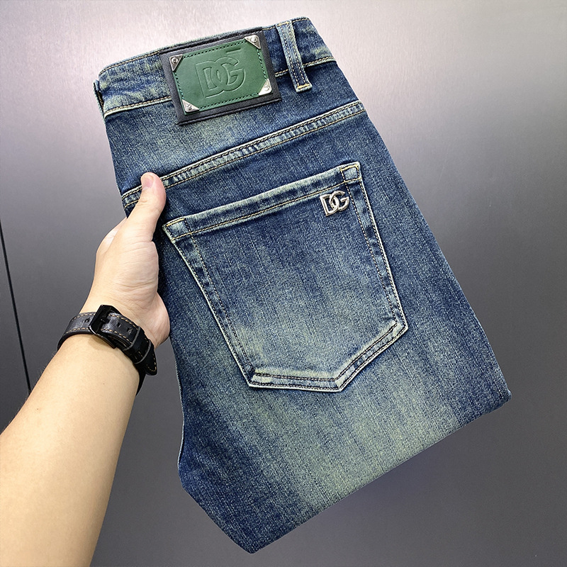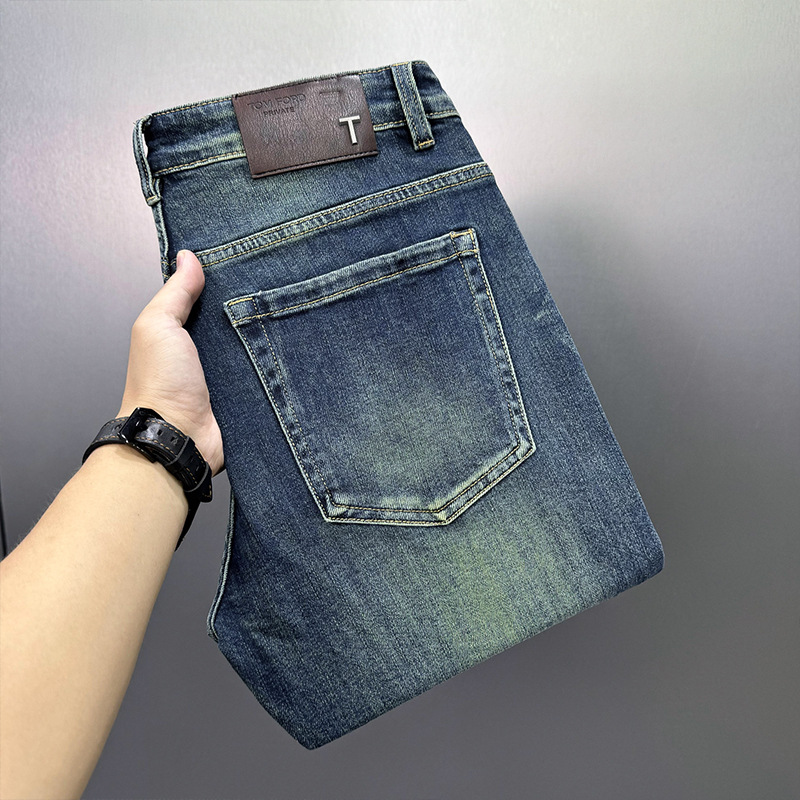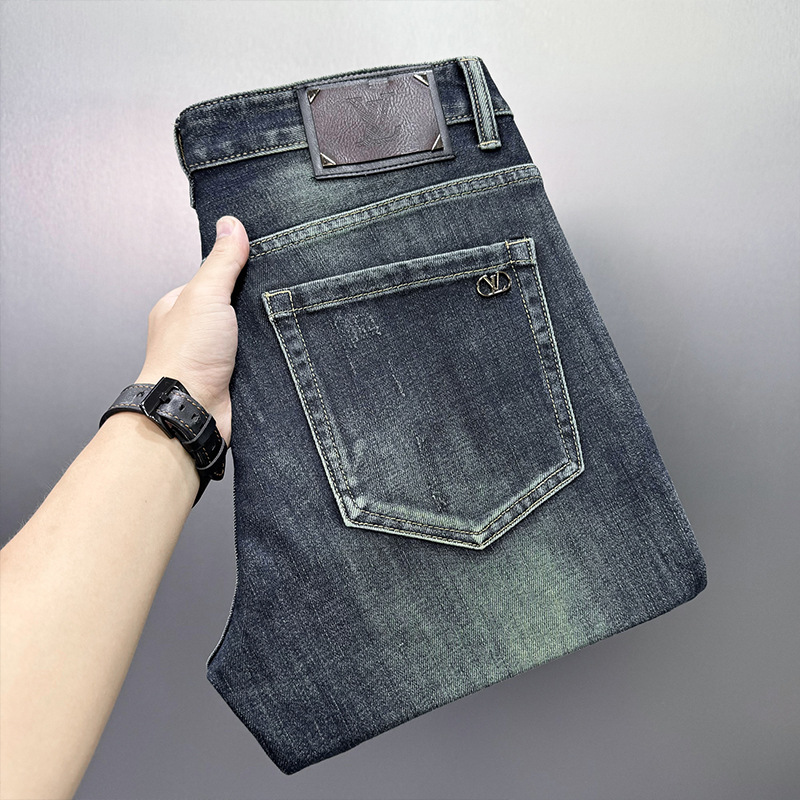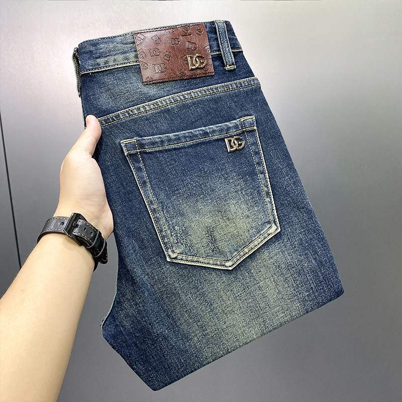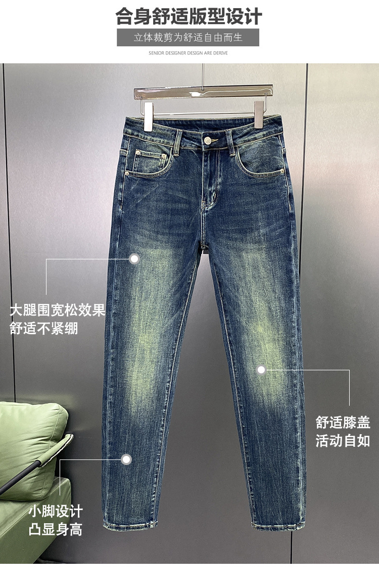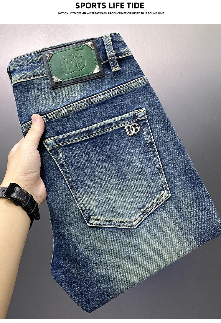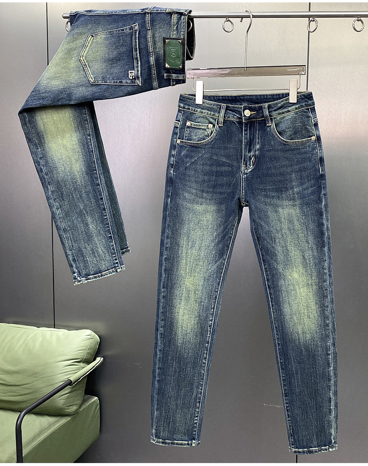 고급 캐주얼 가을과 겨울 두꺼운 레트로 블루 하이 엔드 청바지 남성용 트렌디 루즈 스트레이트 바지 가을 하렘 바지스토어 가기