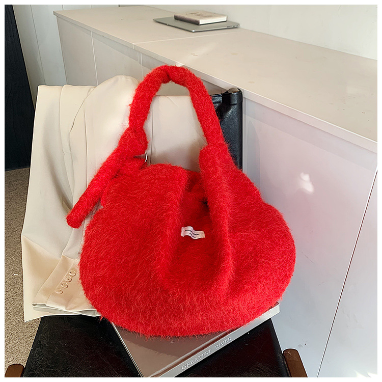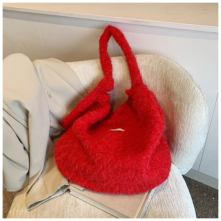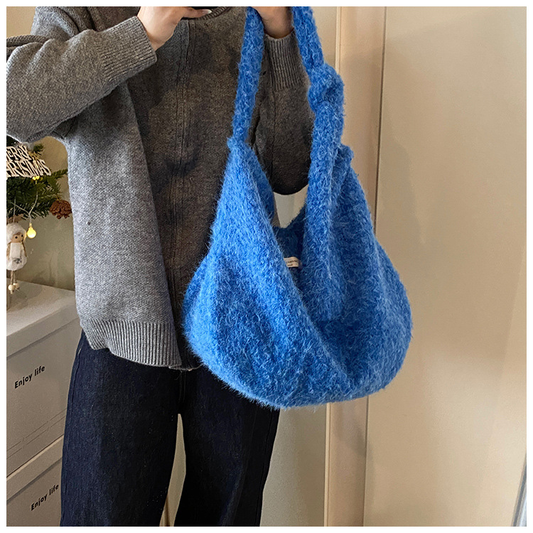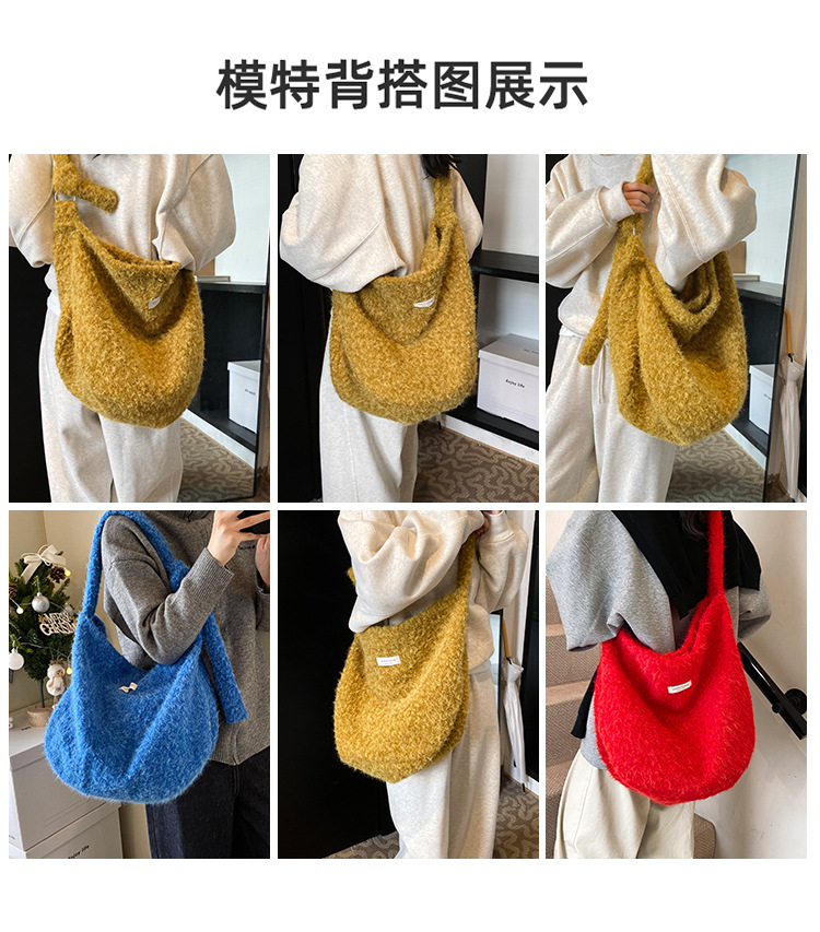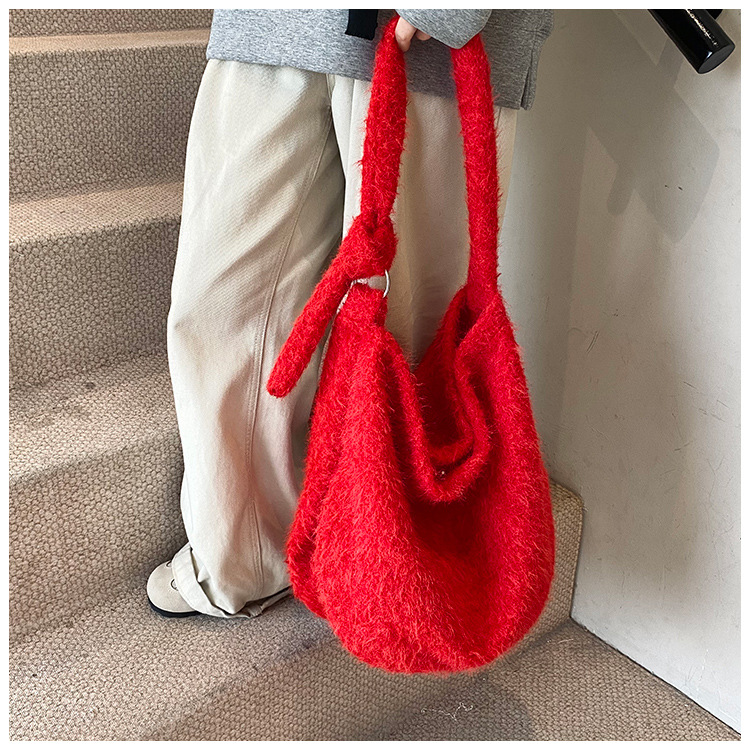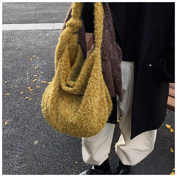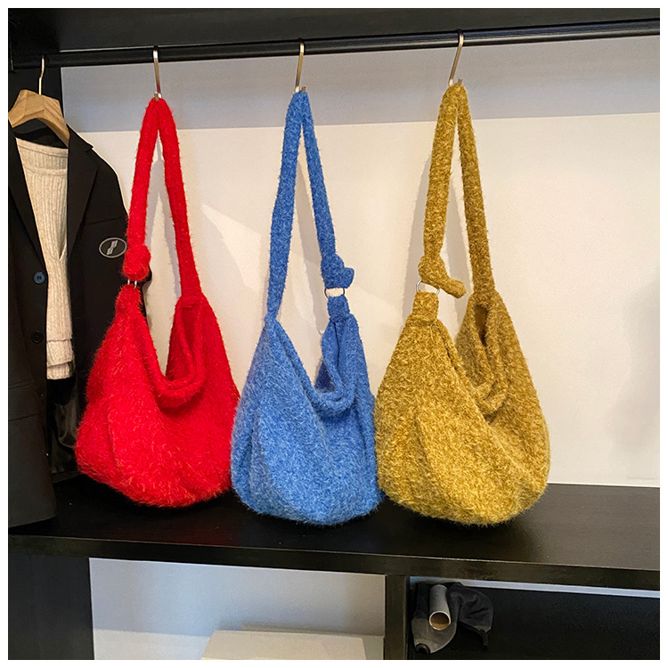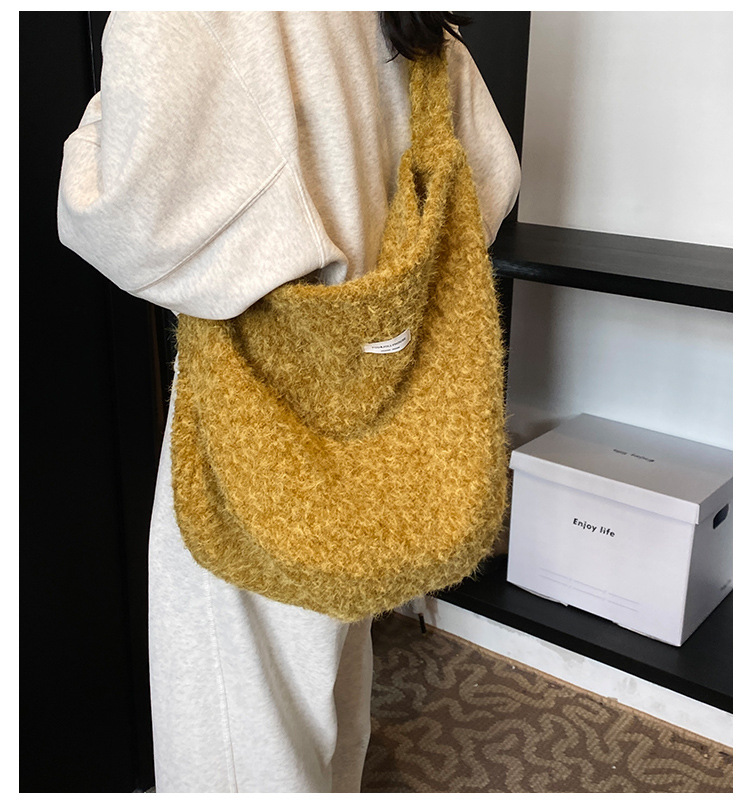 트렌디 한 새로운 틈새 디자인 유행 단색 모직 토트 백 경량 게으른 대용량 크로스 바디 백 여성용스토어 가기