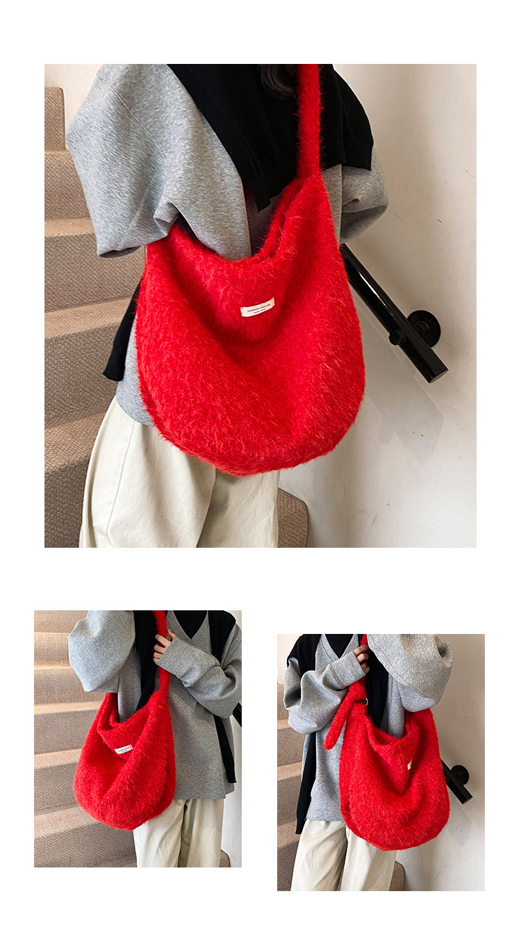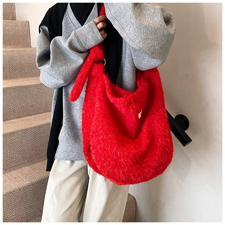 트렌디 한 새로운 틈새 디자인 유행 단색 모직 토트 백 경량 게으른 대용량 크로스 바디 백 여성용
