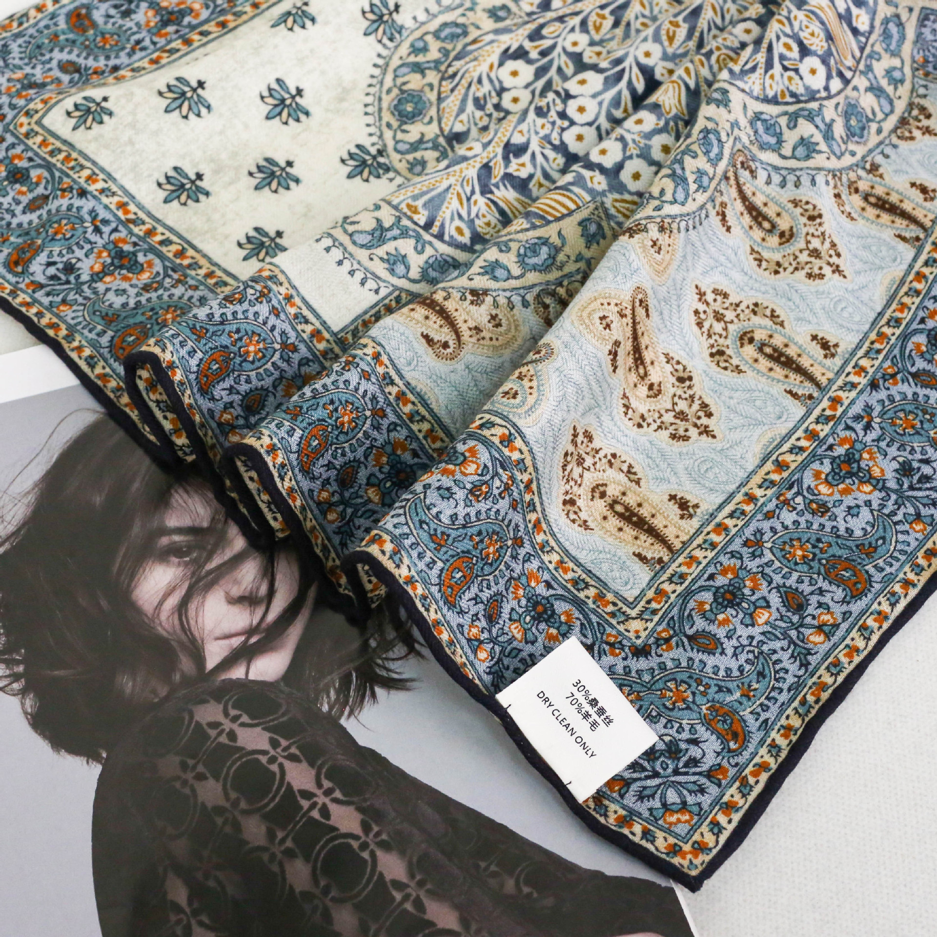 [카포크트리] 복고풍 기질 뽕나무 실크 양면 실크 울 스카프 조커 70 스퀘어 스카프 숄스카프스토어 가기