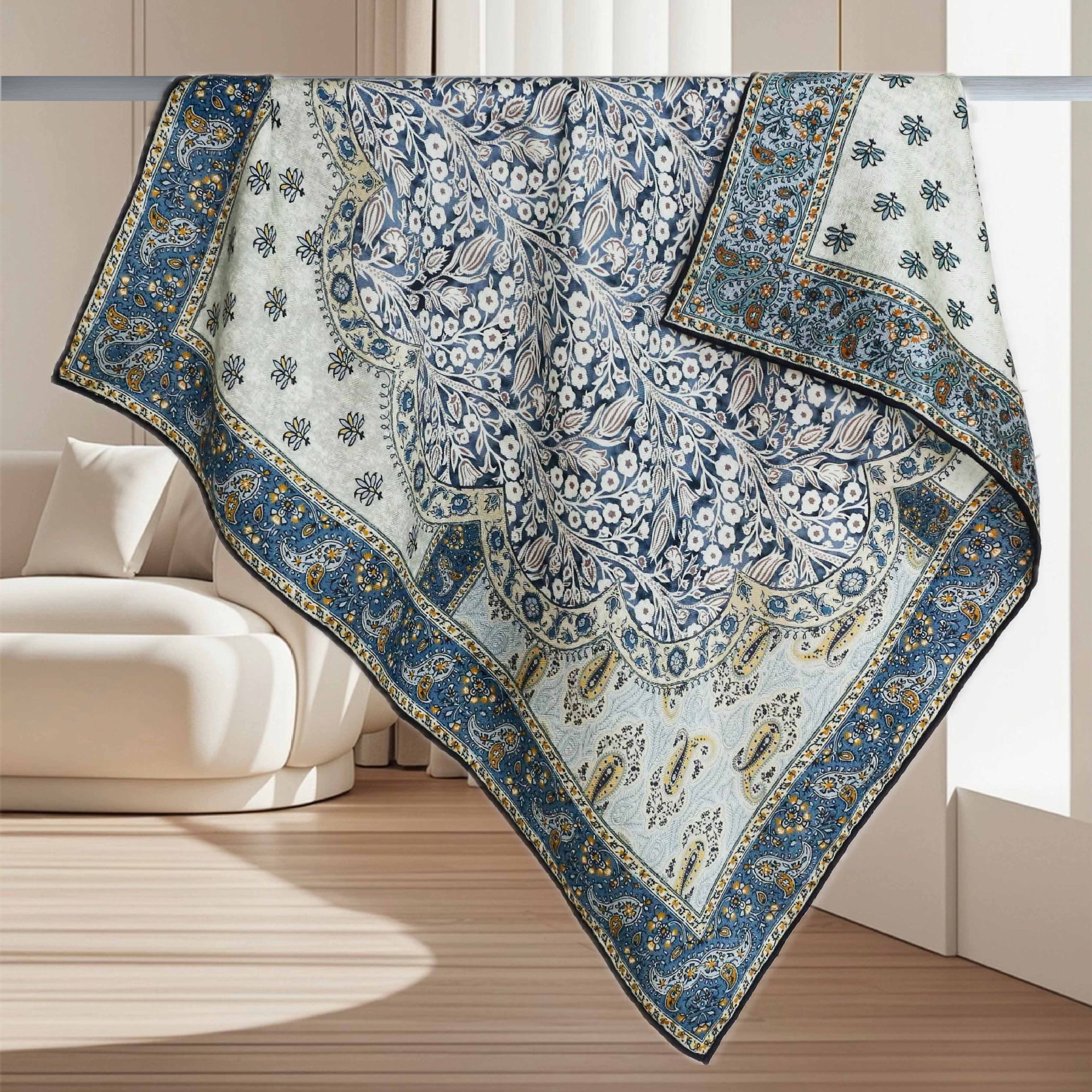 [카포크트리] 복고풍 기질 뽕나무 실크 양면 실크 울 스카프 조커 70 스퀘어 스카프 숄스카프