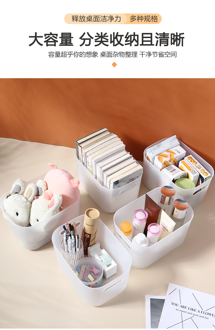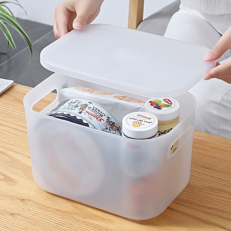 투명한 서리 저장 상자 사무실 잡화 책 보관 상자 뚜껑 가정용 플라스틱 스낵 보관 추 Jueqin스토어 가기