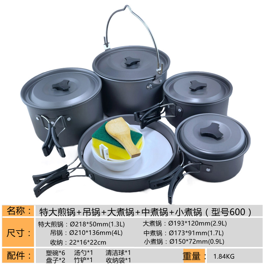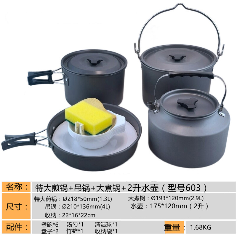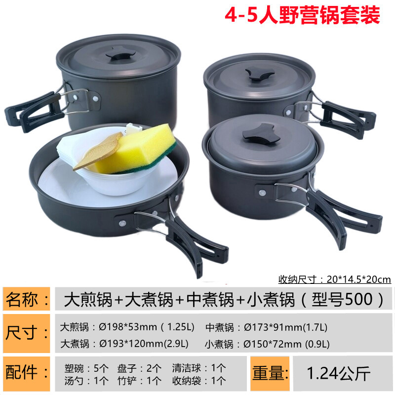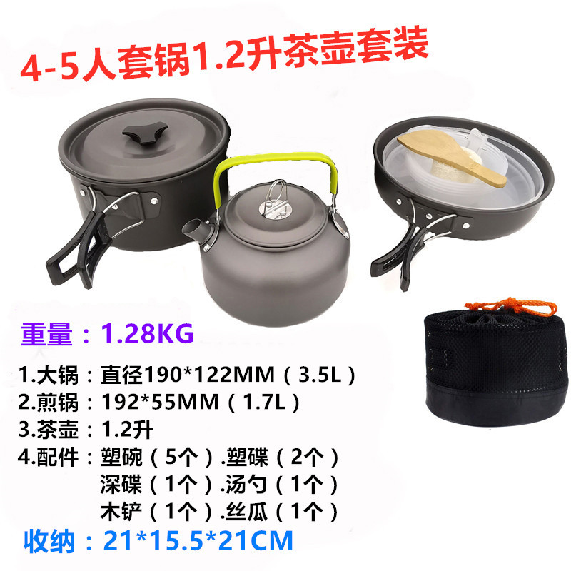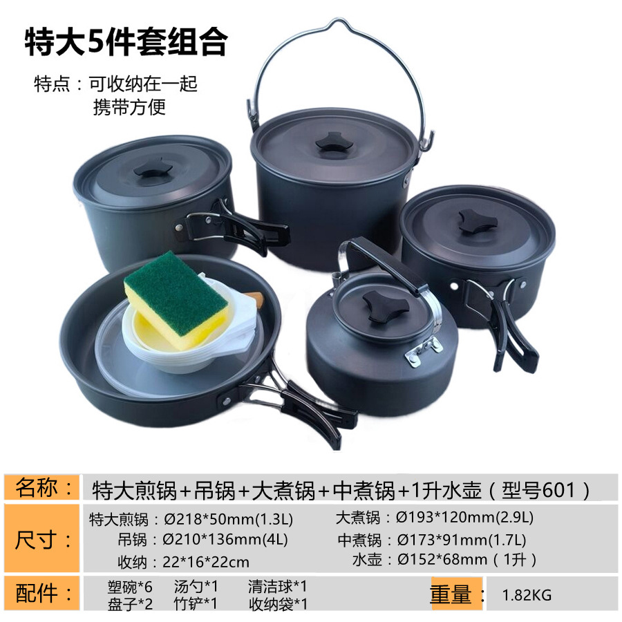2345-사람 휴대용 야외 세트 냄비 요리 도구 캠핑 피크닉 캠핑 프라이팬 주전자 주전자