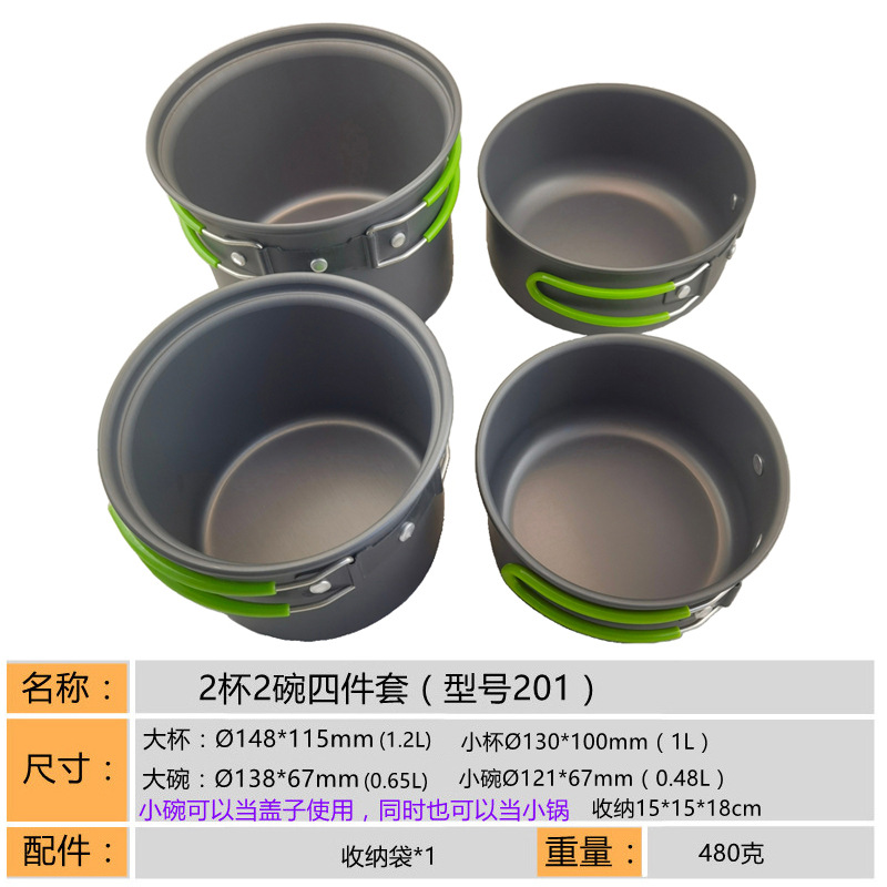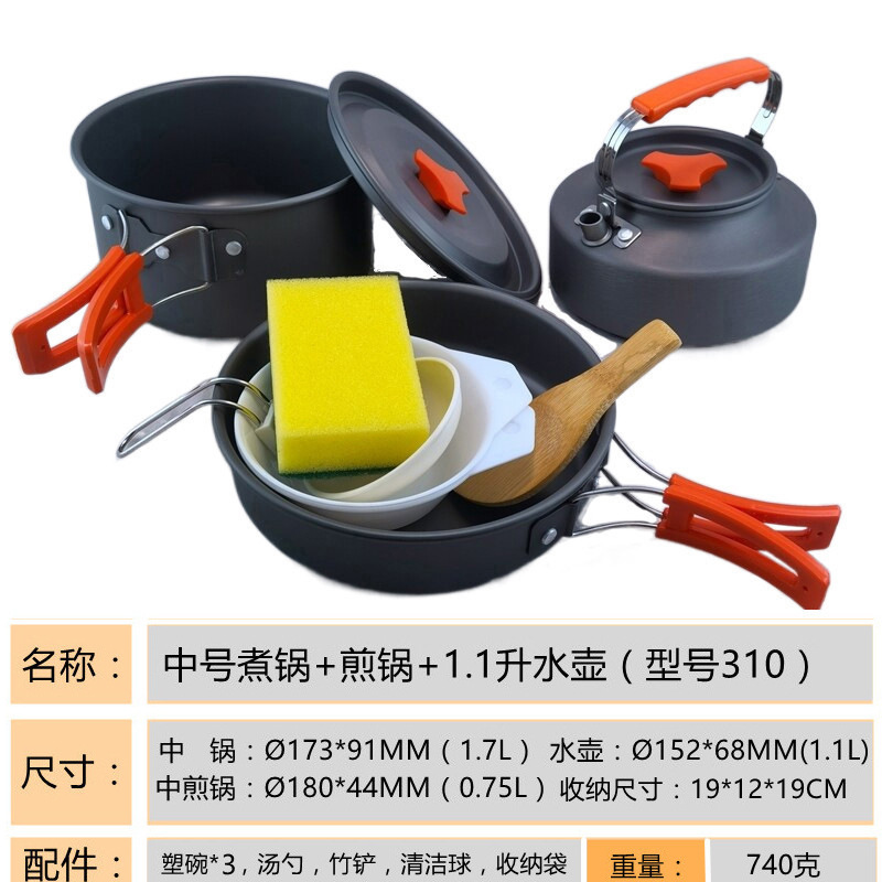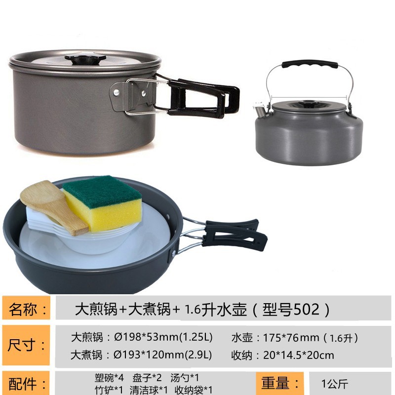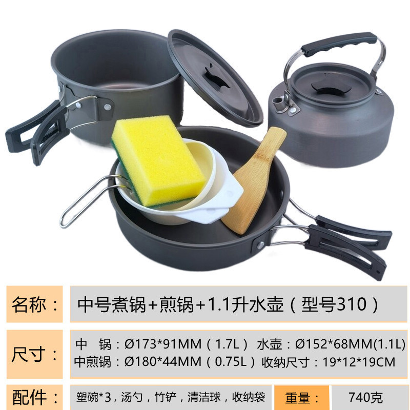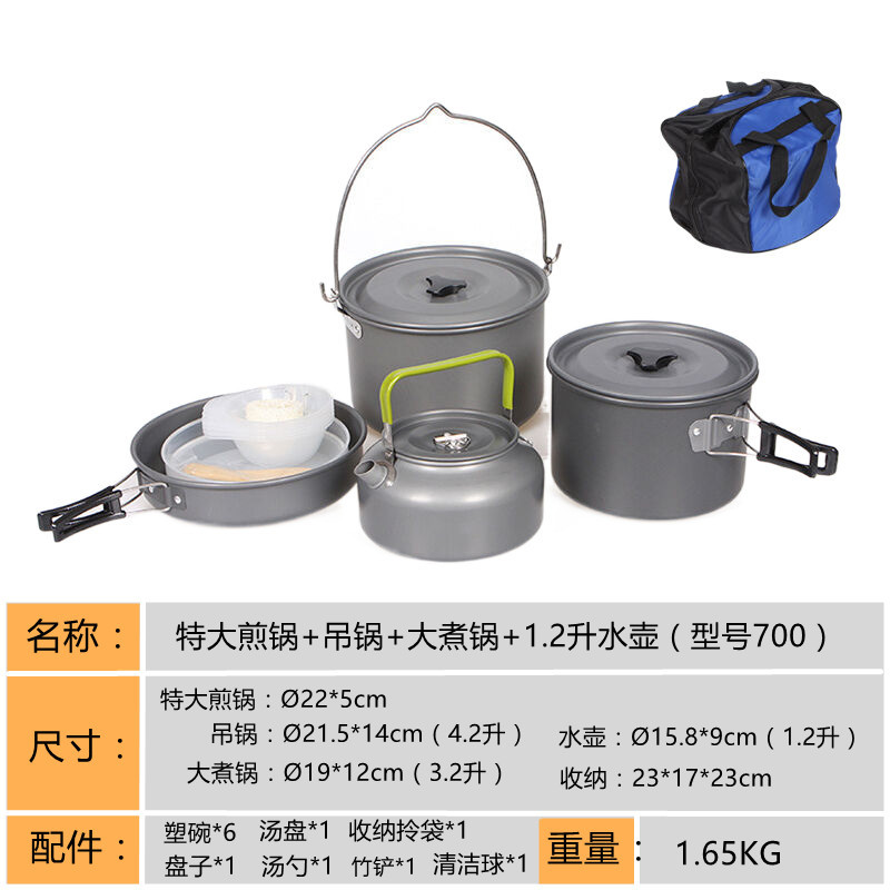 2345-사람 휴대용 야외 세트 냄비 요리 도구 캠핑 피크닉 캠핑 프라이팬 주전자 주전자