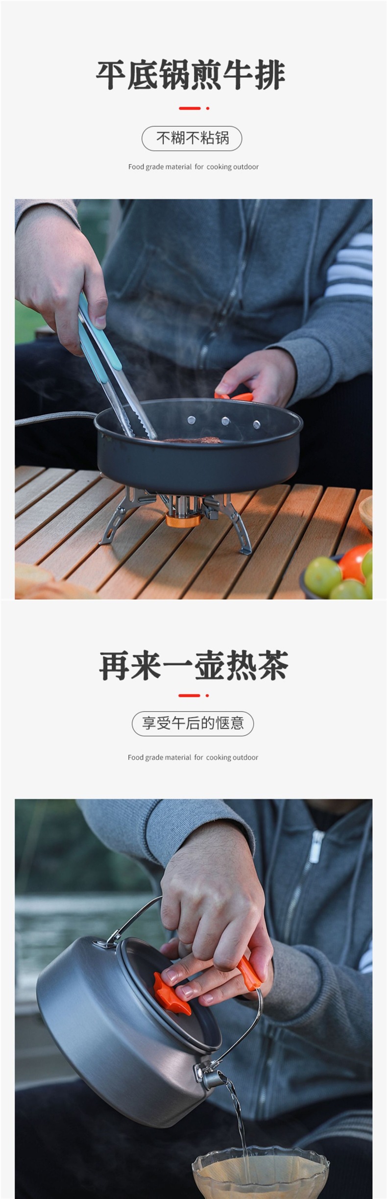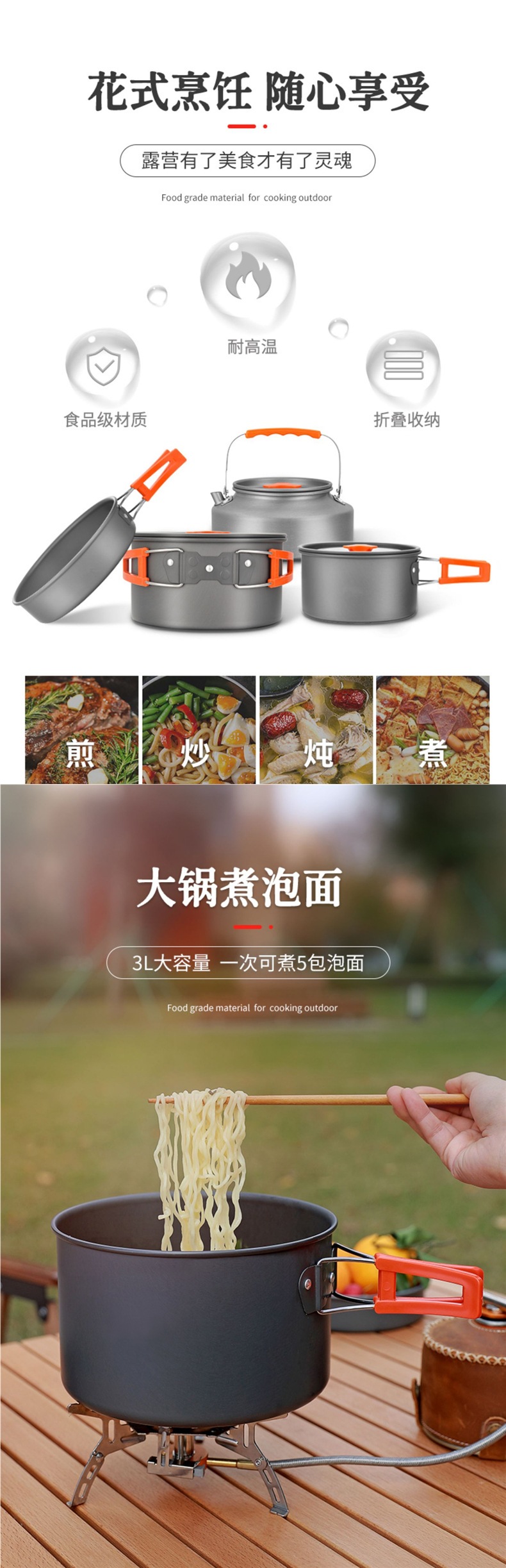 • 4~5인용 캠핑 냄비 세트, 오렌지색 대형, 무료 보관 가방