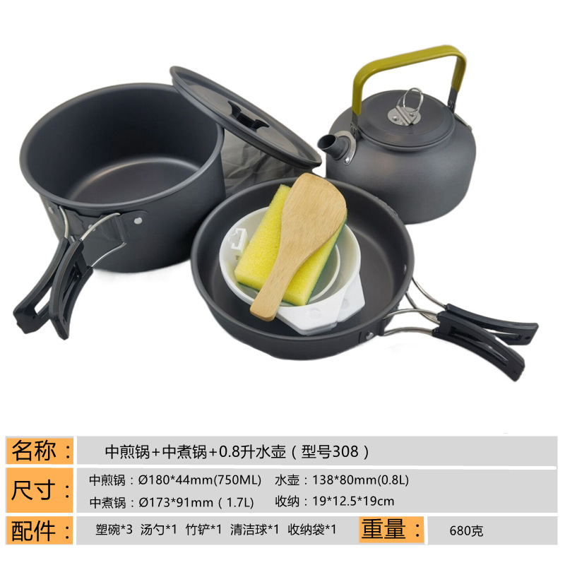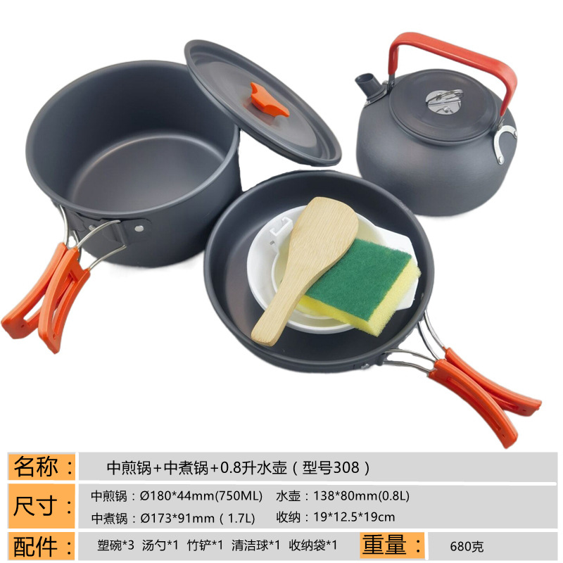 2345-사람 휴대용 야외 세트 냄비 요리 도구 캠핑 피크닉 캠핑 프라이팬 주전자 주전자스토어 가기