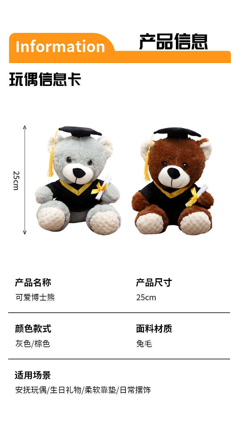 귀여운 박사곰 인형 졸업 선물 테디베어 인형 여자친구에게 선물하는 작은 곰 인형 웨딩용