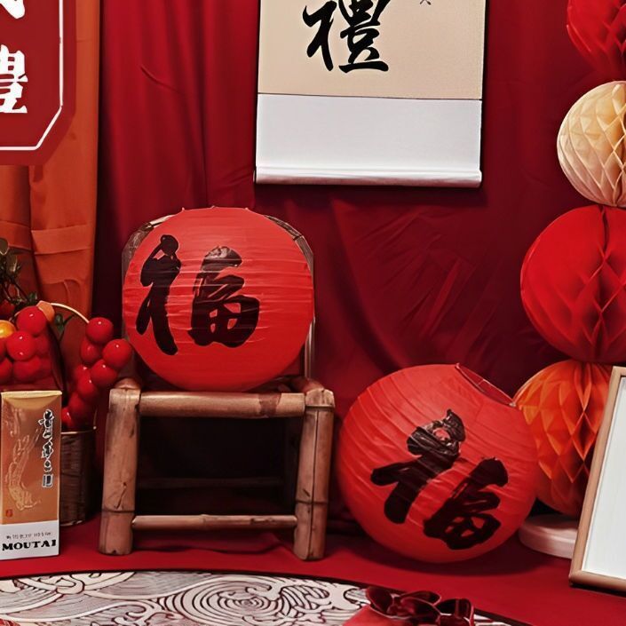 • 주황색 배경 필기체(2개) + 얇은 축복 랜턴(1개)