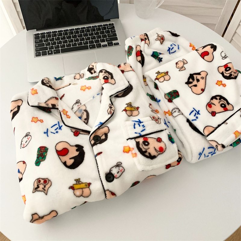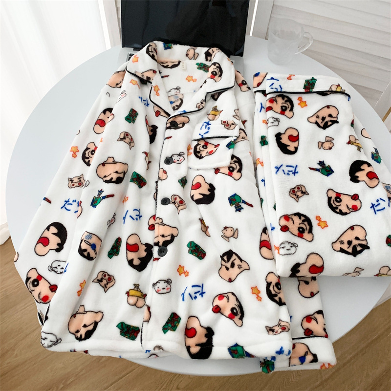 크레용 신 커플 잠옷 남녀 코랄 벨벳 가을과 겨울 집 옷 플란넬 학생 기모 두꺼운 세트스토어 가기
