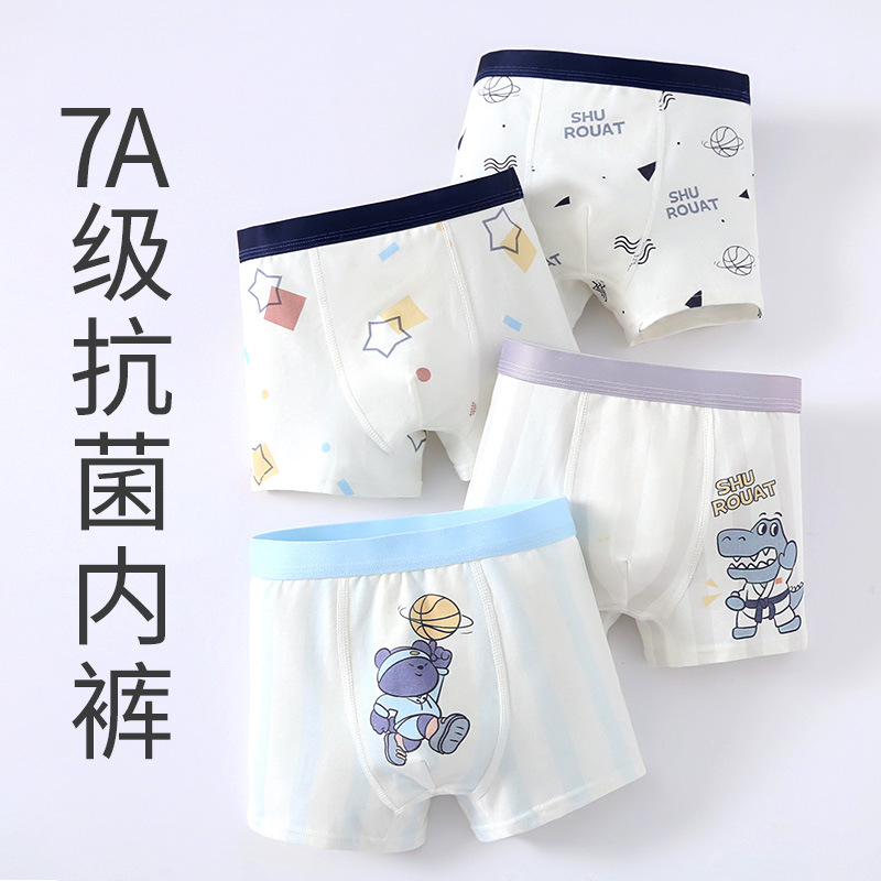 십대 소년 속옷 어린이 클래스 순수 면화 학생 중 및 대형 어린이 복서 바지 7A 박테리아 정체가 엉덩이 4 개의 모서리를 깎지 않음스토어 가기