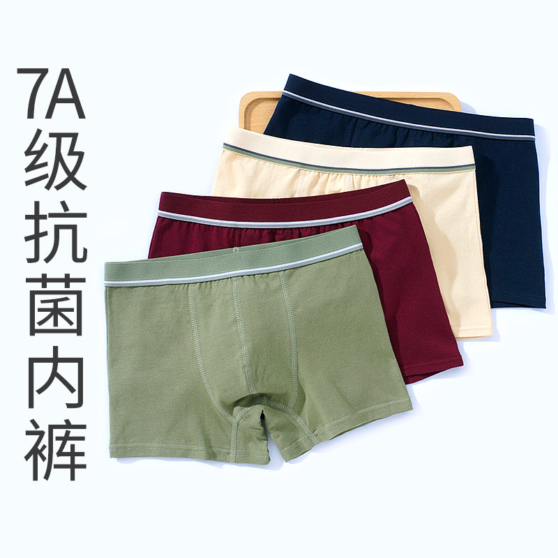 십대 소년 속옷 어린이 클래스 순수 면화 학생 중 및 대형 어린이 복서 바지 7A 박테리아 정체가 엉덩이 4 개의 모서리를 깎지 않음