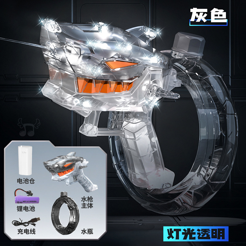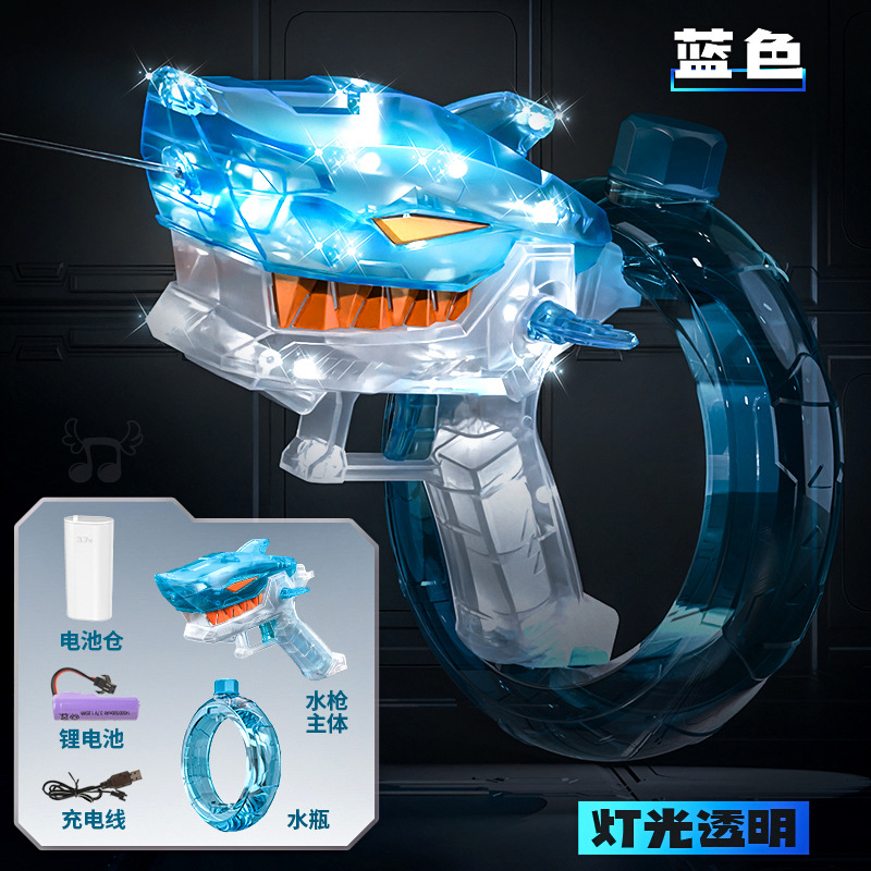 국경 간 전기 라이트 상어 물총 쿨 투명 야생 상어 에너지 수집 링 대용량 고속 연속 발사 물총