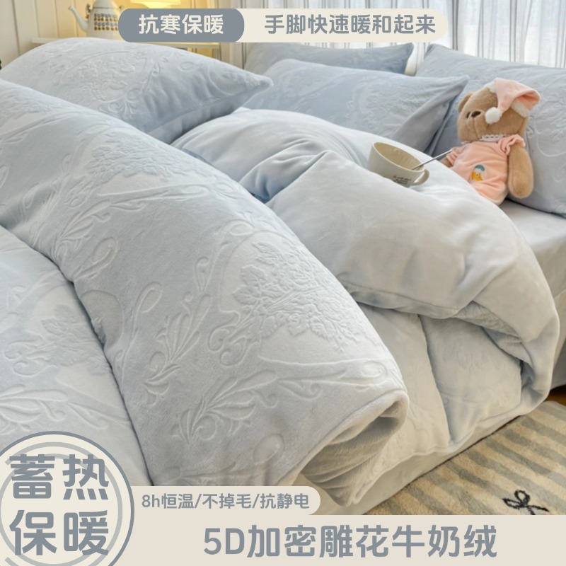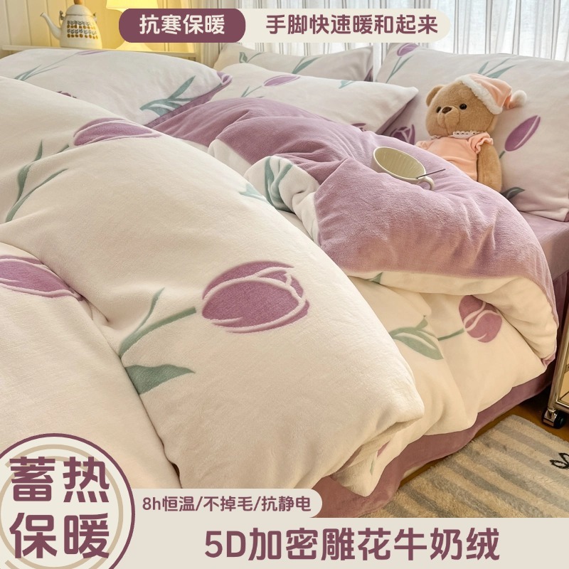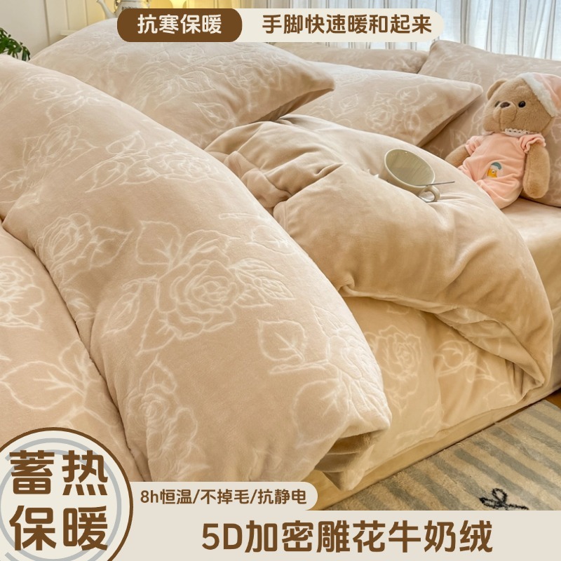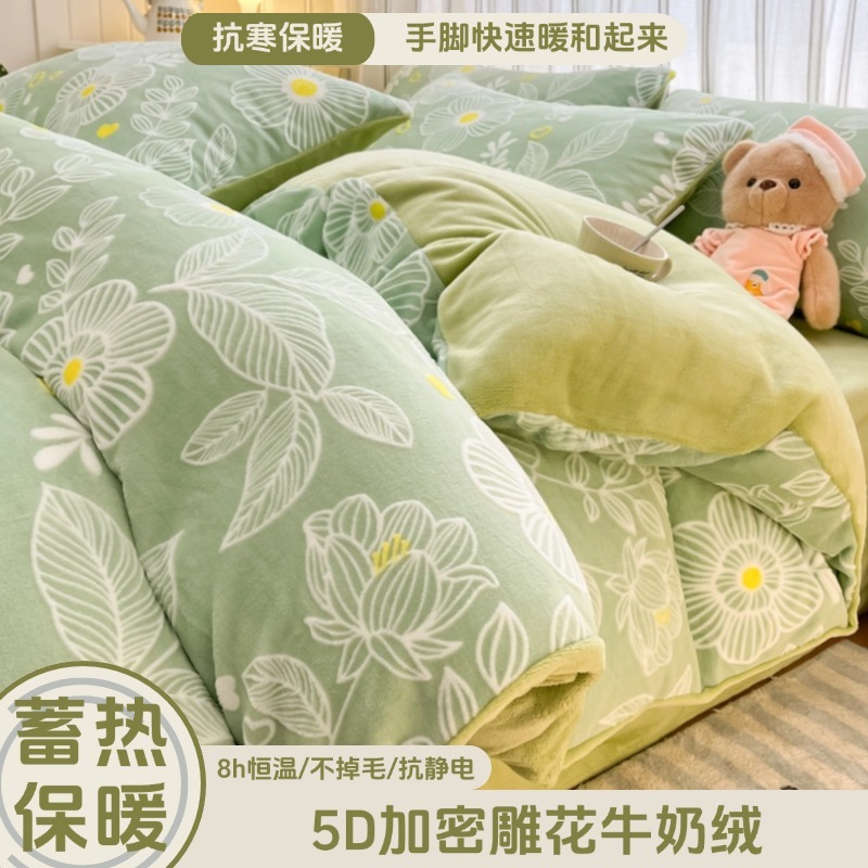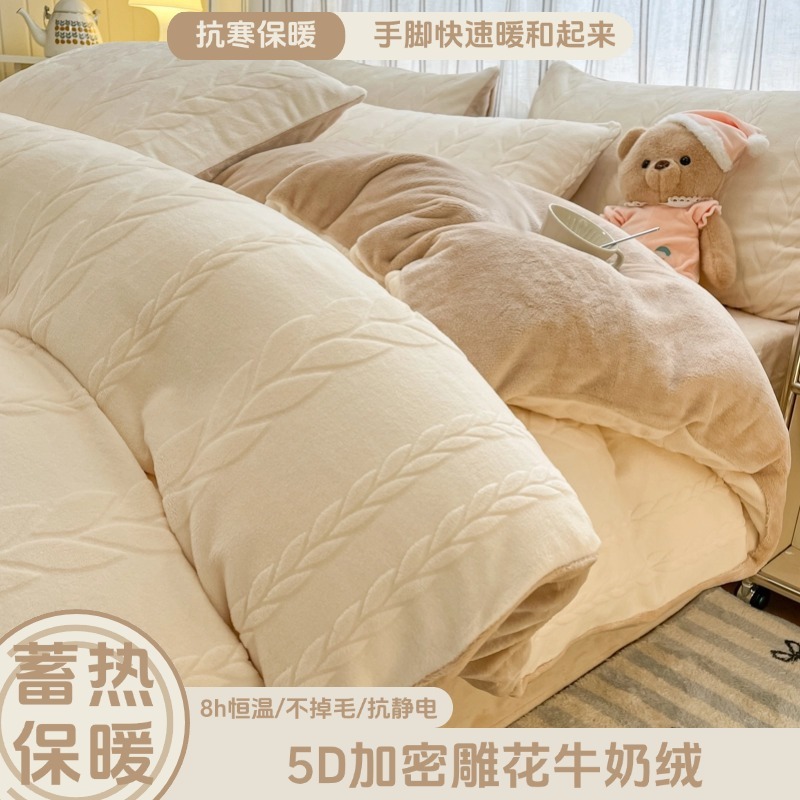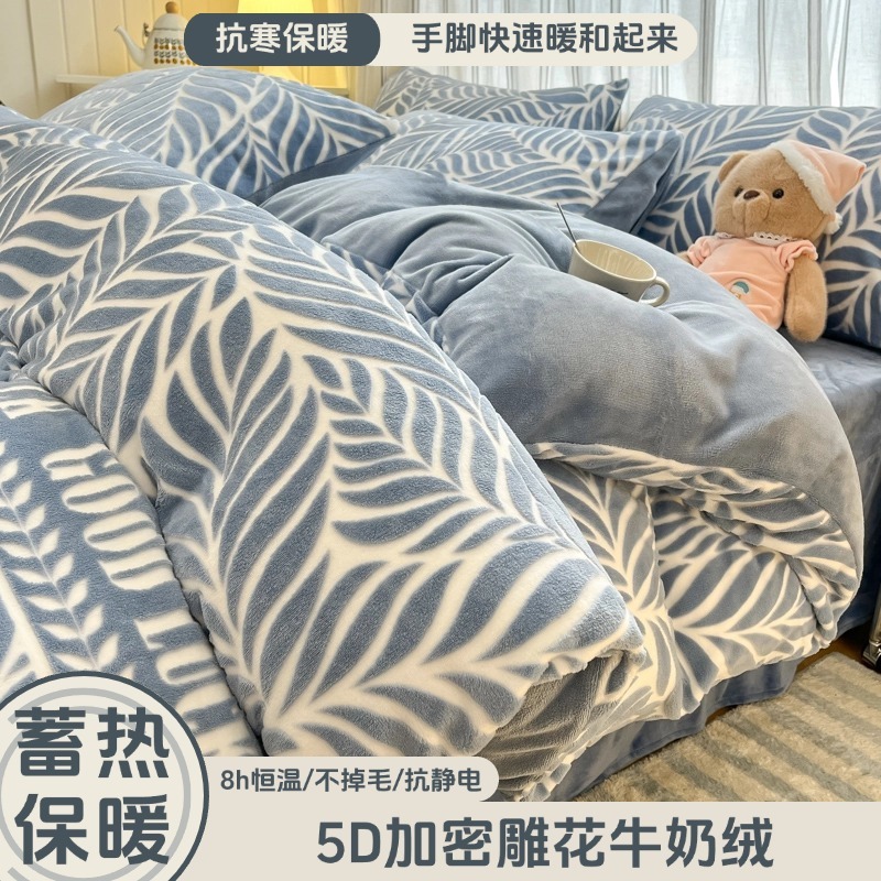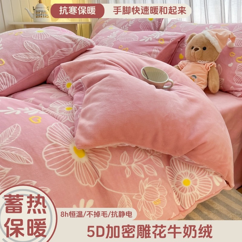 겨울 두꺼운 따뜻한 조각 우유 벨벳 침대 4 피스 코랄 벨벳 플러시 퀼트 커버 침대 시트 기숙사 3 피스 세트스토어 가기