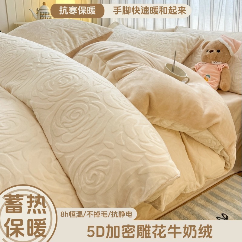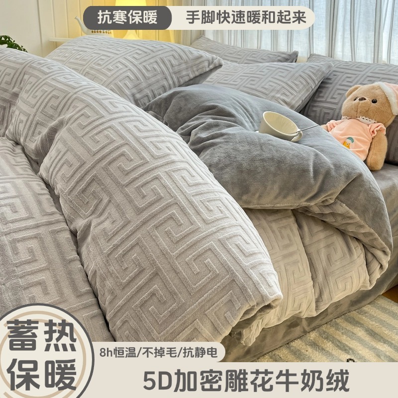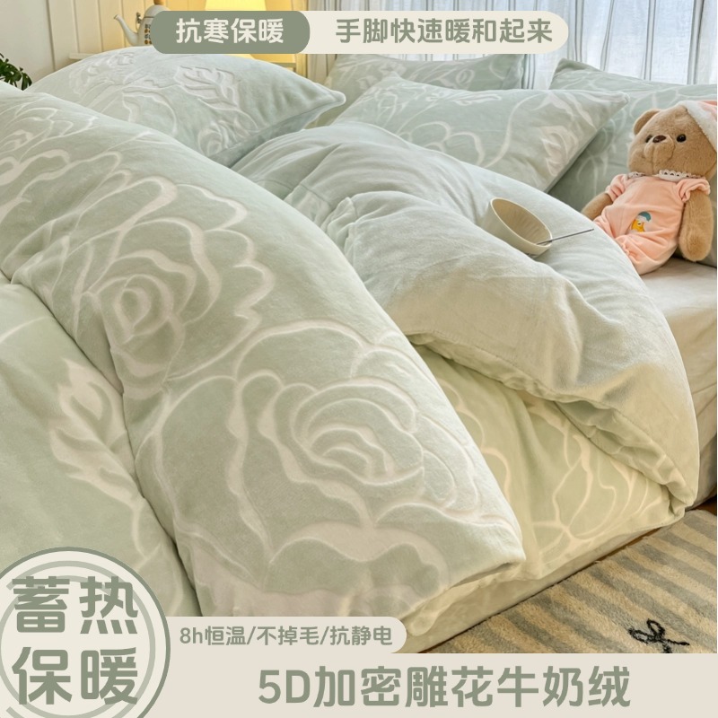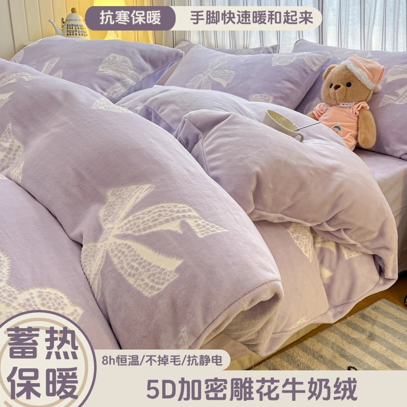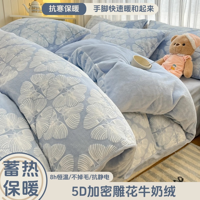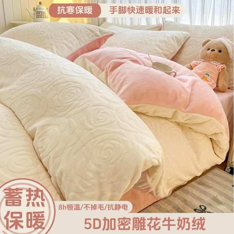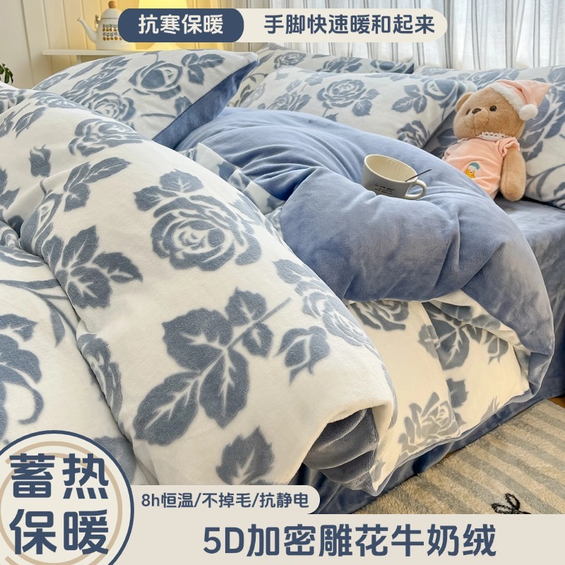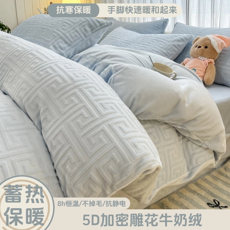 겨울 두꺼운 따뜻한 조각 우유 벨벳 침대 4 피스 코랄 벨벳 플러시 퀼트 커버 침대 시트 기숙사 3 피스 세트스토어 가기