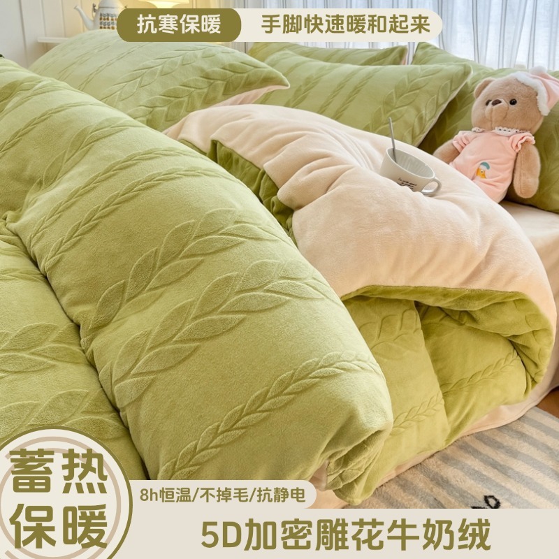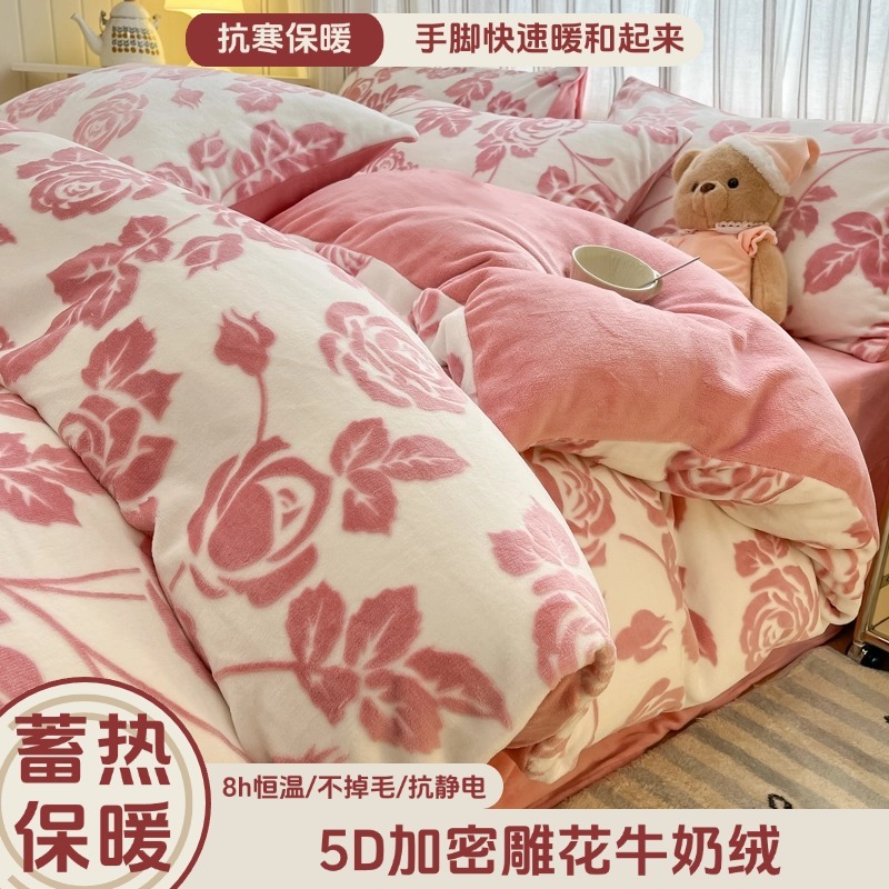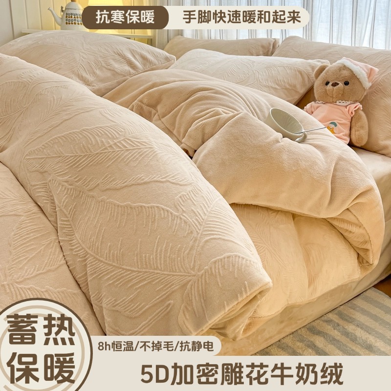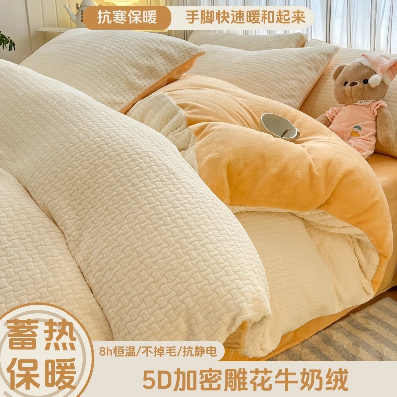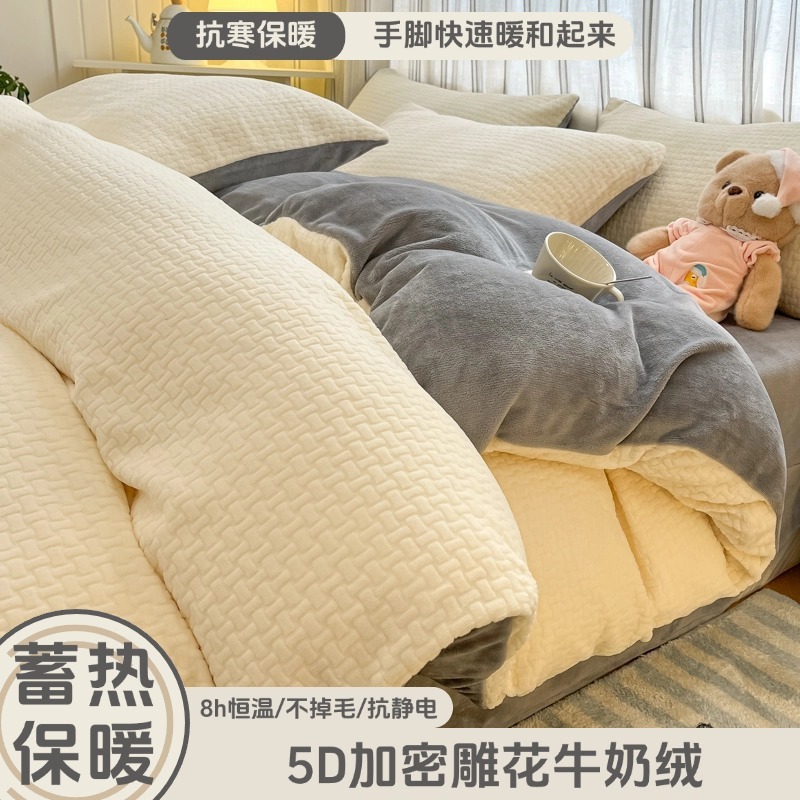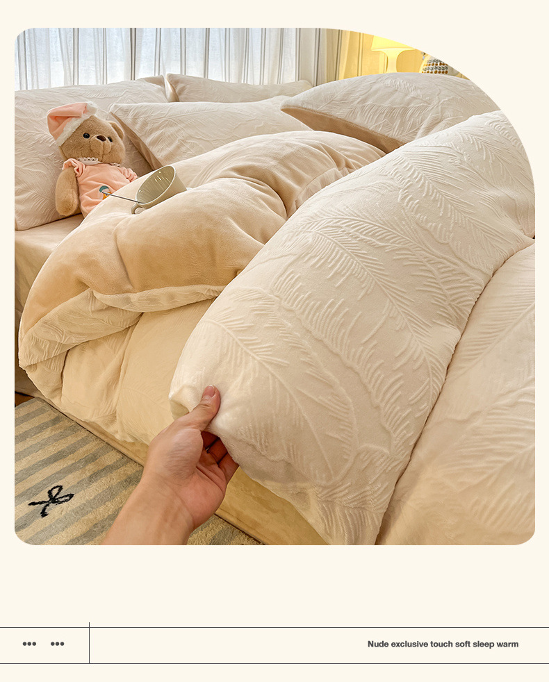겨울 두꺼운 따뜻한 조각 우유 벨벳 침대 4 피스 코랄 벨벳 플러시 퀼트 커버 침대 시트 기숙사 3 피스 세트