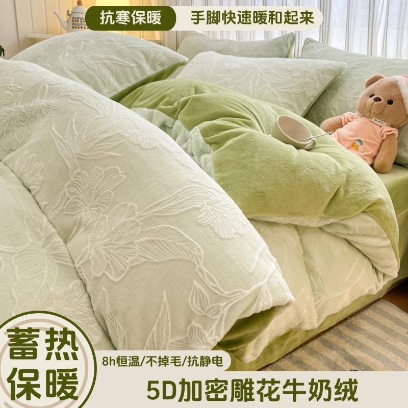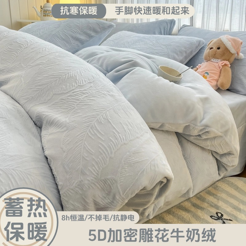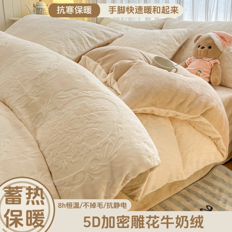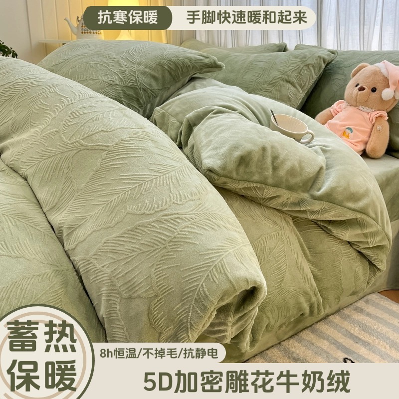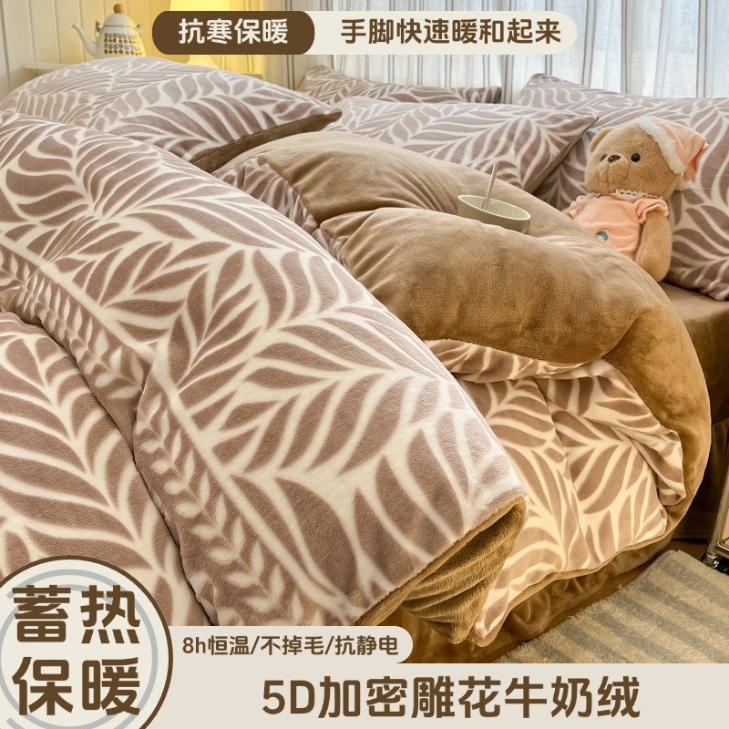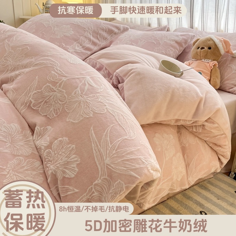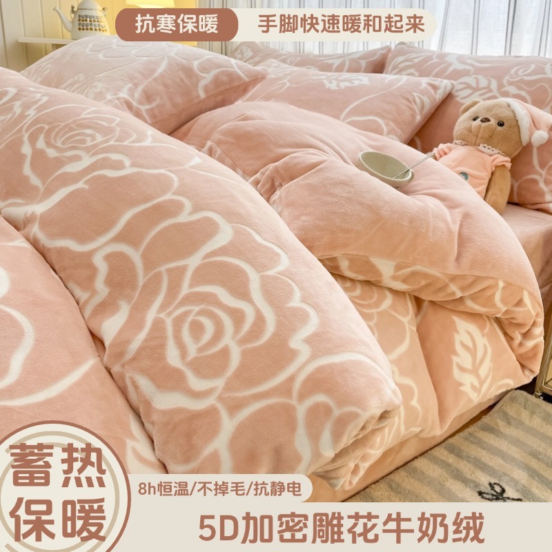 겨울 두꺼운 따뜻한 조각 우유 벨벳 침대 4 피스 코랄 벨벳 플러시 퀼트 커버 침대 시트 기숙사 3 피스 세트