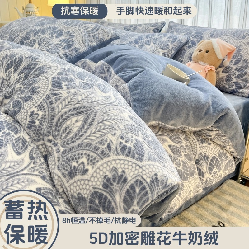 • 예징-블루 [방한, 따뜻한, 고중량 조각 밀크 벨벳]