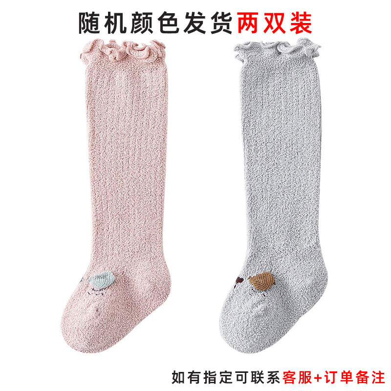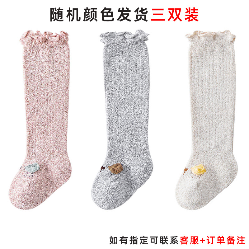 아기 긴 양말 아기 양말 봄 및 가을 기모 0-3 개월 신생아 무릎 가을과 겨울 느슨한 입 다리를 묶지 않는