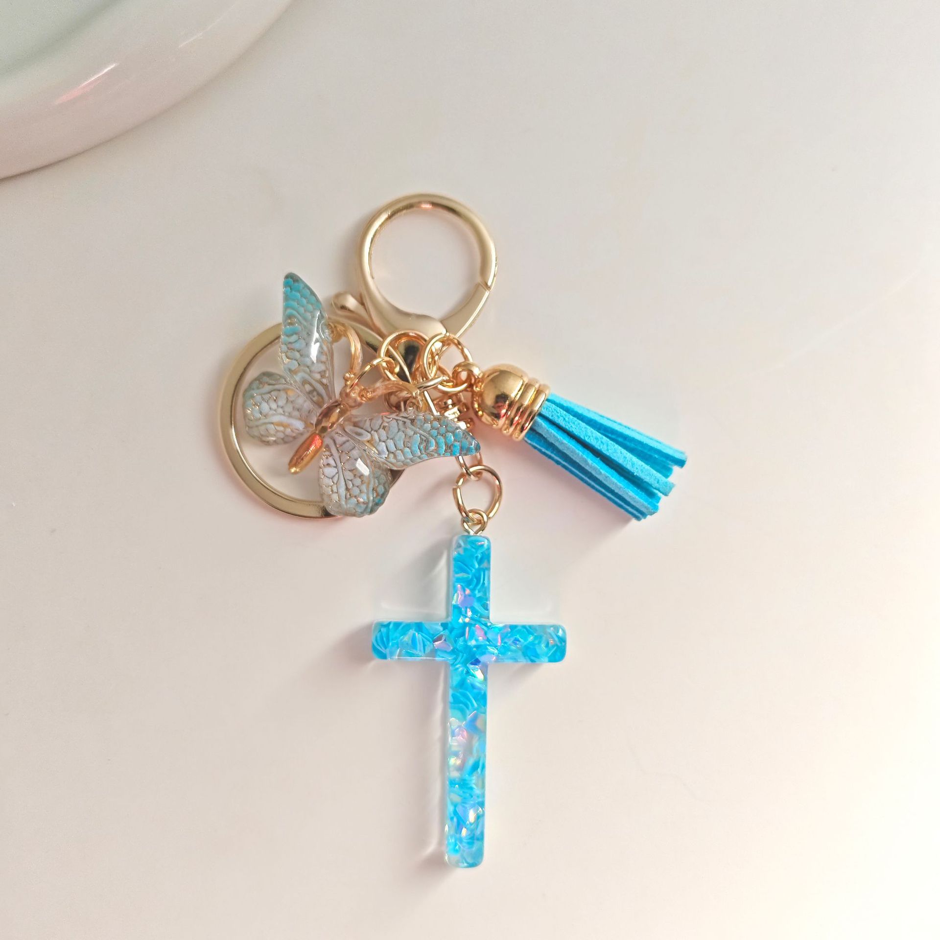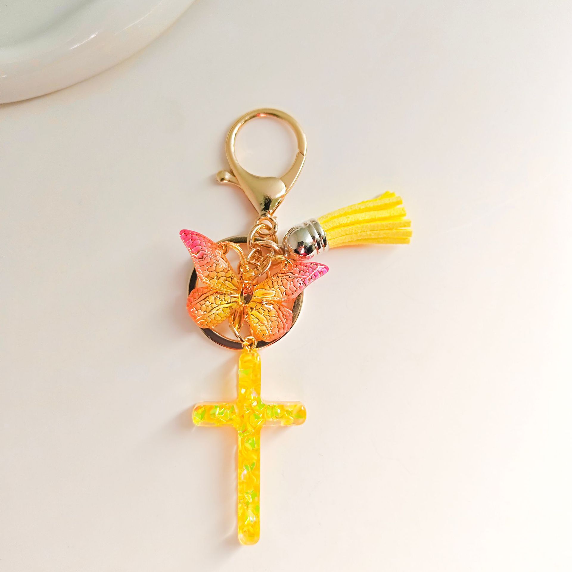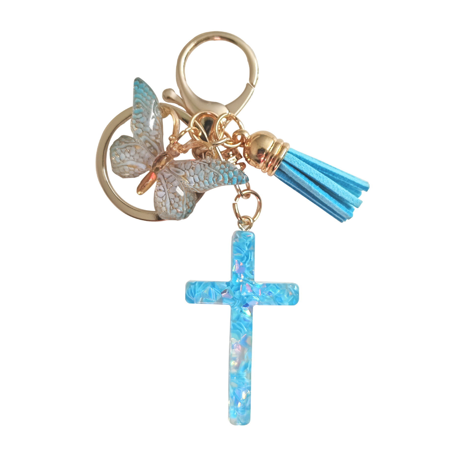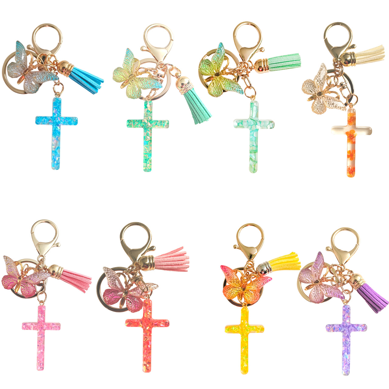 국경 간 아마존 키 체인 크로스 시퀀스 수지 나비 술 접착제 드롭 펜던트 액세서리 여성 키 체인스토어 가기