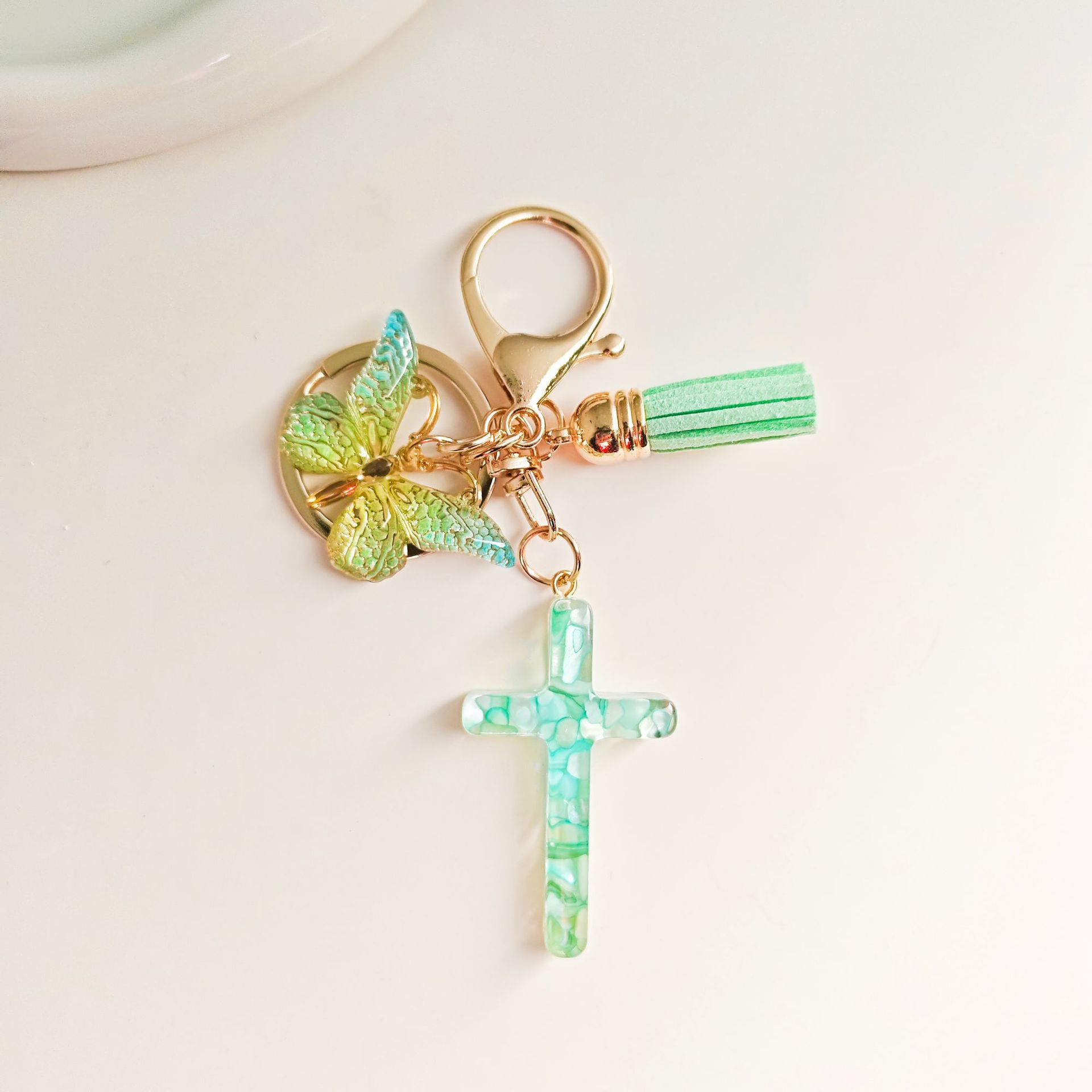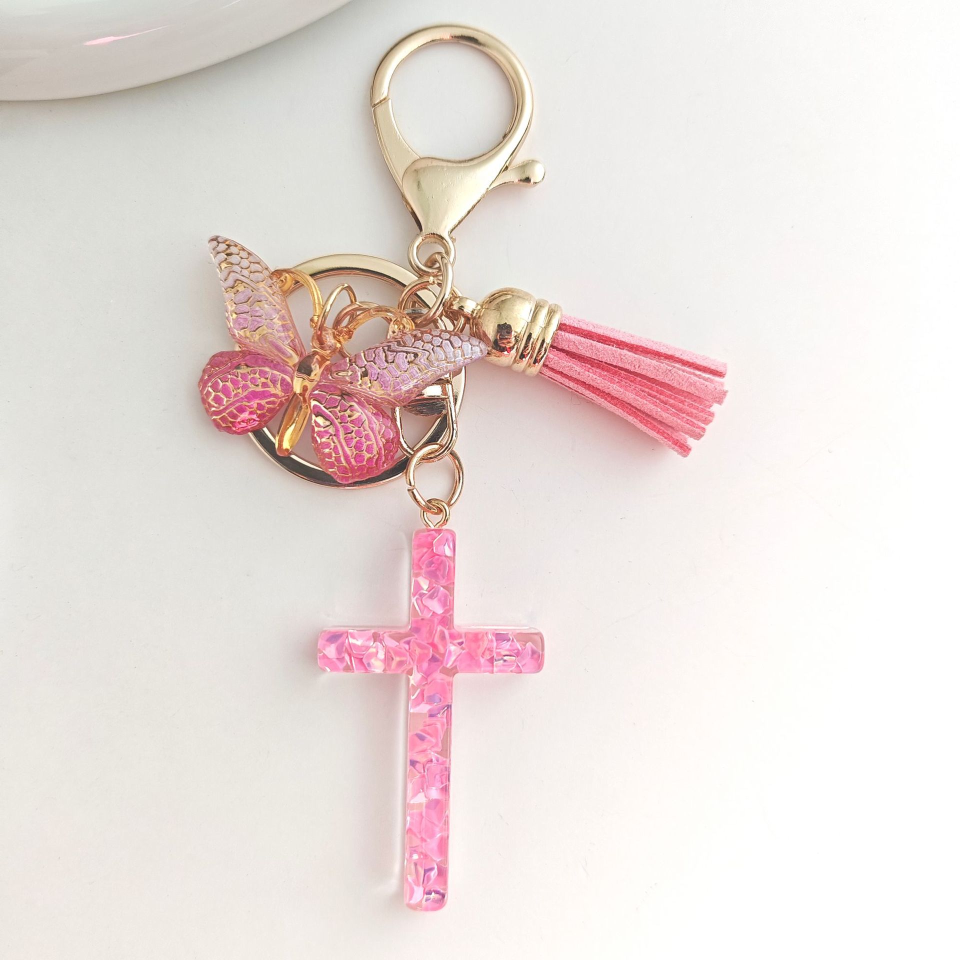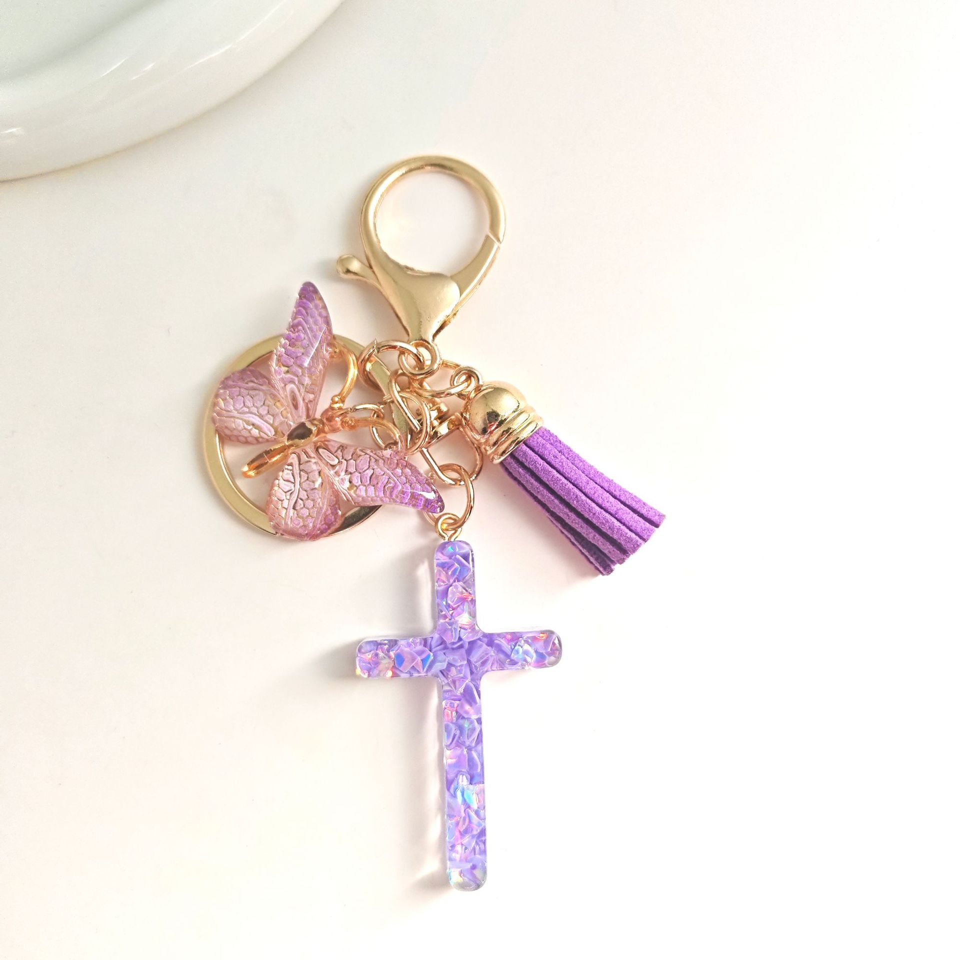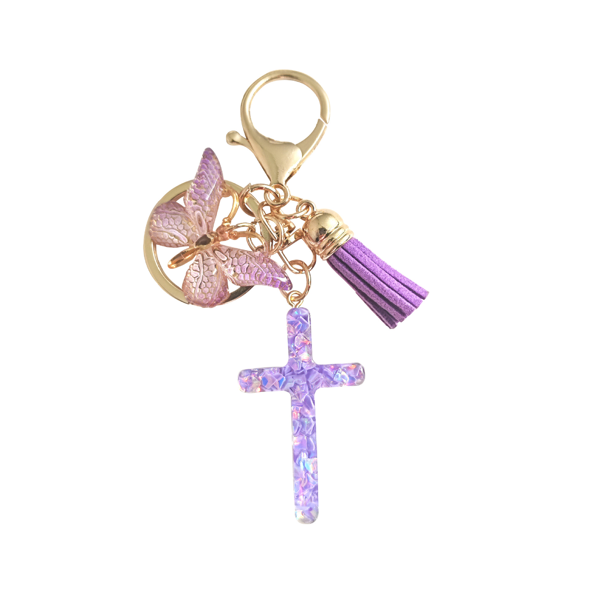 국경 간 아마존 키 체인 크로스 시퀀스 수지 나비 술 접착제 드롭 펜던트 액세서리 여성 키 체인스토어 가기