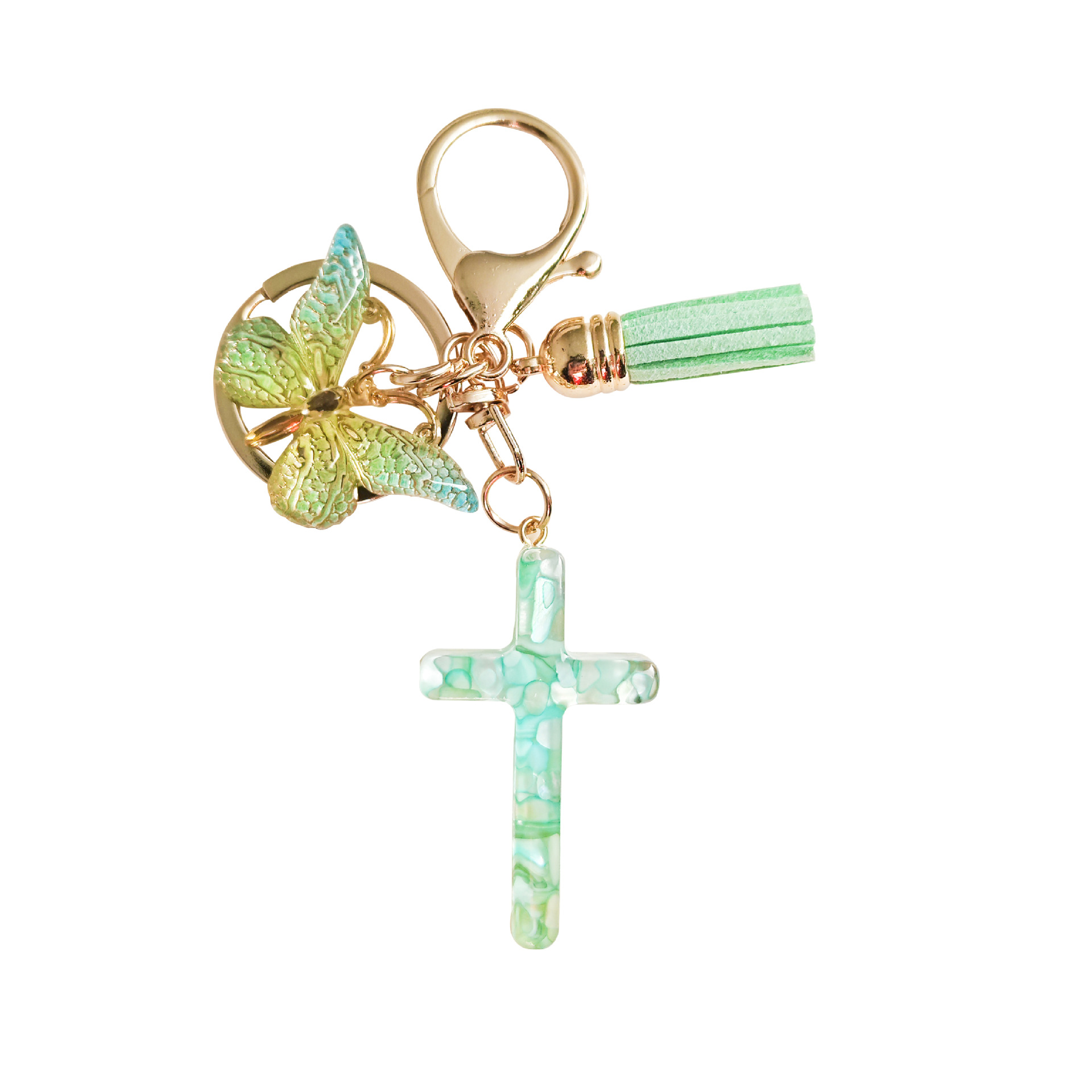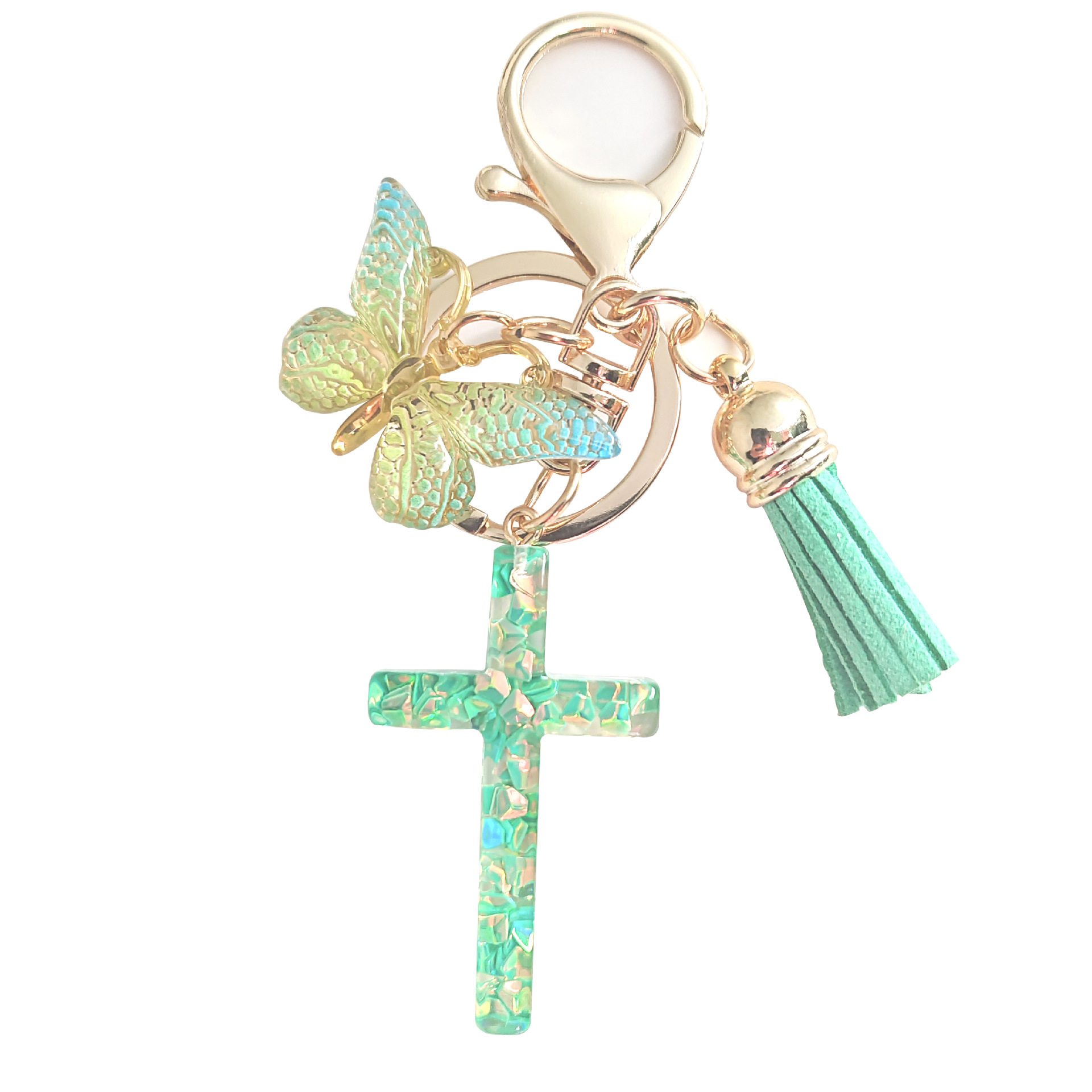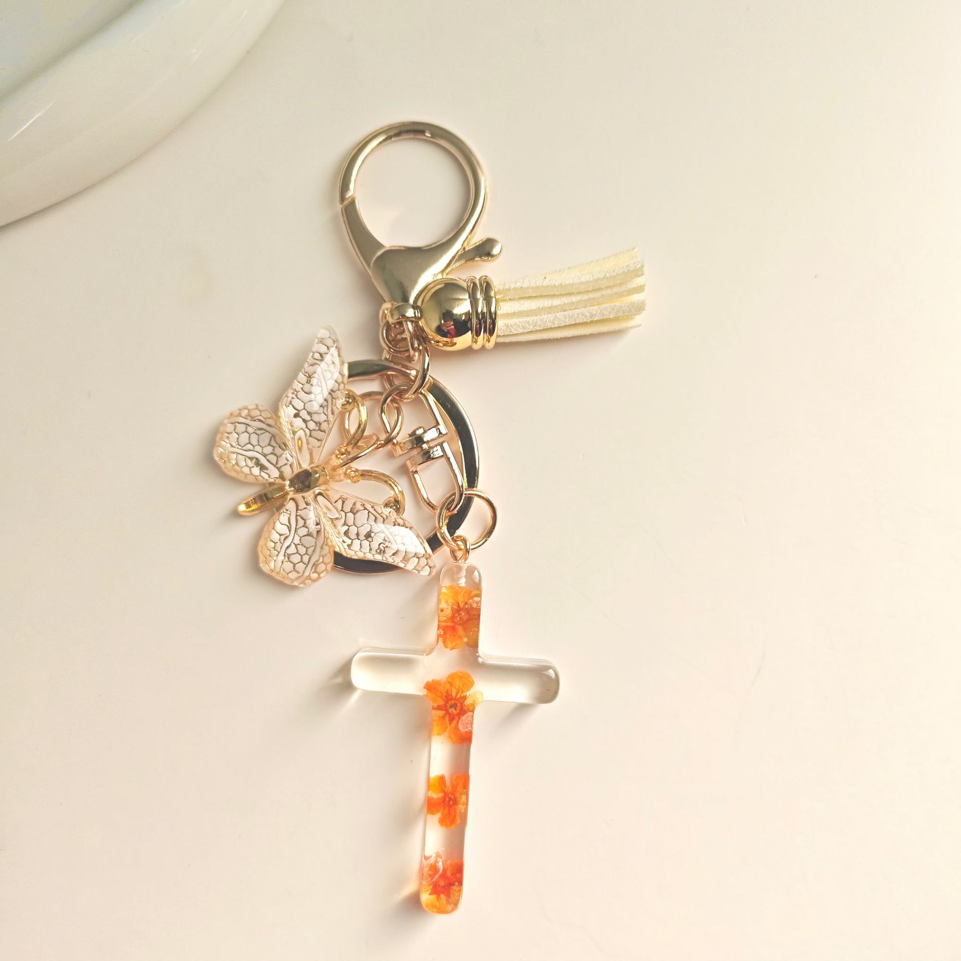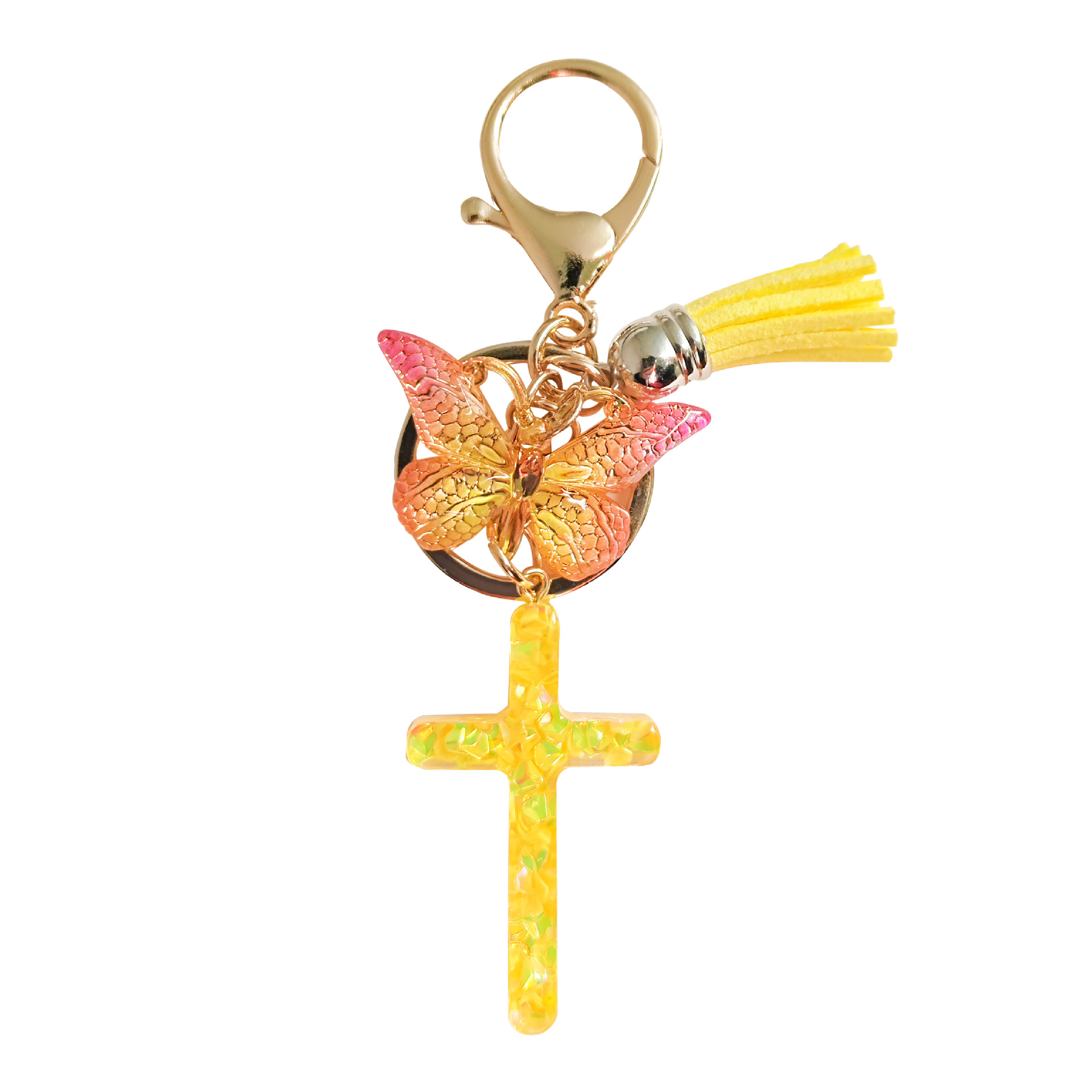 국경 간 아마존 키 체인 크로스 시퀀스 수지 나비 술 접착제 드롭 펜던트 액세서리 여성 키 체인스토어 가기