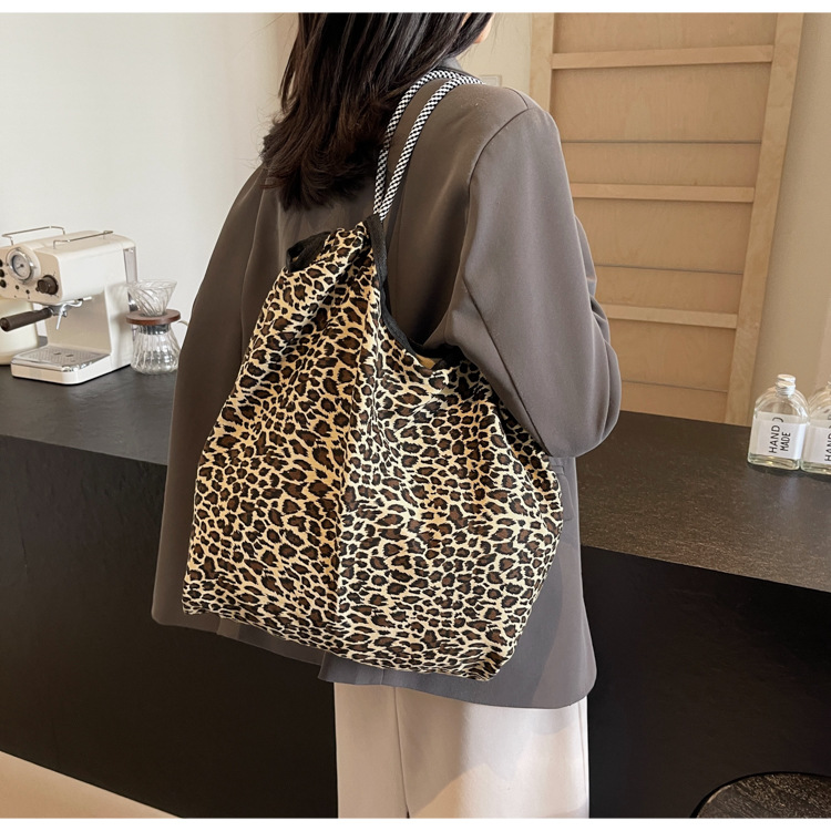 한국 아티스틱 올 매치 캐주얼 나일론 토트 백 여성 가방 게으른 스타일 레오파드 프린트 크로스 바디 숄더 백 여성 가방스토어 가기